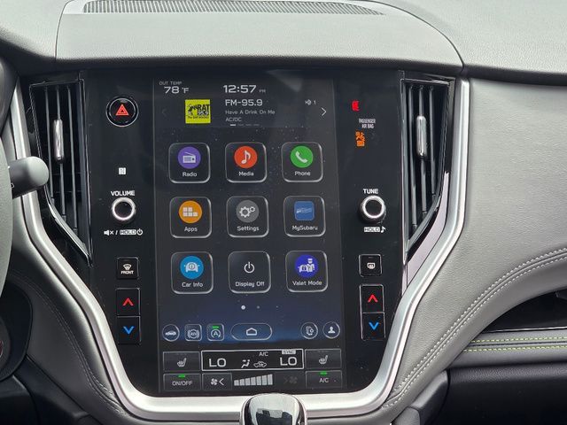 Stock Number: 4350Z, VIN Number: 4S4BTALC7S3318870, Style Name: AWD Onyx Edition 4Dr Crossover, Make: Subaru, Model: Outback, Model Year: 2025, Type: Wagon, Vehicle Trim: Onyx Edition, Interior Color: Gray With Green Stitching, Exterior Color: Crystal White Pearl, Body Type: Wagon, MPG Automatic City: 26, MPG Automatic Highway: 32, Engine Description: 2.5L 4-Cylinder DOHC 16V, Fuel Type: Gasoline, Fuel Induction: DI, Valves Per Cylinder: 4, Aspiration: Naturally Aspirated, 4WD Type: Full Time, Transmission: CVT Lineartronic, Wheels Rims: Aluminum Alloy, Wheels Spare Rim Type: Steel, Drive Train Type: AWD, Independent Suspension: Four-Wheel, Stabilizer Bar: Front And Rear, Clock, Compass, External Temp, Low Fuel Level, Tachometer, Front Wipers: Variable Intermittent, Privacy Glass, Rear Defogger, Rear Wiper: Intermittent, Auto-On In Reverse, With Washer, Sunroof: One-Touch Open/Close, Sliding Sunshade, Anti-Trapping, Power Glass, Tilt/Slide, Antenna Type: Diversity, Mast, Audio System: AM/FM, HD Radio, Voice Operated, Touch Screen Display, Premium Brand: Harman/Kardon, Speakers: 11, Drivers: Heated, Drivers Height: Power, Drivers Lumbar: Power, Drivers Power: 10, Passenger: Heated, Seating Capacity: 5, Front Seat Type: Bucket, Upholstery: Vinyl, Center Armrest, Folding: Split, One-Touch Fold Flat, Center Console: Front Console With Armrest And Storage, Illuminated, Cupholders: Front, Rear, Overhead Console: Front, Power Outlets: 12V Cargo Area, 12V Rear, 12V Front, USB Front, USB-C Front, USB Rear, USB-C Rear, Seatback Storage, Steering Adjustment: Tilt And Telescopic, Steering Power: Variable/Speed-Proportional, Steering Wheel Control: Audio, Cruise Control, Phone, Multi-Function, Paddle Shifter, Voice Control, Universal Remote Transmitter: Homelink - Garage Door Opener, Auto Dimming Mirrors, Power Mirrors, Power Door Locks: Anti-Lockout, Auto-Locking, Windows: Power Windows, Satellite Communication: Voice Guided Directions, Air Conditioning: Automatic Climate Control, Air Filtration, Trunk Lights, Center Console Trim: Leatherette, Dash Trim: Leatherette, Door Trim: Leatherette, Metallic, Mats: Rear, Front, Reading Lights: Front, Rear, Shift Knob: Leather, Steering Wheel Trim: Leather, Vanity Mirrors: Dual Illuminating, Bumpers: Body-Color, NHTSA Passenger Grade: Good, NHTSA Driver Grade: Excellent, NHTSA Side Impact Front Grade: Excellent, NHTSA Side Impact Back Grade: Excellent, NHTSA Roll Over Resistance Rating: Good, ABS: 4-Wheel, Anti Theft System: Alarm, Vehicle Immobilizer, Brake Assist, Safety Locks, Cornering Lights, Daytime Running Light: LED, Fog Lights: LED, Headlights Auto Delay, Front Headrests: 2, Adjustable, Rear Headrests: 3, Adjustable, Safety Signal Mirrors, Safety Stability Control, Driver and Passenger Airbag, Side Airbag, Stability Control, Front Head Room: 39.1 Inches, Front Hip Room: 55.5 Inches, Front Shoulder Room: 58.1 Inches, Front Leg Room: 42.8 Inches, Rear Head Room: 39.1 Inches, Rear Hip Room: 54.8 Inches, Rear Leg Room: 39.5 Inches, Rear Shoulder Room: 57.4 Inches, Luggage Capacity: 32.6 Cu.Ft., Maximum Seating: 5, Length: 191.1 Inches, Width: 82.0 Inches, Height: 66.4 Inches, Wheelbase: 108.1 Inches, Ground Clearance: 8.7 Inches, Curb Weight: 3743 Lbs.