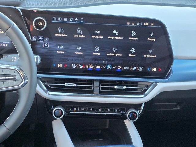 Stock Number: 26L0019, VIN Number: 3GN7DNRP9TS115765, Style Name: LT 2 4Dr SUV, Make: Chevrolet, Model: Equinox EV, Model Year: 2026, Type: SUV, Vehicle Trim: LT, Interior Color: Sky Gray, Exterior Color: Riptide Blue Metallic, Body Type: SUV, Engine Description: Electric Motor, Fuel Type: Electric, Transmission: 1-Speed Automatic, Wheels Rims: Aluminum Alloy, Drive Train Type: FWD, Independent Suspension: Four-Wheel, Stabilizer Bar: Front And Rear, Clock, Compass, External Temp, Front Wipers: Variable Intermittent, Privacy Glass, Rear Defogger, Rear Wiper: Intermittent, Auto-On In Reverse, With Washer, Antenna Type: Diversity, Mast, Audio System: AM/FM, Voice Operated, Touch Screen Display, Speakers: 6, Drivers: Heated, Drivers Height: Power, Drivers Lumbar: Power, Drivers Power: 8, Passenger: Heated, Seating Capacity: 5, Front Seat Type: Bucket, Upholstery: Leatherette, Center Armrest, Folding: Split, Center Console: Front Console With Armrest And Storage, Cupholders: Front, Rear, Overhead Console: Front, Power Outlets: 12V Cargo Area, 12V Front, USB-C Front, USB-C Rear, Seatback Storage, Steering Adjustment: Tilt And Telescopic, Steering Power, Steering Wheel Control: Audio, Cruise Control, Phone, Multi-Function, Voice Control, Auto Dimming Mirrors, Power Mirrors, Power Door Locks: Anti-Lockout, Auto-Locking, Windows: Power Windows, Navigation System: Touch Screen Display, Voice Operated, Satellite Communication: Onstar, Voice Guided Directions, Air Conditioning: Automatic Climate Control, Air Filtration, Trunk Lights, Mats: Rear, Front, Reading Lights: Front, Rear, Steering Wheel Trim: Leatherette, Vanity Mirrors: Dual Illuminating, Bumpers: Body-Color, ABS: 4-Wheel, Anti Theft System: Alarm, Vehicle Immobilizer, Brake Assist, Safety Locks, Daytime Running Light: LED, Headlights Auto Delay, Front Headrests: 2, Adjustable, Rear Headrests: 3, Adjustable, Safety Stability Control, Driver and Passenger Airbag, Side Airbag, Stability Control, Front Head Room: 39.2 Inches, Front Hip Room: 56.0 Inches, Front Shoulder Room: 58.6 Inches, Front Leg Room: 41.7 Inches, Rear Head Room: 38.5 Inches, Rear Hip Room: 50.7 Inches, Rear Leg Room: 38.0 Inches, Rear Shoulder Room: 55.5 Inches, Luggage Capacity: 26.4 Cu.Ft., Maximum Seating: 5, Length: 190.6 Inches, Width: 84.9 Inches, Height: 64.8 Inches, Wheelbase: 116.3 Inches, Ground Clearance: 6.4 Inches, Max Gross Vehicle Weight: 6060 Lbs., Curb Weight: 4950 Lbs.
