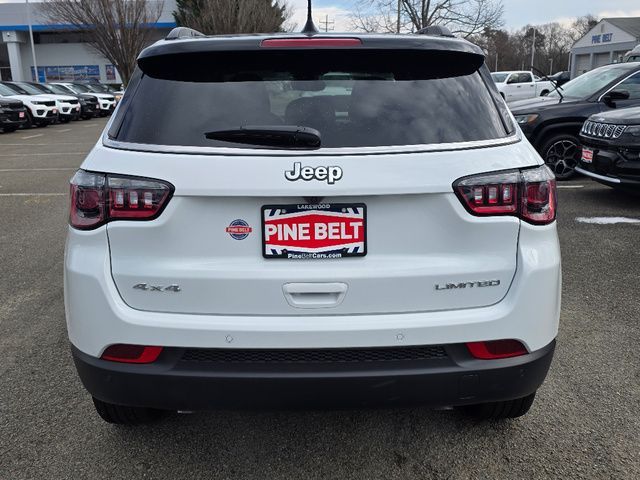 Stock Number: 26C0094, VIN Number: 3C4NJDCN6TT194462, Style Name: 4X4 Limited 4Dr SUV, Make: Jeep, Model: Compass, Model Year: 2026, Type: SUV, Vehicle Trim: Limited, Interior Color: Black, Exterior Color: Bright White Clear Coat, Body Type: SUV, MPG Automatic City: 23, MPG Automatic Highway: 31, Engine Description: 2.0L I4 DOHC, Fuel Type: Gasoline, Fuel Induction: DI, Valves Per Cylinder: 4, Aspiration: Turbocharged, 4WD Type: Part Time W/ On Demand Setting, Transmission: 8-Speed Automatic, Wheels Rims: Painted Aluminum Alloy, Drive Train Type: 4WD, Independent Suspension: Four-Wheel, Stabilizer Bar: Front And Rear, Clock, Compass, External Temp, Low Fuel Level, Tachometer, Front Wipers: Variable Intermittent, Rain Sensing, Privacy Glass, Rear Defogger, Rear Wiper: With Washer, Antenna Type: Diversity, Mast, Audio System: AM/FM, Voice Operated, Touch Screen Display, Speakers: 6, Drivers: Heated, Drivers Height: Power, Drivers Lumbar: Power, Drivers Power: 8, Passenger: Heated, Passenger Height: Manual, Seating Capacity: 5, Front Seat Type: Bucket, Upholstery: Leatherette, Center Armrest, Folding: Split, Center Console: Front Console With Armrest And Storage, Cupholders: Front, Rear, Overhead Console: Front, Power Outlets: 12V Front, USB Front, USB-C Front, USB Rear, Seatback Storage, Steering Adjustment: Tilt And Telescopic, Steering Power: Variable/Speed-Proportional, Steering Wheel Control: Audio, Cruise Control, Phone, Multi-Function, Voice Control, Auto Dimming Mirrors, Power Mirrors, Power Door Locks: Anti-Lockout, Auto-Locking, Windows: Power Windows, Air Conditioning: Automatic Climate Control, Air Filtration, Trunk Lights, Mats: Rear, Front, Reading Lights: Front, Shift Knob: Leather, Steering Wheel Trim: Leatherette, Vanity Mirrors: Dual Illuminating, Bumpers: Body-Color, NHTSA Passenger Grade: Good, NHTSA Driver Grade: Good, NHTSA Side Impact Front Grade: Excellent, NHTSA Side Impact Back Grade: Excellent, NHTSA Roll Over Resistance Rating: Average, ABS: 4-Wheel, Anti Theft System: Alarm, Vehicle Immobilizer, Brake Assist, Safety Locks, Daytime Running Light: LED, Fog Lights: Cornering, Headlights Auto Delay, Front Headrests: 2, Adjustable, Rear Headrests: 3, Adjustable, Safety Signal Mirrors, Safety Stability Control, Driver and Passenger Airbag, Side Airbag, Stability Control, Front Head Room: 39.2 Inches, Front Hip Room: 54.1 Inches, Front Shoulder Room: 56.7 Inches, Front Leg Room: 41.2 Inches, Rear Head Room: 38.5 Inches, Rear Hip Room: 49.2 Inches, Rear Leg Room: 38.3 Inches, Rear Shoulder Room: 55.1 Inches, Luggage Capacity: 27.2 Cu.Ft., Maximum Seating: 5, Length: 173.4 Inches, Width: 80.0 Inches, Height: 64.8 Inches, Wheelbase: 103.8 Inches, Ground Clearance: 8.1 Inches, Max Gross Vehicle Weight: 4800 Lbs., Curb Weight: 3620 Lbs.