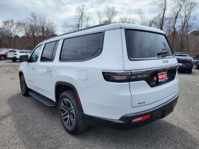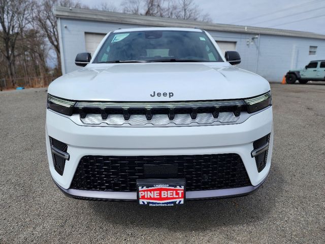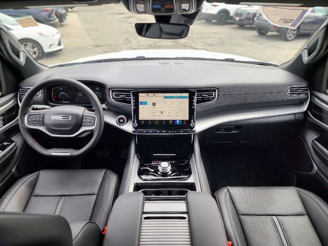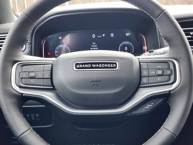 Stock Number: 26C0232, VIN Number: 1C4SJSAP9TS156267, Style Name: 4X4 4Dr SUV, Make: Jeep, Model: Grand Wagoneer L, Model Year: 2026, Type: SUV, Interior Color: Global Black, Exterior Color: White/Off-White, Body Type: SUV, Engine Description: 3.0L I6, Fuel Type: Gasoline, Fuel Induction: DI, Valves Per Cylinder: 4, Aspiration: Twin-Turbocharged, 4WD Type: Full Time, Transmission: 8-Speed Automatic, Wheels Rims: Painted Aluminum Alloy, Wheels Spare Rim Type: Aluminum Alloy, Drive Train Type: 4WD, Independent Suspension: Four-Wheel, Leveling Suspension, Stabilizer Bar: Front And Rear, Clock, Compass, External Temp, Low Fuel Level, Tachometer, Front Wipers: Speed Sensitive, Variable Intermittent, Rain Sensing, Privacy Glass, Rear Defogger, Rear Wiper: Intermittent, With Washer, Antenna Type: Diversity, Mast, Audio System: AM/FM, HD Radio, Voice Operated, Touch Screen Display, Premium Brand: Alpine, Speakers: 8, Drivers: Heated, Drivers Height: Power, Drivers Lumbar: 4-Way Power Lumbar, Drivers Power: 8, Drivers Ventilated, Passenger: Heated, Passenger Height: Power, Passenger Lumbar: 4-Way Power Lumbar, Passenger Power: 8, Passenger Ventilated, Seating Capacity: 7, Front Seat Type: Bucket, Upholstery: Leather-Trimmed, Folding: Flat, Folding Thirdrow Seat: Split, Flat, Thirdrow Seat Type: 40-60 Split Bench, Cargo Nets, Center Console: Front Console With Armrest And Storage, Cupholders: Front, Third Row, Rear, Overhead Console: Front, Power Outlets: 12V Cargo Area, 12V Rear, 115V Rear, 12V Front, USB Front, USB-C Front, USB Rear, USB-C Rear, USB Third Row, USB-C Third Row, Seatback Storage, Steering Adjustment: Power Tilt And Telescopic, Steering Power: Variable/Speed-Proportional, Steering Wheel Control: Audio, Cruise Control, Phone, Multi-Function, Voice Control, Universal Remote Transmitter: Homelink - Garage Door Opener, Auto Dimming Mirrors, Power Mirrors, Reverse Tilt Mirror, Power Door Locks: Auto-Locking, Windows: Power Windows, Navigation System: Hard Drive, Touch Screen Display, Voice Operated, Memory Features Number of Drivers: 2 Driver, Memory Features Steering Wheel, Air Conditioning: Automatic Climate Control, Air Filtration, Trunk Lights, Mats: Third Row, Rear, Front, Reading Lights: Front, Rear, Steering Wheel Trim: Leatherette, Vanity Mirrors: Dual Illuminating, Bumpers: Body-Color, NHTSA Passenger Grade: Good, NHTSA Driver Grade: Excellent, NHTSA Side Impact Front Grade: Excellent, NHTSA Side Impact Back Grade: Excellent, NHTSA Roll Over Resistance Rating: Average, ABS: 4-Wheel, Anti Theft System: Alarm, Vehicle Immobilizer, Brake Assist, Safety Locks, Daytime Running Light: LED, Headlights Auto Delay, Front Headrests: 2, Adjustable, Rear Headrests: 2, Adjustable, Third Row Headrests: 3, Adjustable, Foldable, Safety Signal Mirrors, Safety Stability Control, Driver and Passenger Airbag, Side Airbag, Stability Control, Trailer Hitch: Class IV, Front Head Room: 41.3 Inches, Front Hip Room: 63.5 Inches, Front Shoulder Room: 66.1 Inches, Front Leg Room: 40.9 Inches, Rear Head Room: 40.0 Inches, Rear Hip Room: 63.0 Inches, Rear Leg Room: 42.7 Inches, Rear Shoulder Room: 65.2 Inches, Luggage Capacity: 42.6 Cu.Ft., Maximum Seating: 8, Length: 228.1 Inches, Width: 94.0 Inches, Height: 79.8 Inches, Wheelbase: 130.0 Inches, Ground Clearance: 8.4 Inches, Max Gross Vehicle Weight: 7600 Lbs., Curb Weight: 6185 Lbs.