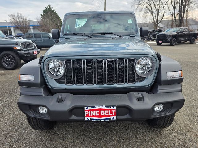 Stock Number: 26C0070, VIN Number: 1C4PJXDN8TW206212, Style Name: 4X4 Sport 4Dr SUV, Make: Jeep, Model: Wrangler, Model Year: 2026, Type: SUV, Vehicle Trim: Sport S, Interior Color: Black, Exterior Color: Gray, Body Type: SUV, MPG Automatic City: 20, MPG Automatic Highway: 22, Engine Description: 2.0L I4 DOHC, Fuel Type: Gasoline, Fuel Induction: DI, Valves Per Cylinder: 4, Aspiration: Turbocharged, 4WD Type: Part Time, Transmission: 8-Speed Automatic, Wheels Rims: Painted Steel, Wheels Spare Rim Type: Steel, Drive Train Type: 4WD, Stabilizer Bar: Front And Rear, Clock, Compass, External Temp, Low Fuel Level, Tachometer, Front Wipers: Variable Intermittent, Removable Roof: Soft Top, Antenna Type: Diversity, Element, Audio System: AM/FM, Voice Operated, Touch Screen Display, Speakers: 8, Drivers Height: Manual, Drivers Lumbar: Manual, Seating Capacity: 5, Front Seat Type: Bucket, Upholstery: Cloth, Folding: Split, Center Console: Front Console With Armrest And Storage, Locking, Cruise Control, Cupholders: Front, Illuminated, Power Outlets: 12V Cargo Area, 12V Front, USB Front, USB-C Front, USB Rear, USB-C Rear, Seatback Storage, Steering Adjustment: Tilt And Telescopic, Steering Power: Variable/Speed-Proportional, Steering Wheel Control: Audio, Cruise Control, Phone, Multi-Function, Voice Control, Power Door Locks: Anti-Lockout, Auto-Locking, Windows: Power Windows, Air Conditioning, Mats: Rear, Front, Reading Lights: Front, Rear, Shift Knob: Urethane, Steering Wheel Trim: Urethane, Vanity Mirrors: Dual, Bumpers: Black, NHTSA Passenger Grade: Good, NHTSA Driver Grade: Good, NHTSA Roll Over Resistance Rating: Average, ABS: 4-Wheel, Anti Theft System: Vehicle Immobilizer, Brake Assist, Safety Locks, Fog Lights, Headlights Auto Delay, Front Headrests: 2, Adjustable, Rear Headrests: 3, Foldable, Safety Stability Control, Driver and Passenger Airbag, Side Airbag, Stability Control, Front Head Room: 42.6 Inches, Front Hip Room: 53.9 Inches, Front Shoulder Room: 55.8 Inches, Front Leg Room: 41.2 Inches, Rear Head Room: 41.7 Inches, Rear Hip Room: 56.7 Inches, Rear Leg Room: 38.3 Inches, Rear Shoulder Room: 55.8 Inches, Luggage Capacity: 31.7 Cu.Ft., Maximum Seating: 5, Length: 188.4 Inches, Width: 73.9 Inches, Height: 73.6 Inches, Wheelbase: 118.4 Inches, Ground Clearance: 9.7 Inches, Max Gross Vehicle Weight: 5500 Lbs., Curb Weight: 4285 Lbs.