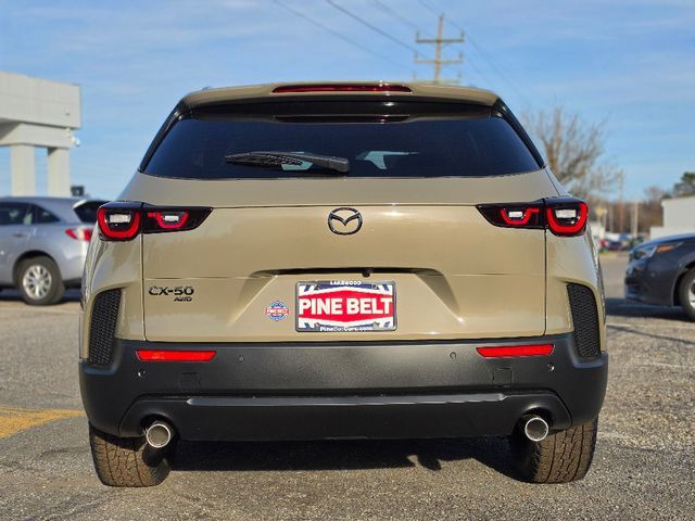 Stock Number: 26M0181, VIN Number: 7MMVABXL4TN485233, Style Name: AWD 2.5 S Meridian Edition 4Dr SUV, Make: Mazda, Model: CX-50, Model Year: 2026, Type: SUV, Vehicle Trim: 2.5 S Meridian Edition, Interior Color: Black, Exterior Color: Zircon Sand Metallic, Body Type: SUV, MPG Automatic City: 24, MPG Automatic Highway: 30, Engine Description: SKYACTIV?-G 2.5L 4-Cylinder DOHC 16V, Fuel Type: Gasoline, Fuel Induction: DI, Valves Per Cylinder: 4, Aspiration: Naturally Aspirated, 4WD Type: On Demand, Transmission: 6-Speed Automatic, Wheels Rims: Painted Aluminum Alloy, Wheels Spare Rim Type: Steel, Drive Train Type: AWD, Independent Suspension: Four-Wheel, Stabilizer Bar: Front, Clock, Compass, External Temp, Low Fuel Level, Tachometer, Front Wipers: Speed Sensitive, Variable Intermittent, Rain Sensing, Privacy Glass, Rear Defogger, Rear Wiper: Intermittent, With Washer, Sunroof: One-Touch Open/Close, Anti-Trapping, Tilt/Slide, Power Panoramic, Power Sunshade, Antenna Type: Element, Audio System: AM/FM, HD Radio, Voice Operated, Touch Screen Display, Speakers: 8, Drivers: Heated, Drivers Height: Power, Drivers Lumbar: Power, Drivers Power: 8, Passenger: Heated, Seating Capacity: 5, Front Seat Type: Bucket, Upholstery: Leatherette, Center Armrest, Folding: Split, One-Touch Fold Flat, Center Console: Front Console With Armrest And Storage, Cupholders: Front, Rear, Overhead Console: Front, Power Outlets: 12V Cargo Area, 12V Front, USB-C Front, USB-C Rear, Seatback Storage, Steering Adjustment: Tilt And Telescopic, Steering Power: Variable/Speed-Proportional, Steering Wheel Control: Audio, Cruise Control, Phone, Multi-Function, Voice Control, Power Mirrors, Power Door Locks: Anti-Lockout, Auto-Locking, Windows: Power Windows, Air Conditioning: Automatic Climate Control, Sun Sensor Climate Control, Air Filtration, Trunk Lights, Dash Trim: Leatherette, Door Trim: Leatherette, Mats: Rear, Front, Reading Lights: Front, Rear, Shift Knob: Leather, Steering Wheel Trim: Leather, Vanity Mirrors: Dual Illuminating, Bumpers: Black, NHTSA Passenger Grade: Excellent, NHTSA Driver Grade: Excellent, NHTSA Side Impact Front Grade: Excellent, NHTSA Side Impact Back Grade: Excellent, NHTSA Roll Over Resistance Rating: Good, ABS: 4-Wheel, Anti Theft System: Alarm, Vehicle Immobilizer, Brake Assist, Safety Locks, Daytime Running Light: LED, Headlights Auto Delay, Front Headrests: 2, Adjustable, Rear Headrests: 3, Adjustable, Safety Signal Mirrors, Safety Stability Control, Driver and Passenger Airbag, Side Airbag, Stability Control, Front Head Room: 38.6 Inches, Front Hip Room: 53.6 Inches, Front Shoulder Room: 55.9 Inches, Front Leg Room: 41.7 Inches, Rear Head Room: 37.5 Inches, Rear Hip Room: 52.1 Inches, Rear Leg Room: 39.8 Inches, Rear Shoulder Room: 53.6 Inches, Luggage Capacity: 31.4 Cu.Ft., Maximum Seating: 5, Length: 185.8 Inches, Width: 80.8 Inches, Height: 63.9 Inches, Wheelbase: 110.8 Inches, Ground Clearance: 8.5 Inches, Max Gross Vehicle Weight: 4861 Lbs., Curb Weight: 3741 Lbs.