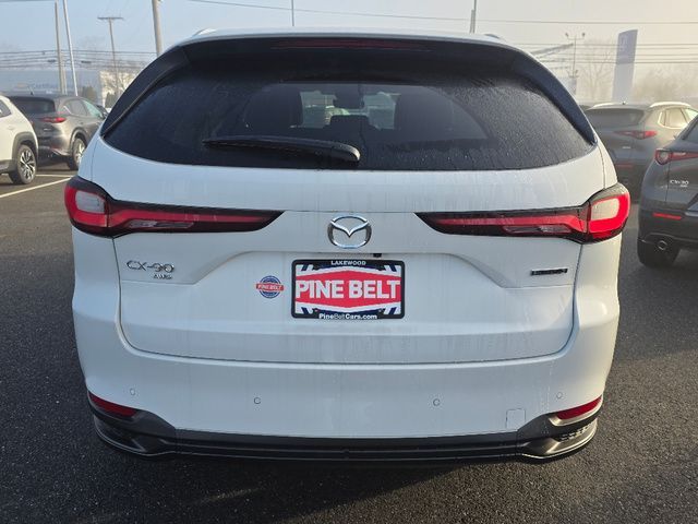 Stock Number: 378A, VIN Number: JM3KKBHD7T1358708, Style Name: AWD 3.3 Turbo Preferred 4Dr SUV, Make: Mazda, Model: CX-90, Model Year: 2026, Type: SUV, Vehicle Trim: 3.3 Turbo Preferred, Interior Color: Black, Exterior Color: Rhodium White Premium, Body Type: SUV, MPG Automatic City: 23, MPG Automatic Highway: 28, Engine Description: I6 Turbo, Fuel Type: Other, Fuel Induction: DI, Valves Per Cylinder: 4, Aspiration: Turbocharged, 4WD Type: On Demand, Transmission: 8-Speed Automatic, Wheels Rims: Painted Aluminum Alloy, Wheels Spare Rim Type: Steel, Drive Train Type: AWD, Independent Suspension: Four-Wheel, Stabilizer Bar: Front And Rear, Clock, Compass, External Temp, Low Fuel Level, Tachometer, Front Wipers: Speed Sensitive, Variable Intermittent, Rain Sensing, Privacy Glass, Rear Defogger, Rear Wiper: Intermittent, With Washer, Side Window Sunshade, Sunroof: One-Touch Open/Close, Sliding Sunshade, Anti-Trapping, Power Glass, Tilt/Slide, Antenna Type: Element, Audio System: AM/FM, HD Radio, Voice Operated, Touch Screen Display, Speakers: 8, Drivers: Heated, Drivers Height: Power, Drivers Lumbar: Power, Drivers Power: 8, Passenger: Heated, Passenger Power: 4, Seating Capacity: 8, Front Seat Type: Bucket, Upholstery: Leather, Center Armrest, Folding: Split, Flat, Folding Thirdrow Seat: Split, Flat, Thirdrow Seat Type: 40-60 Split Bench, Center Console: Front Console With Armrest And Storage, Cupholders: Front, Third Row, Rear, Overhead Console: Front, Power Outlets: 12V Cargo Area, 12V Front, USB-C Front, USB-C Rear, USB-C Third Row, Seatback Storage, Steering Adjustment: Tilt And Telescopic, Steering Power: Variable/Speed-Proportional, Steering Wheel Control: Audio, Cruise Control, Phone, Multi-Function, Paddle Shifter, Voice Control, Power Mirrors, Power Door Locks: Anti-Lockout, Auto-Locking, Windows: Power Windows, Air Conditioning: Automatic Climate Control, Sun Sensor Climate Control, Air Filtration, Trunk Lights, Mats: Third Row, Rear, Front, Reading Lights: Front, Rear, Shift Knob: Leather, Steering Wheel Trim: Leather, Vanity Mirrors: Dual Illuminating, Bumpers: Body-Color, NHTSA Passenger Grade: Good, NHTSA Driver Grade: Good, NHTSA Side Impact Front Grade: Excellent, NHTSA Side Impact Back Grade: Excellent, NHTSA Roll Over Resistance Rating: Good, ABS: 4-Wheel, Anti Theft System: Vehicle Immobilizer, Brake Assist, Safety Locks, Daytime Running Light: LED, Headlights Auto Delay, Front Headrests: 2, Adjustable, Rear Headrests: 3, Adjustable, Third Row Headrests: 3, Adjustable, Safety Signal Mirrors, Safety Stability Control, Driver and Passenger Airbag, Side Airbag, Stability Control, Front Head Room: 39.2 Inches, Front Hip Room: 56.2 Inches, Front Shoulder Room: 59.2 Inches, Front Leg Room: 41.7 Inches, Rear Head Room: 38.6 Inches, Rear Hip Room: 55.5 Inches, Rear Leg Room: 39.4 Inches, Rear Shoulder Room: 58.1 Inches, Luggage Capacity: 14.9 Cu.Ft., Maximum Seating: 8, Length: 201.6 Inches, Width: 84.9 Inches, Height: 68.2 Inches, Wheelbase: 122.8 Inches, Ground Clearance: 8.0 Inches, Max Gross Vehicle Weight: 6854 Lbs., Curb Weight: 4735 Lbs.