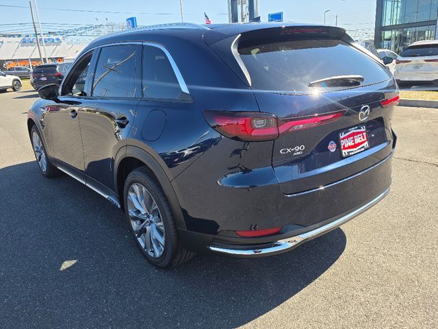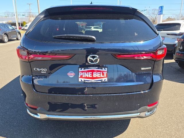 Stock Number: 26M0099, VIN Number: JM3KKEHD7T1376448, Style Name: AWD 3.3 Turbo Premium Plus 4Dr SUV, Make: Mazda, Model: CX-90, Model Year: 2026, Type: SUV, Vehicle Trim: 3.3 Turbo Premium Plus, Interior Color: Black, Exterior Color: Blue, Body Type: SUV, MPG Automatic City: 23, MPG Automatic Highway: 28, Engine Description: I6, Fuel Type: Other, Fuel Induction: DI, Valves Per Cylinder: 4, Aspiration: Turbocharged, 4WD Type: On Demand, Transmission: 8-Speed Automatic, Wheels Rims: Painted Aluminum Alloy, Wheels Spare Rim Type: Steel, Drive Train Type: AWD, Independent Suspension: Four-Wheel, Stabilizer Bar: Front And Rear, Clock, Compass, External Temp, Heads up Display, Low Fuel Level, Tachometer, Front Wipers: Speed Sensitive, Variable Intermittent, Rain Sensing, Privacy Glass, Rear Defogger, Rear Wiper: Intermittent, With Washer, Side Window Sunshade, Sunroof: One-Touch Open/Close, Anti-Trapping, Tilt/Slide, Power Panoramic, Power Sunshade, Antenna Type: Diversity, Mast, Audio System: AM/FM, HD Radio, Voice Operated, Touch Screen Display, Premium Brand: Bose, Speakers: 11, Drivers: Heated, Drivers Height: Power, Drivers Lumbar: Power, Drivers Power: 8, Drivers Ventilated, Passenger: Heated, Passenger Height: Power, Passenger Power: 8, Passenger Ventilated, Seating Capacity: 8, Front Seat Type: Bucket, Upholstery: Premium Leather, Center Armrest, Folding: Split, Flat, Heated, Folding Thirdrow Seat: Split, Flat, Thirdrow Seat Type: 40-60 Split Bench, Center Console: Front Console With Armrest And Storage, Cupholders: Front, Third Row, Illuminated, Rear, Overhead Console: Front, Power Outlets: 12V Cargo Area, 115V Cargo Area, 12V Front, USB-C Front, USB-C Rear, USB-C Third Row, Seatback Storage, Steering Adjustment: Tilt And Telescopic, Steering Power: Variable/Speed-Proportional, Steering Wheel Control: Audio, Cruise Control, Phone, Multi-Function, Paddle Shifter, Voice Control, Universal Remote Transmitter: Homelink - Garage Door Opener, Auto Dimming Mirrors, Power Mirrors, Power Retractable Mirrors, Power Door Locks: Anti-Lockout, Auto-Locking, Windows: Power Windows, Navigation System: Touch Screen Display, Voice Operated, Memory Card, Memory Features Number of Drivers: 2 Driver, Air Conditioning: Automatic Climate Control, Sun Sensor Climate Control, Air Filtration, Trunk Lights, Mats: Third Row, Rear, Front, Reading Lights: Front, Rear, Shift Knob: Leather, Steering Wheel Trim: Leather, Vanity Mirrors: Dual Illuminating, Bumpers: Body-Color, Chrome Accents, NHTSA Passenger Grade: Good, NHTSA Driver Grade: Good, NHTSA Side Impact Front Grade: Excellent, NHTSA Side Impact Back Grade: Excellent, NHTSA Roll Over Resistance Rating: Good, ABS: 4-Wheel, Anti Theft System: Alarm, Vehicle Immobilizer, Brake Assist, Safety Locks, Cornering Lights, Daytime Running Light: LED, Headlights Auto Delay, Front Headrests: 2, Adjustable, Rear Headrests: 3, Adjustable, Third Row Headrests: 3, Adjustable, Safety Signal Mirrors, Safety Stability Control, Driver and Passenger Airbag, Side Airbag, Stability Control, Front Head Room: 39.6 Inches, Front Hip Room: 56.2 Inches, Front Shoulder Room: 59.2 Inches, Front Leg Room: 41.7 Inches, Rear Head Room: 38.4 Inches, Rear Hip Room: 55.5 Inches, Rear Leg Room: 39.4 Inches, Rear Shoulder Room: 58.1 Inches, Luggage Capacity: 14.9 Cu.Ft., Maximum Seating: 8, Length: 200.8 Inches, Width: 84.9 Inches, Height: 68.7 Inches, Wheelbase: 122.8 Inches, Ground Clearance: 8.1 Inches, Max Gross Vehicle Weight: 6854 Lbs.