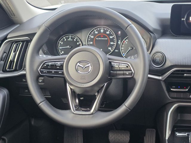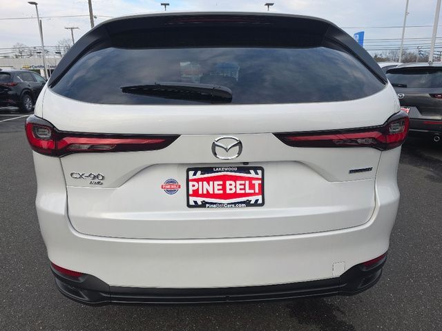 Stock Number: 26M0043, VIN Number: JM3KKAHD2T1361803, Style Name: AWD 3.3 Turbo Select 4Dr SUV, Make: Mazda, Model: CX-90, Model Year: 2026, Type: SUV, Vehicle Trim: 3.3 Turbo Select, Interior Color: Black, Exterior Color: Rhodium White Premium, Body Type: SUV, MPG Automatic City: 23, MPG Automatic Highway: 28, Engine Description: I6 Turbo, Fuel Type: Other, Fuel Induction: DI, Valves Per Cylinder: 4, Aspiration: Turbocharged, 4WD Type: On Demand, Transmission: 8-Speed Automatic, Wheels Rims: Painted Aluminum Alloy, Wheels Spare Rim Type: Steel, Drive Train Type: AWD, Independent Suspension: Four-Wheel, Stabilizer Bar: Front And Rear, Clock, Compass, External Temp, Low Fuel Level, Tachometer, Front Wipers: Speed Sensitive, Variable Intermittent, Rain Sensing, Privacy Glass, Rear Defogger, Rear Wiper: Intermittent, With Washer, Antenna Type: Element, Audio System: AM/FM, HD Radio, Voice Operated, Speakers: 8, Drivers Height: Power, Drivers Lumbar: Power, Drivers Power: 8, Seating Capacity: 8, Front Seat Type: Bucket, Upholstery: Leatherette, Center Armrest, Folding: Split, Flat, Folding Thirdrow Seat: Split, Flat, Thirdrow Seat Type: 40-60 Split Bench, Center Console: Front Console With Armrest And Storage, Cupholders: Front, Third Row, Rear, Overhead Console: Front, Power Outlets: 12V Cargo Area, 12V Front, USB-C Front, USB-C Rear, Seatback Storage, Steering Adjustment: Tilt And Telescopic, Steering Power: Variable/Speed-Proportional, Steering Wheel Control: Audio, Cruise Control, Phone, Multi-Function, Paddle Shifter, Voice Control, Power Mirrors, Power Door Locks: Anti-Lockout, Auto-Locking, Windows: Power Windows, Air Conditioning: Automatic Climate Control, Sun Sensor Climate Control, Air Filtration, Trunk Lights, Mats: Third Row, Rear, Front, Reading Lights: Front, Rear, Shift Knob: Leather, Steering Wheel Trim: Leather, Vanity Mirrors: Dual Illuminating, Bumpers: Body-Color, NHTSA Passenger Grade: Good, NHTSA Driver Grade: Good, NHTSA Side Impact Front Grade: Excellent, NHTSA Side Impact Back Grade: Excellent, NHTSA Roll Over Resistance Rating: Good, ABS: 4-Wheel, Anti Theft System: Alarm, Vehicle Immobilizer, Brake Assist, Safety Locks, Daytime Running Light: LED, Headlights Auto Delay, Front Headrests: 2, Adjustable, Rear Headrests: 3, Adjustable, Third Row Headrests: 3, Adjustable, Safety Signal Mirrors, Safety Stability Control, Driver and Passenger Airbag, Side Airbag, Stability Control, Front Head Room: 39.7 Inches, Front Hip Room: 56.2 Inches, Front Shoulder Room: 59.2 Inches, Front Leg Room: 41.7 Inches, Rear Head Room: 39.3 Inches, Rear Hip Room: 55.5 Inches, Rear Leg Room: 39.4 Inches, Rear Shoulder Room: 58.1 Inches, Luggage Capacity: 14.9 Cu.Ft., Maximum Seating: 8, Length: 201.6 Inches, Width: 84.9 Inches, Height: 68.3 Inches, Wheelbase: 122.8 Inches, Ground Clearance: 8.0 Inches, Max Gross Vehicle Weight: 6854 Lbs.