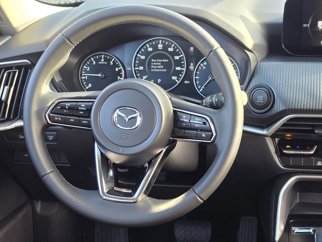Stock Number: 26M0081, VIN Number: JM3KKAHDXT1368868, Style Name: AWD 3.3 Turbo Select 4Dr SUV, Make: Mazda, Model: CX-90, Model Year: 2026, Type: SUV, Vehicle Trim: 3.3 Turbo Select, Interior Color: Black, Exterior Color: Blue, Body Type: SUV, MPG Automatic City: 23, MPG Automatic Highway: 28, Engine Description: I6 Turbo, Fuel Type: Other, Fuel Induction: DI, Valves Per Cylinder: 4, Aspiration: Turbocharged, 4WD Type: On Demand, Transmission: 8-Speed Automatic, Wheels Rims: Painted Aluminum Alloy, Wheels Spare Rim Type: Steel, Drive Train Type: AWD, Independent Suspension: Four-Wheel, Stabilizer Bar: Front And Rear, Clock, Compass, External Temp, Low Fuel Level, Tachometer, Front Wipers: Speed Sensitive, Variable Intermittent, Rain Sensing, Privacy Glass, Rear Defogger, Rear Wiper: Intermittent, With Washer, Antenna Type: Element, Audio System: AM/FM, HD Radio, Voice Operated, Speakers: 8, Drivers Height: Power, Drivers Lumbar: Power, Drivers Power: 8, Seating Capacity: 8, Front Seat Type: Bucket, Upholstery: Leatherette, Center Armrest, Folding: Split, Flat, Folding Thirdrow Seat: Split, Flat, Thirdrow Seat Type: 40-60 Split Bench, Center Console: Front Console With Armrest And Storage, Cupholders: Front, Third Row, Rear, Overhead Console: Front, Power Outlets: 12V Cargo Area, 12V Front, USB-C Front, USB-C Rear, Seatback Storage, Steering Adjustment: Tilt And Telescopic, Steering Power: Variable/Speed-Proportional, Steering Wheel Control: Audio, Cruise Control, Phone, Multi-Function, Paddle Shifter, Voice Control, Power Mirrors, Power Door Locks: Anti-Lockout, Auto-Locking, Windows: Power Windows, Air Conditioning: Automatic Climate Control, Sun Sensor Climate Control, Air Filtration, Trunk Lights, Mats: Third Row, Rear, Front, Reading Lights: Front, Rear, Shift Knob: Leather, Steering Wheel Trim: Leather, Vanity Mirrors: Dual Illuminating, Bumpers: Body-Color, NHTSA Passenger Grade: Good, NHTSA Driver Grade: Good, NHTSA Side Impact Front Grade: Excellent, NHTSA Side Impact Back Grade: Excellent, NHTSA Roll Over Resistance Rating: Good, ABS: 4-Wheel, Anti Theft System: Alarm, Vehicle Immobilizer, Brake Assist, Safety Locks, Daytime Running Light: LED, Headlights Auto Delay, Front Headrests: 2, Adjustable, Rear Headrests: 3, Adjustable, Third Row Headrests: 3, Adjustable, Safety Signal Mirrors, Safety Stability Control, Driver and Passenger Airbag, Side Airbag, Stability Control, Front Head Room: 39.7 Inches, Front Hip Room: 56.2 Inches, Front Shoulder Room: 59.2 Inches, Front Leg Room: 41.7 Inches, Rear Head Room: 39.3 Inches, Rear Hip Room: 55.5 Inches, Rear Leg Room: 39.4 Inches, Rear Shoulder Room: 58.1 Inches, Luggage Capacity: 14.9 Cu.Ft., Maximum Seating: 8, Length: 201.6 Inches, Width: 84.9 Inches, Height: 68.3 Inches, Wheelbase: 122.8 Inches, Ground Clearance: 8.0 Inches, Max Gross Vehicle Weight: 6854 Lbs.