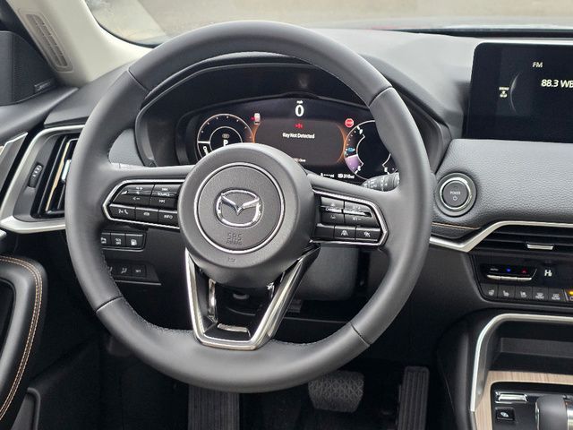 Stock Number: 26M0013, VIN Number: JM3KKCHA5T1359464, Style Name: AWD Premium Sport 4Dr SUV, Make: Mazda, Model: CX-90 Plug-In Hybrid, Model Year: 2026, Type: SUV, Vehicle Trim: Premium, Interior Color: Greige, Exterior Color: Jet Black Mica, Body Type: SUV, Engine Description: 2.5L 4-Cylinder, Fuel Type: Other, Fuel Induction: DI, Valves Per Cylinder: 4, Aspiration: Naturally Aspirated, 4WD Type: On Demand, Transmission: 8-Speed Automatic, Wheels Rims: Painted Aluminum Alloy, Wheels Spare Rim Type: Steel, Drive Train Type: AWD, Independent Suspension: Four-Wheel, Stabilizer Bar: Front And Rear, Clock, Compass, External Temp, Heads up Display, Low Fuel Level, Tachometer, Front Wipers: Speed Sensitive, Variable Intermittent, Rain Sensing, Privacy Glass, Rear Defogger, Rear Wiper: Intermittent, With Washer, Side Window Sunshade, Sunroof: One-Touch Open/Close, Anti-Trapping, Tilt/Slide, Power Panoramic, Power Sunshade, Antenna Type: Diversity, Mast, Audio System: AM/FM, HD Radio, Voice Operated, Touch Screen Display, Premium Brand: Bose, Speakers: 11, Drivers: Heated, Drivers Height: Power, Drivers Lumbar: Power, Drivers Power: 8, Passenger: Heated, Passenger Height: Power, Passenger Power: 8, Seating Capacity: 7, Front Seat Type: Bucket, Upholstery: Leather, Center Armrest, Folding: Split, Flat, Folding Thirdrow Seat: Split, Flat, Thirdrow Seat Type: 50-50 Split Bench, Center Console: Front Console With Armrest And Storage, Cupholders: Front, Third Row, Illuminated, Rear, Overhead Console: Front, Power Outlets: 12V Cargo Area, 115V Cargo Area, 12V Front, USB-C Front, USB-C Rear, USB-C Third Row, Seatback Storage, Steering Adjustment: Tilt And Telescopic, Steering Power: Variable/Speed-Proportional, Steering Wheel Control: Audio, Cruise Control, Phone, Multi-Function, Paddle Shifter, Voice Control, Universal Remote Transmitter: Homelink - Garage Door Opener, Auto Dimming Mirrors, Power Mirrors, Power Door Locks: Anti-Lockout, Auto-Locking, Windows: Power Windows, Navigation System: Touch Screen Display, Voice Operated, Memory Card, Memory Features Number of Drivers: 2 Driver, Air Conditioning: Automatic Climate Control, Sun Sensor Climate Control, Air Filtration, Trunk Lights, Mats: Third Row, Rear, Front, Reading Lights: Front, Rear, Shift Knob: Leather, Steering Wheel Trim: Leather, Vanity Mirrors: Dual Illuminating, Bumpers: Body-Color, Chrome Accents, NHTSA Passenger Grade: Excellent, NHTSA Driver Grade: Excellent, NHTSA Side Impact Front Grade: Excellent, NHTSA Side Impact Back Grade: Excellent, NHTSA Roll Over Resistance Rating: Good, ABS: 4-Wheel, Anti Theft System: Vehicle Immobilizer, Brake Assist, Safety Locks, Daytime Running Light: LED, Headlights Auto Delay, Front Headrests: 2, Adjustable, Rear Headrests: 3, Adjustable, Third Row Headrests: 2, Adjustable, Safety Signal Mirrors, Safety Stability Control, Driver and Passenger Airbag, Side Airbag, Stability Control, Front Head Room: 39.6 Inches, Front Hip Room: 56.2 Inches, Front Shoulder Room: 59.2 Inches, Front Leg Room: 41.7 Inches, Rear Head Room: 38.4 Inches, Rear Hip Room: 55.5 Inches, Rear Leg Room: 39.4 Inches, Rear Shoulder Room: 58.1 Inches, Luggage Capacity: 15.9 Cu.Ft., Maximum Seating: 7, Length: 201.6 Inches, Width: 84.9 Inches, Height: 68.7 Inches, Wheelbase: 122.8 Inches, Ground Clearance: 8.1 Inches, Max Gross Vehicle Weight: 6854 Lbs., Curb Weight: 5267 Lbs.