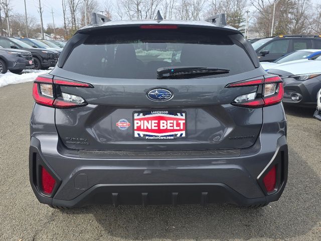 Stock Number: 26S0271, VIN Number: 4S4GUHD61T3726495, Style Name: AWD Premium 4Dr Crossover, Make: Subaru, Model: Crosstrek, Model Year: 2026, Type: Wagon, Vehicle Trim: Premium, Exterior Color: Gray, Body Type: Wagon, MPG Automatic City: 26, MPG Automatic Highway: 33, Engine Description: 2.5L 4-Cylinder DOHC 16V, Fuel Type: Gasoline, Fuel Induction: DI, Valves Per Cylinder: 4, Aspiration: Naturally Aspirated, 4WD Type: Full Time, Transmission: Lineartronic CVT, Wheels Rims: Painted Aluminum Alloy, Wheels Spare Rim Type: Steel, Drive Train Type: AWD, Independent Suspension: Four-Wheel, Stabilizer Bar: Front And Rear, Clock, External Temp, Low Fuel Level, Tachometer, Front Wipers: Variable Intermittent, Privacy Glass, Rear Defogger, Rear Wiper: Intermittent, Auto-On In Reverse, With Washer, Antenna Type: Diversity, Element, Mast, Audio System: AM/FM, HD Radio, Voice Operated, Touch Screen Display, Speakers: 6, Drivers Height: Manual, Seating Capacity: 5, Front Seat Type: Bucket, Upholstery: Cloth, Center Armrest, Folding: Split, Center Console: Front Console With Armrest And Storage, Illuminated, Organizer Tray, Cupholders: Front, Rear, Overhead Console: Front, Power Outlets: Two 12V Front, USB Front, USB-C Front, USB Rear, USB-C Rear, Seatback Storage, Steering Adjustment: Tilt And Telescopic, Steering Power: Variable/Speed-Proportional, Steering Wheel Control: Audio, Cruise Control, Phone, Multi-Function, Paddle Shifter, Voice Control, Power Mirrors, Power Door Locks: Anti-Lockout, Auto-Locking, Windows: Power Windows, Air Conditioning: Automatic Climate Control, Air Filtration, Trunk Lights, Center Console Trim: Leatherette, Dash Trim: Simulated Carbon Fiber, Door Trim: Simulated Carbon Fiber, Leatherette, Mats: Rear, Front, Reading Lights: Front, Rear, Vanity Mirrors: Dual Illuminating, Bumpers: Black, NHTSA Passenger Grade: Excellent, NHTSA Driver Grade: Excellent, NHTSA Roll Over Resistance Rating: Good, ABS: 4-Wheel, Anti Theft System: Alarm, Vehicle Immobilizer, Brake Assist, Safety Locks, Cornering Lights, Daytime Running Light, Fog Lights: LED, Headlights Auto Delay, Front Headrests: 2, Adjustable, Rear Headrests: 3, Adjustable, Safety Stability Control, Driver and Passenger Airbag, Side Airbag, Stability Control, Front Head Room: 39.8 Inches, Front Hip Room: 55.1 Inches, Front Shoulder Room: 56.8 Inches, Front Leg Room: 42.9 Inches, Rear Head Room: 38.0 Inches, Rear Hip Room: 53.2 Inches, Rear Leg Room: 36.5 Inches, Rear Shoulder Room: 55.3 Inches, Luggage Capacity: 19.9 Cu.Ft., Maximum Seating: 5, Length: 176.4 Inches, Width: 79.4 Inches, Height: 62.8 Inches, Wheelbase: 105.1 Inches, Ground Clearance: 8.7 Inches, Max Gross Vehicle Weight: 4817 Lbs., Curb Weight: 3304 Lbs., Interior Color: Black