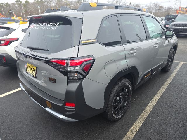 Stock Number: 26S0233, VIN Number: 4S4SLDK67T3038638, Style Name: AWD Wilderness 4Dr Crossover, Make: Subaru, Model: Forester, Model Year: 2026, Type: Wagon, Vehicle Trim: Wilderness, Exterior Color: Magnetite Gray Metallic, Body Type: Wagon, MPG Automatic City: 24, MPG Automatic Highway: 28, Engine Description: 2.5L 4-Cylinder DOHC 16V, Fuel Type: Gasoline, Fuel Induction: DI, Valves Per Cylinder: 4, Aspiration: Naturally Aspirated, 4WD Type: Full Time, Differential Limited Slip: Rear, Transmission: Lineartronic CVT, Wheels Rims: Painted Aluminum Alloy, Wheels Spare Rim Type: Steel, Drive Train Type: AWD, Independent Suspension: Four-Wheel, Stabilizer Bar: Front And Rear, Clock, External Temp, Low Fuel Level, Tachometer, Front Wipers: Variable Intermittent, Rain Sensing, Privacy Glass, Rear Defogger, Rear Wiper: Intermittent, Auto-On In Reverse, With Washer, Sunroof: One-Touch Open/Close, Sliding Sunshade, Anti-Trapping, Power Panoramic, Antenna Type: Diversity, Mast, Audio System: AM/FM, HD Radio, Voice Operated, Touch Screen Display, Speakers: 6, Drivers: Heated, Drivers Height: Power, Drivers Lumbar: Power, Drivers Power: 10, Passenger: Heated, Seating Capacity: 5, Front Seat Type: Bucket, Upholstery: Vinyl, Center Armrest, Folding: Split, One-Touch Fold Flat, Center Console: Front Console With Armrest And Storage, Illuminated, Organizer Tray, Cupholders: Front, Rear, Overhead Console: Front, Power Outlets: 12V Cargo Area, 12V Rear, 12V Front, USB Front, USB-C Front, USB Rear, USB-C Rear, Seatback Storage, Steering Adjustment: Tilt And Telescopic, Steering Power: Variable/Speed-Proportional, Steering Wheel Control: Audio, Cruise Control, Phone, Multi-Function, Paddle Shifter, Voice Control, Power Mirrors, Power Door Locks: Anti-Lockout, Auto-Locking, Windows: Power Windows, Air Conditioning: Automatic Climate Control, Air Filtration, Trunk Lights, Center Console Trim: Leatherette, Dash Trim: Metallic, Door Trim: Leatherette, Mats: Rear, Front, Reading Lights: Front, Rear, Shift Knob: Urethane, Steering Wheel Trim: Leather, Vanity Mirrors: Dual Illuminating, Bumpers: Black, Chrome Accents, NHTSA Passenger Grade: Excellent, NHTSA Driver Grade: Excellent, NHTSA Side Impact Front Grade: Excellent, NHTSA Side Impact Back Grade: Excellent, NHTSA Roll Over Resistance Rating: Good, ABS: 4-Wheel, Anti Theft System: Alarm, Vehicle Immobilizer, Brake Assist, Safety Locks, Cornering Lights, Daytime Running Light, Fog Lights: LED, Headlights Auto Delay, Front Headrests: 2, Adjustable, Rear Headrests: 3, Adjustable, Safety Signal Mirrors, Safety Stability Control, Driver and Passenger Airbag, Side Airbag, Stability Control, Front Head Room: 40.0 Inches, Front Hip Room: 54.7 Inches, Front Shoulder Room: 57.7 Inches, Front Leg Room: 43.3 Inches, Rear Head Room: 37.7 Inches, Rear Hip Room: 53.7 Inches, Rear Leg Room: 39.4 Inches, Rear Shoulder Room: 56.7 Inches, Luggage Capacity: 27.5 Cu.Ft., Maximum Seating: 5, Length: 182.9 Inches, Width: 81.2 Inches, Height: 69.3 Inches, Wheelbase: 104.9 Inches, Ground Clearance: 9.3 Inches, Curb Weight: 3675 Lbs., Interior Color: Gray
