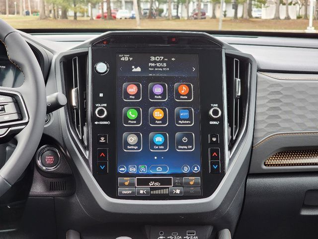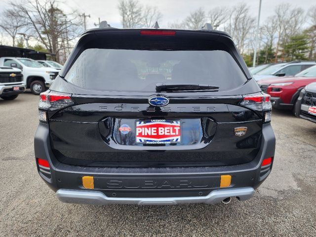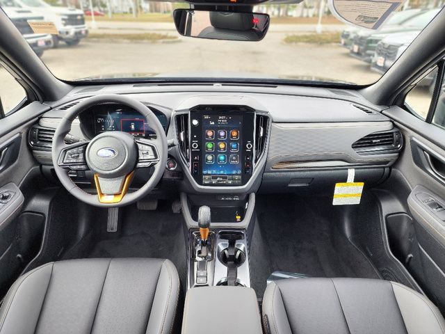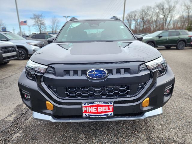 Stock Number: 26S0400, VIN Number: 4S4SLDL63T3061770, Style Name: AWD Wilderness 4Dr Crossover, Make: Subaru, Model: Forester, Model Year: 2026, Type: Wagon, Vehicle Trim: Wilderness, Exterior Color: Crystal Black Silica, Body Type: Wagon, MPG Automatic City: 24, MPG Automatic Highway: 28, Engine Description: 2.5L 4-Cylinder DOHC 16V, Fuel Type: Gasoline, Fuel Induction: DI, Valves Per Cylinder: 4, Aspiration: Naturally Aspirated, 4WD Type: Full Time, Differential Limited Slip: Rear, Transmission: Lineartronic CVT, Wheels Rims: Painted Aluminum Alloy, Wheels Spare Rim Type: Steel, Drive Train Type: AWD, Independent Suspension: Four-Wheel, Stabilizer Bar: Front And Rear, Clock, External Temp, Low Fuel Level, Tachometer, Front Wipers: Variable Intermittent, Rain Sensing, Privacy Glass, Rear Defogger, Rear Wiper: Intermittent, Auto-On In Reverse, With Washer, Sunroof: One-Touch Open/Close, Sliding Sunshade, Anti-Trapping, Power Panoramic, Antenna Type: Diversity, Mast, Audio System: AM/FM, HD Radio, Voice Operated, Touch Screen Display, Speakers: 6, Drivers: Heated, Drivers Height: Power, Drivers Lumbar: Power, Drivers Power: 10, Passenger: Heated, Seating Capacity: 5, Front Seat Type: Bucket, Upholstery: Vinyl, Center Armrest, Folding: Split, One-Touch Fold Flat, Center Console: Front Console With Armrest And Storage, Illuminated, Organizer Tray, Cupholders: Front, Rear, Overhead Console: Front, Power Outlets: 12V Cargo Area, 12V Rear, 12V Front, USB Front, USB-C Front, USB Rear, USB-C Rear, Seatback Storage, Steering Adjustment: Tilt And Telescopic, Steering Power: Variable/Speed-Proportional, Steering Wheel Control: Audio, Cruise Control, Phone, Multi-Function, Paddle Shifter, Voice Control, Power Mirrors, Power Door Locks: Anti-Lockout, Auto-Locking, Windows: Power Windows, Air Conditioning: Automatic Climate Control, Air Filtration, Trunk Lights, Center Console Trim: Leatherette, Dash Trim: Metallic, Door Trim: Leatherette, Mats: Rear, Front, Reading Lights: Front, Rear, Shift Knob: Urethane, Steering Wheel Trim: Leather, Vanity Mirrors: Dual Illuminating, Bumpers: Black, Chrome Accents, NHTSA Passenger Grade: Excellent, NHTSA Driver Grade: Excellent, NHTSA Side Impact Front Grade: Excellent, NHTSA Side Impact Back Grade: Excellent, ABS: 4-Wheel, Anti Theft System: Alarm, Vehicle Immobilizer, Brake Assist, Safety Locks, Cornering Lights, Daytime Running Light, Fog Lights: LED, Headlights Auto Delay, Front Headrests: 2, Adjustable, Rear Headrests: 3, Adjustable, Safety Signal Mirrors, Safety Stability Control, Driver and Passenger Airbag, Side Airbag, Stability Control, Front Head Room: 40.0 Inches, Front Hip Room: 54.7 Inches, Front Shoulder Room: 57.7 Inches, Front Leg Room: 43.3 Inches, Rear Head Room: 37.7 Inches, Rear Hip Room: 53.7 Inches, Rear Leg Room: 39.4 Inches, Rear Shoulder Room: 56.7 Inches, Luggage Capacity: 27.5 Cu.Ft., Maximum Seating: 5, Length: 182.9 Inches, Width: 81.2 Inches, Height: 69.3 Inches, Wheelbase: 104.9 Inches, Ground Clearance: 9.3 Inches, Curb Weight: 3675 Lbs., Interior Color: Gray