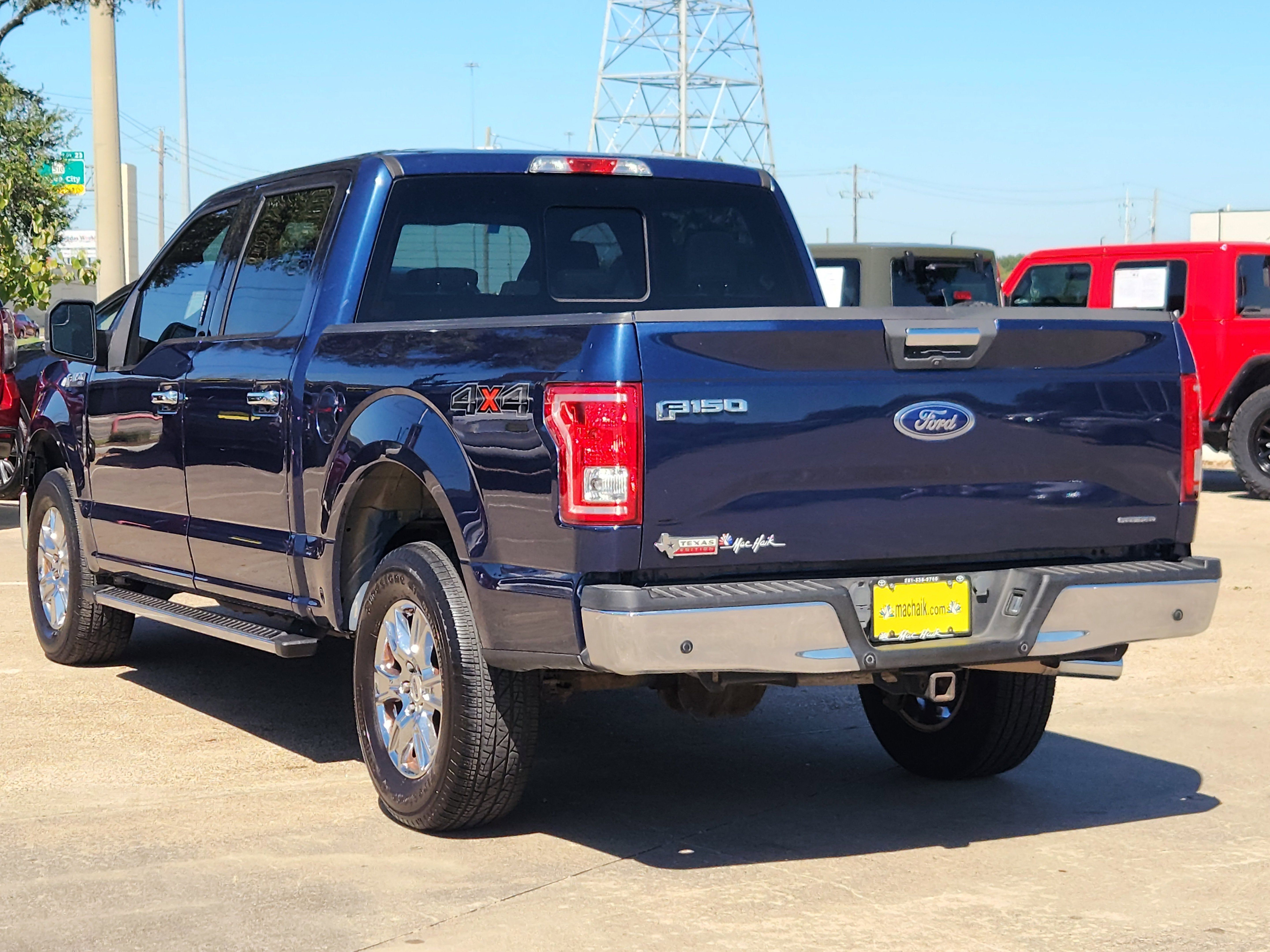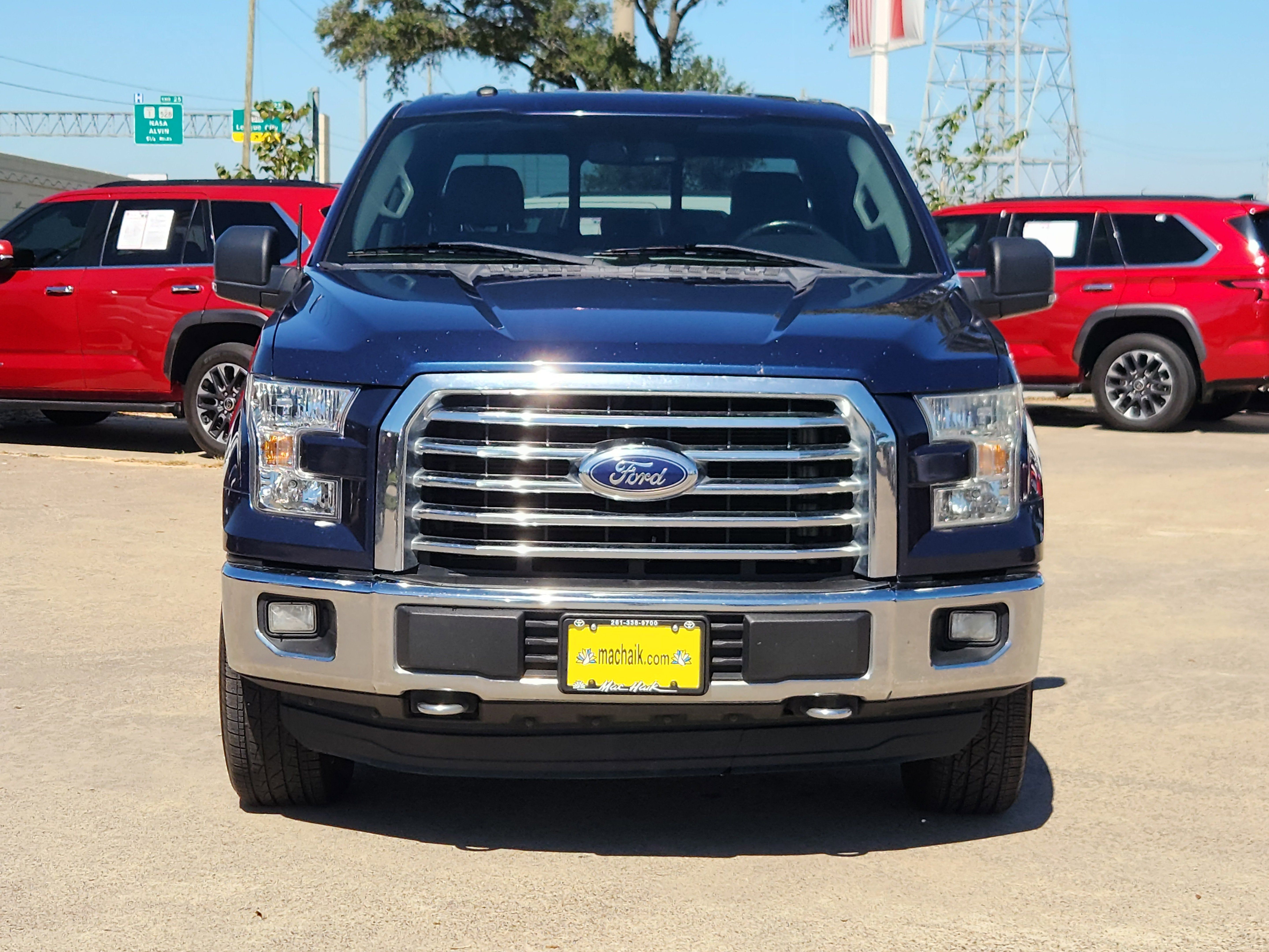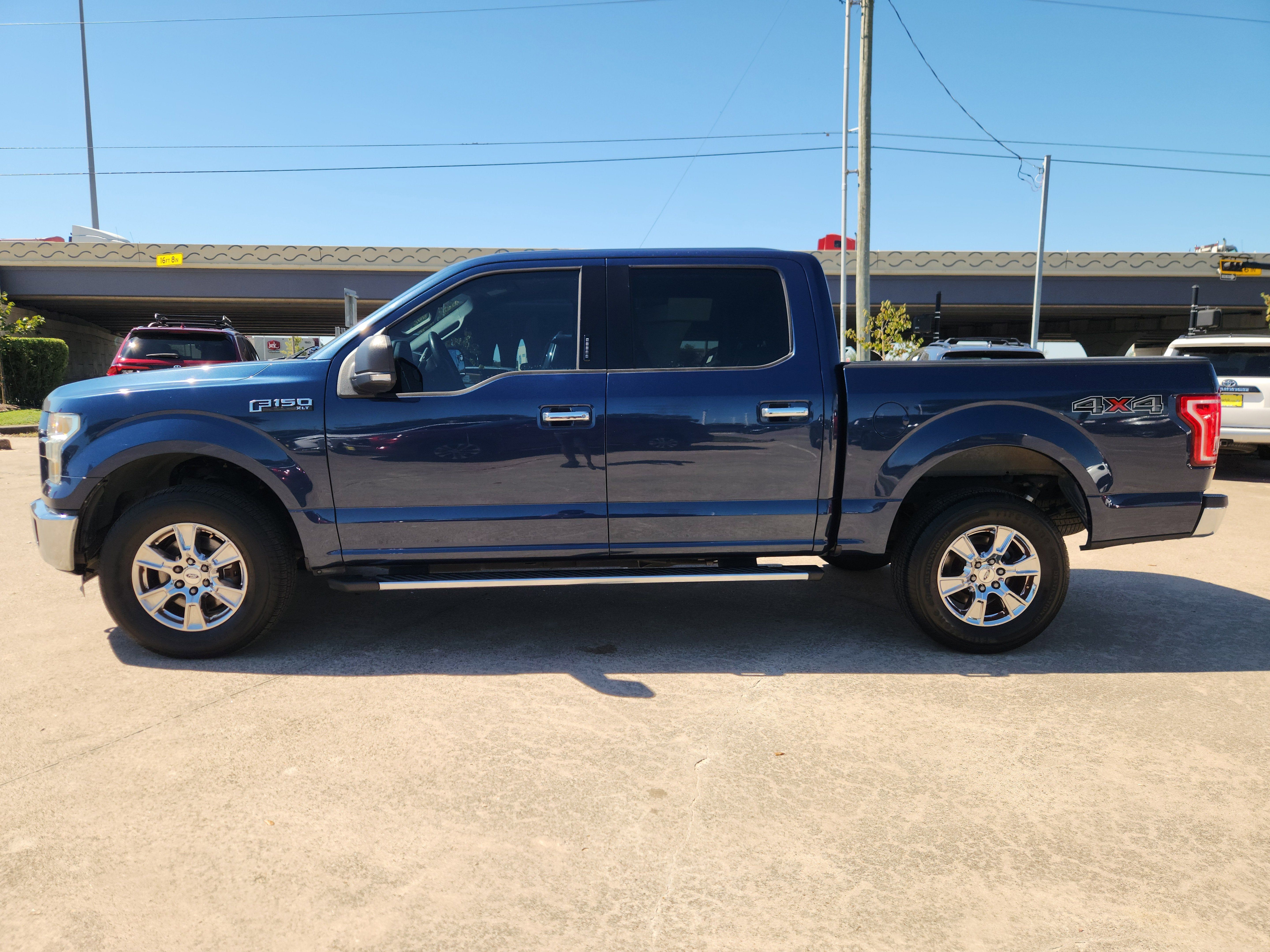 Blue 2016 Ford F-150 XLT 4WD 6-Speed Automatic Electronic 5.0L V8 FFV 4WD, 6 Speakers, ABS brakes, Air Conditioning, Alloy wheels, AM/FM radio, Compass, Driver door bin, Driver vanity mirror, Electronic Stability Control, Illuminated entry, Low tire pressure warning, Occupant sensing airbag, Overhead airbag, Panic alarm, Power door mirrors, Power steering, Power windows, Remote keyless entry, Speed control, Traction control, Variably intermittent wipers.