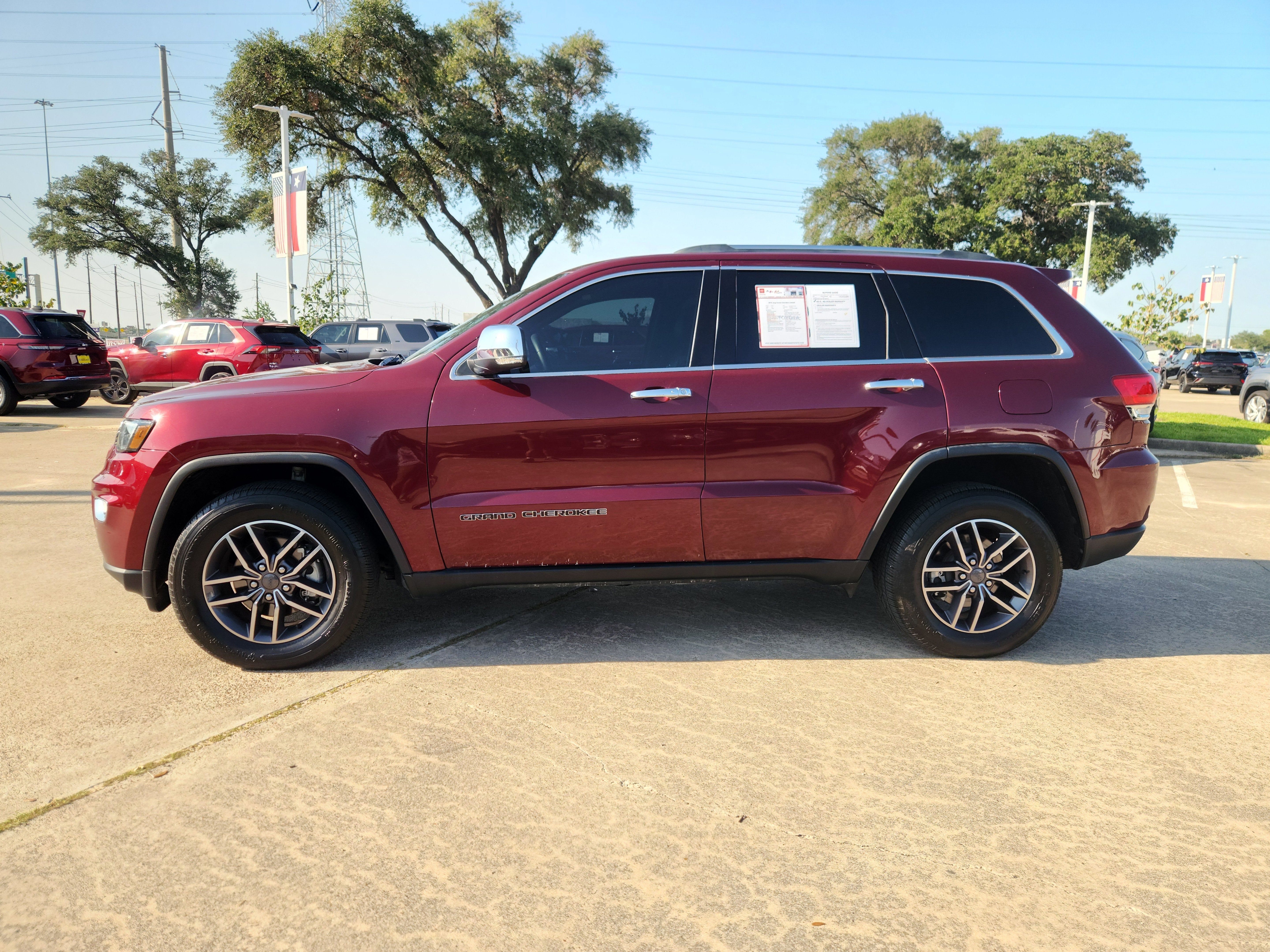 Velvet Red Pearlcoat 2019 Jeep Grand Cherokee Limited 4WD 8-Speed Automatic 3.6L V6 24V VVT 4WD, 6 Speakers, ABS brakes, Air Conditioning, Alloy wheels, AM/FM radio: SiriusXM, Automatic temperature control, Brake assist, Compass, Driver door bin, Driver vanity mirror, Dual front side impact airbags, Electronic Stability Control, Front Bucket Seats, Front dual zone A/C, Front fog lights, Heated front seats, Leather Shift Knob, Leather Trimmed Seats w/Perforated Inserts, Low tire pressure warning, Occupant sensing airbag, Panic alarm, Power driver seat, Power Liftgate, Power steering, Power windows, Quick Order Package 2BH, Rain Sensitive Windshield Wipers, Rear window defroster, Rear window wiper, Remote keyless entry, Speed control, Speed-Sensitive Wipers, Spoiler, Steering wheel mounted audio controls, Tachometer, Tilt steering wheel, Trip computer, Variably intermittent wipers.