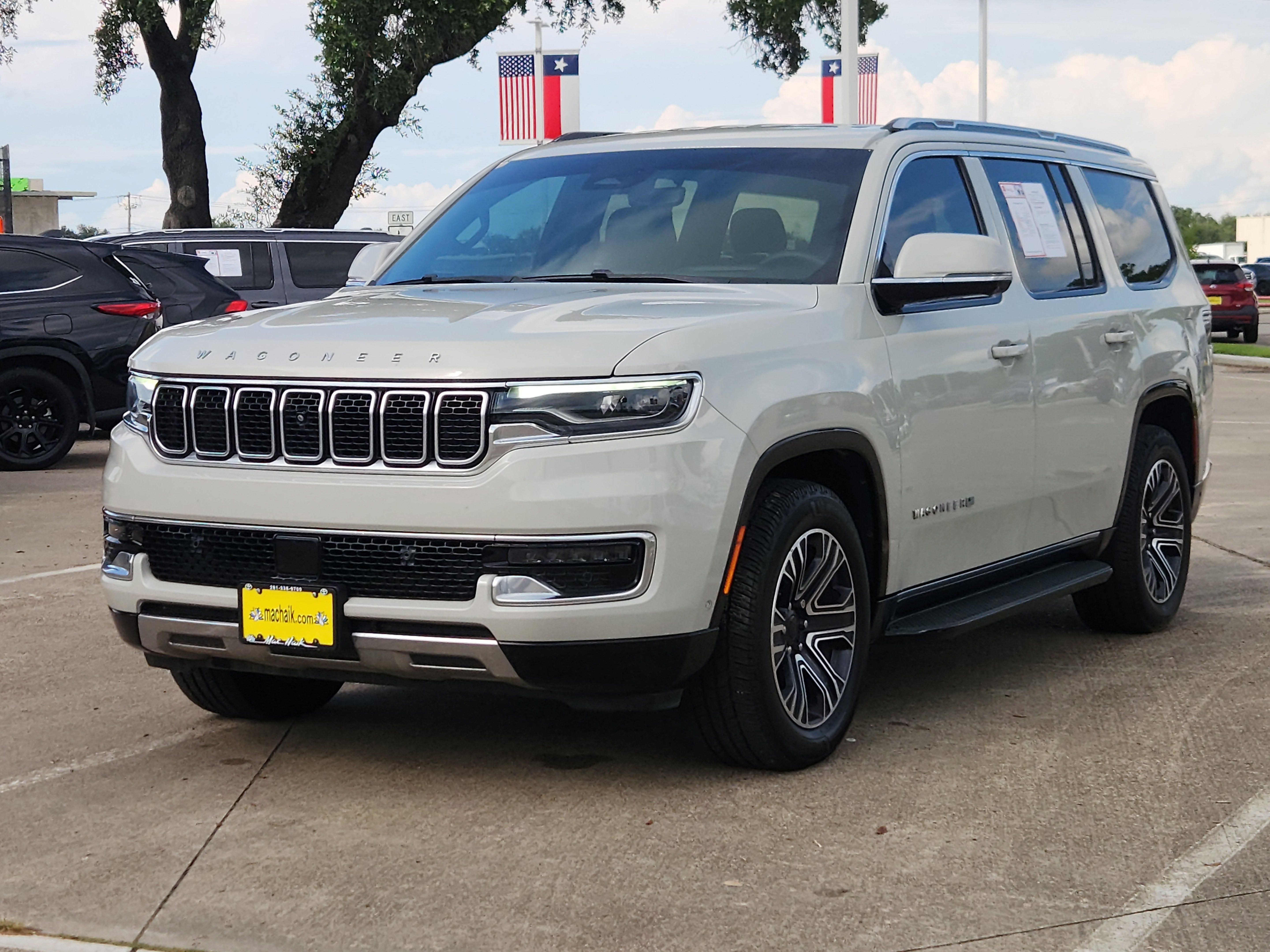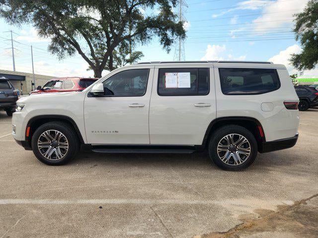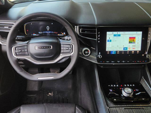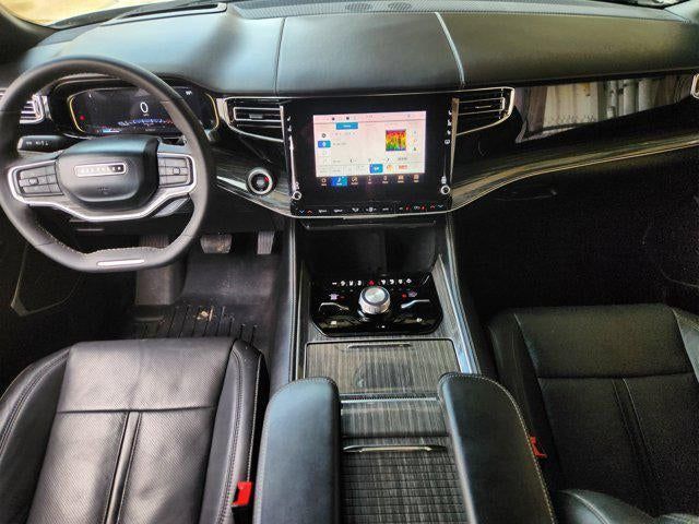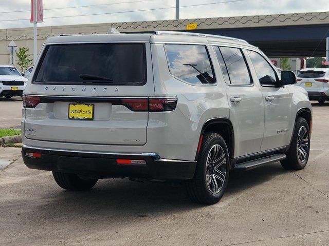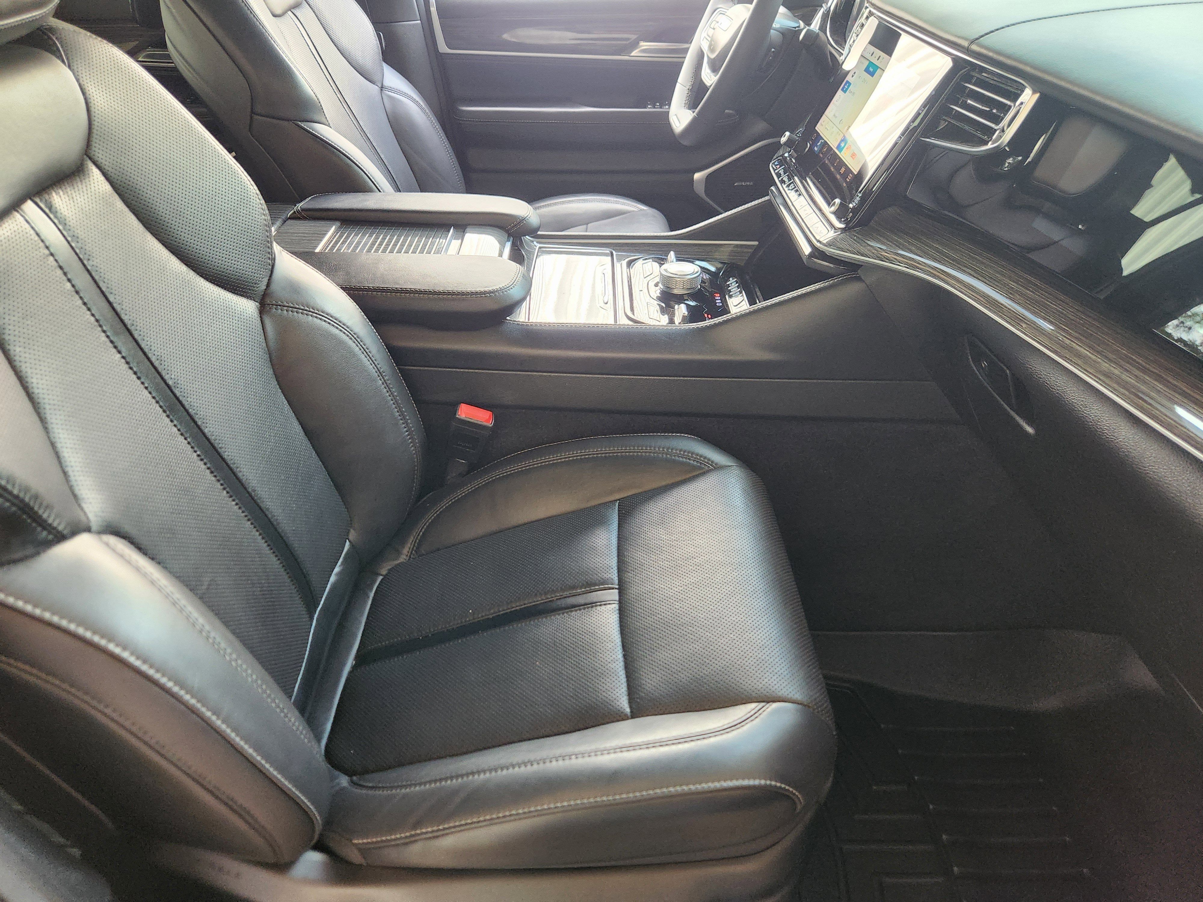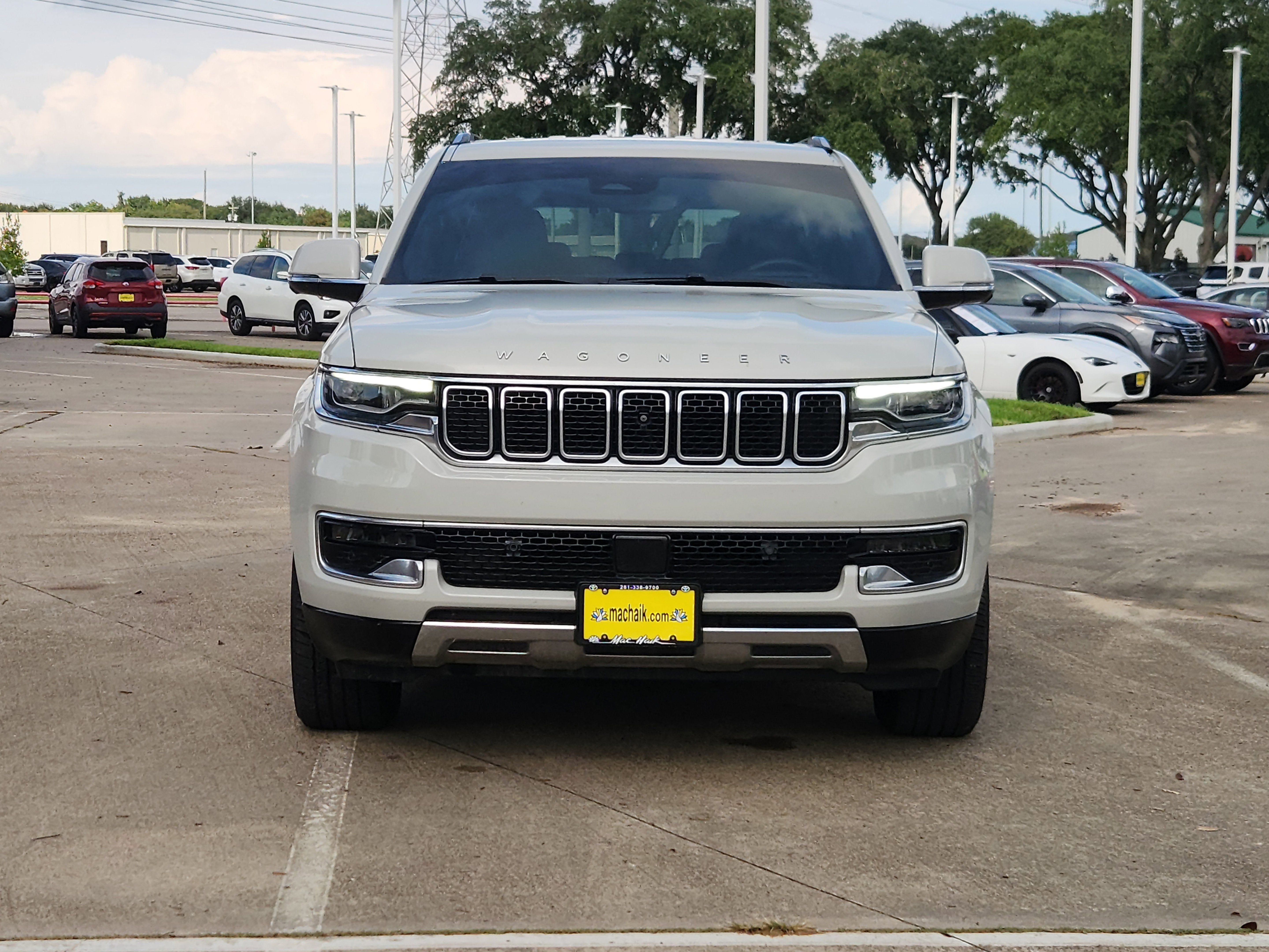 Luxury White Pearlcoat 2022 Jeep Wagoneer Series III 4WD 8-Speed Automatic 5.7L V8 10 Speakers, 2nd Row Manual Window Shades, 3rd row seats: bench, 7-Passenger Seating, ABS brakes, Adjustable pedals, Air Conditioning, Amazon Fire TV Built-In, Automatic temperature control, Brake assist, Convenience Group I, Driver door bin, Driver vanity mirror, Driver's Seat Mounted Armrest, Drowsy Driver Detection, Dual front impact airbags, Dual front side impact airbags, Electronic Stability Control, Front Bucket Seats, Front Center Armrest w/Storage, Front dual zone A/C, Front fog lights, Front reading lights, Fully automatic headlights, Garage door transmitter, Genuine wood console insert, Genuine wood dashboard insert, Genuine wood door panel insert, Heated door mirrors, Heated front seats, Heated rear seats, Heated steering wheel, Illuminated entry, Intersection Collision Assist System, Knee airbag, Leather Trimmed Bucket Seats, Low tire pressure warning, Navigation System, Occupant sensing airbag, Outside temperature display, P&P Park & Unpark Assist w/Stop System, Panic alarm, Passenger seat mounted armrest, Passenger vanity mirror, Power door mirrors, Power driver seat, Power Liftgate, Power passenger seat, Power steering, Power windows, Quick Order Package 22N, Radio: Uconnect 5 Nav w/10.1 Display, Rain sensing wipers, Rear air conditioning, Rear dual zone A/C, Rear reading lights, Rear seat center armrest, Rear Seat Video Group 1, Rear window defroster, Rear window wiper, Reclining 3rd row seat, Remote keyless entry, Seatback Video Screens, Speed control, Speed-Sensitive Wipers, Split folding rear seat, Steering wheel memory, Steering wheel mounted audio controls, Surround View Camera System, Telescoping steering wheel, Tilt steering wheel, Traction control, Traffic Sign Recognition, Trip computer, Turn signal indicator mirrors, Variably intermittent wipers, Ventilated front seats, Video USB Port, Wheels: 20 x 9.0 Premium 2 Aluminum.