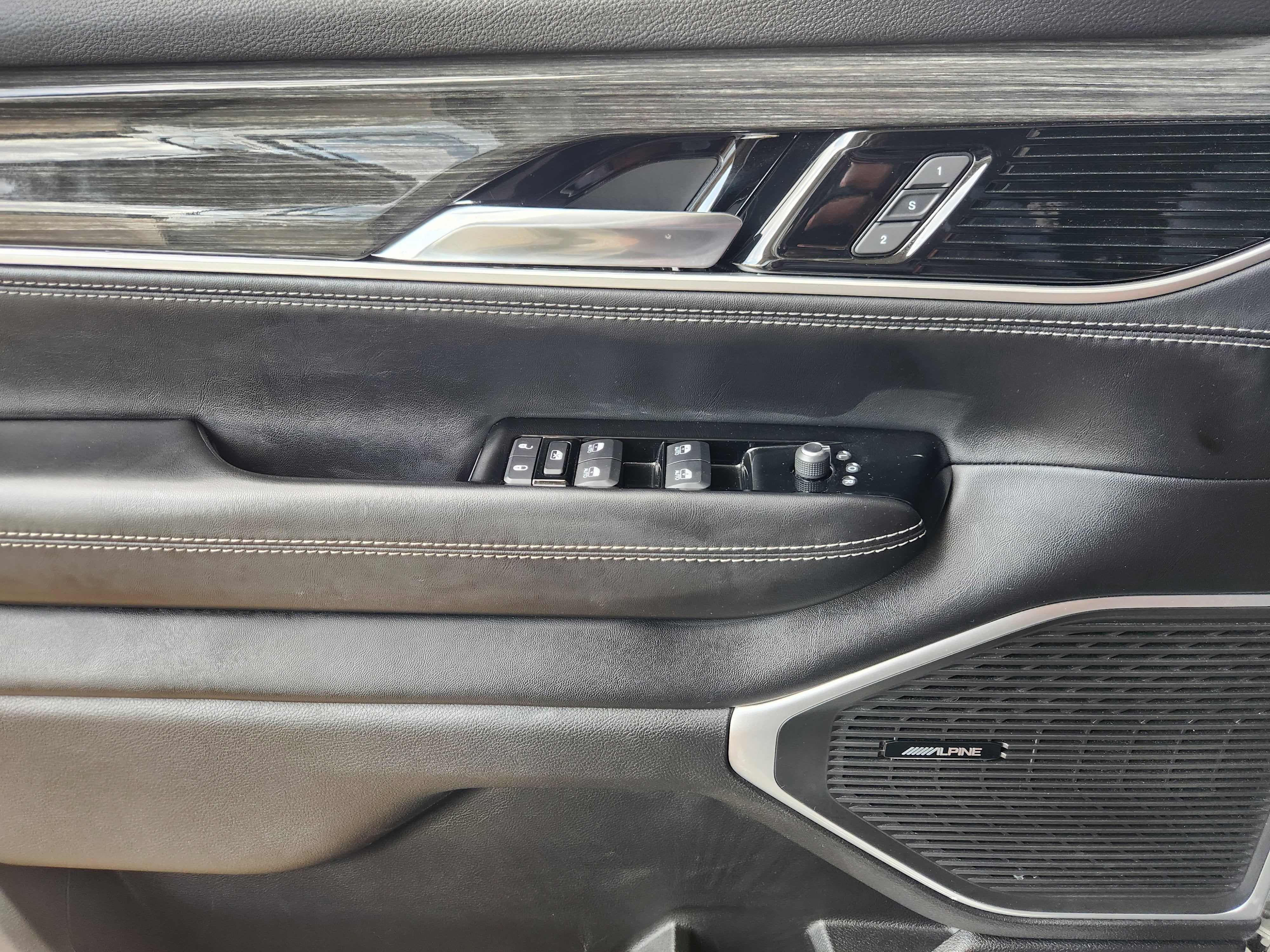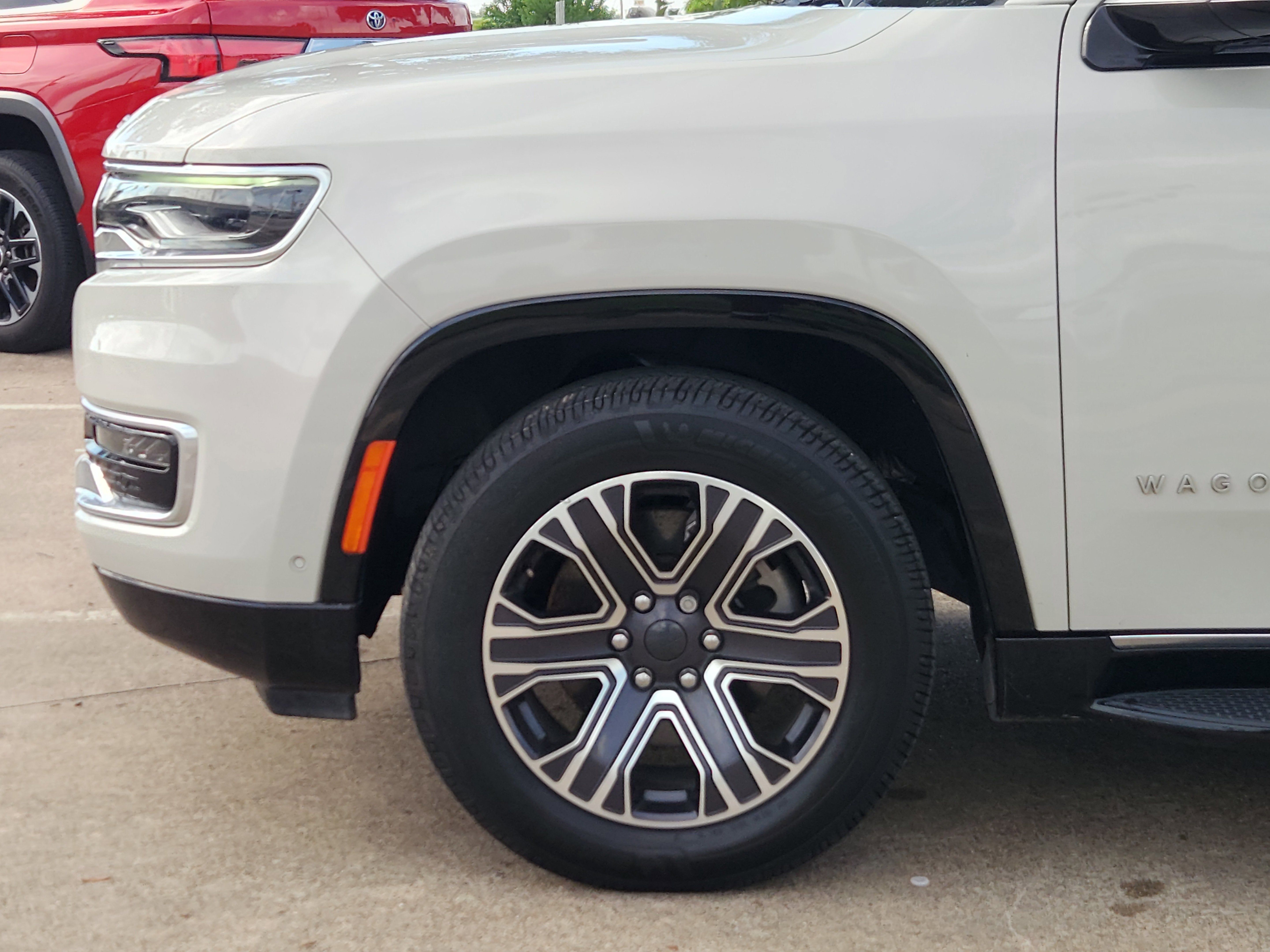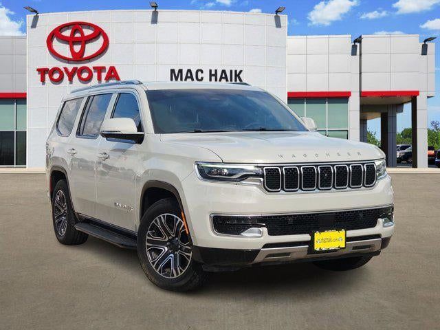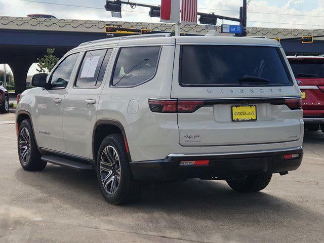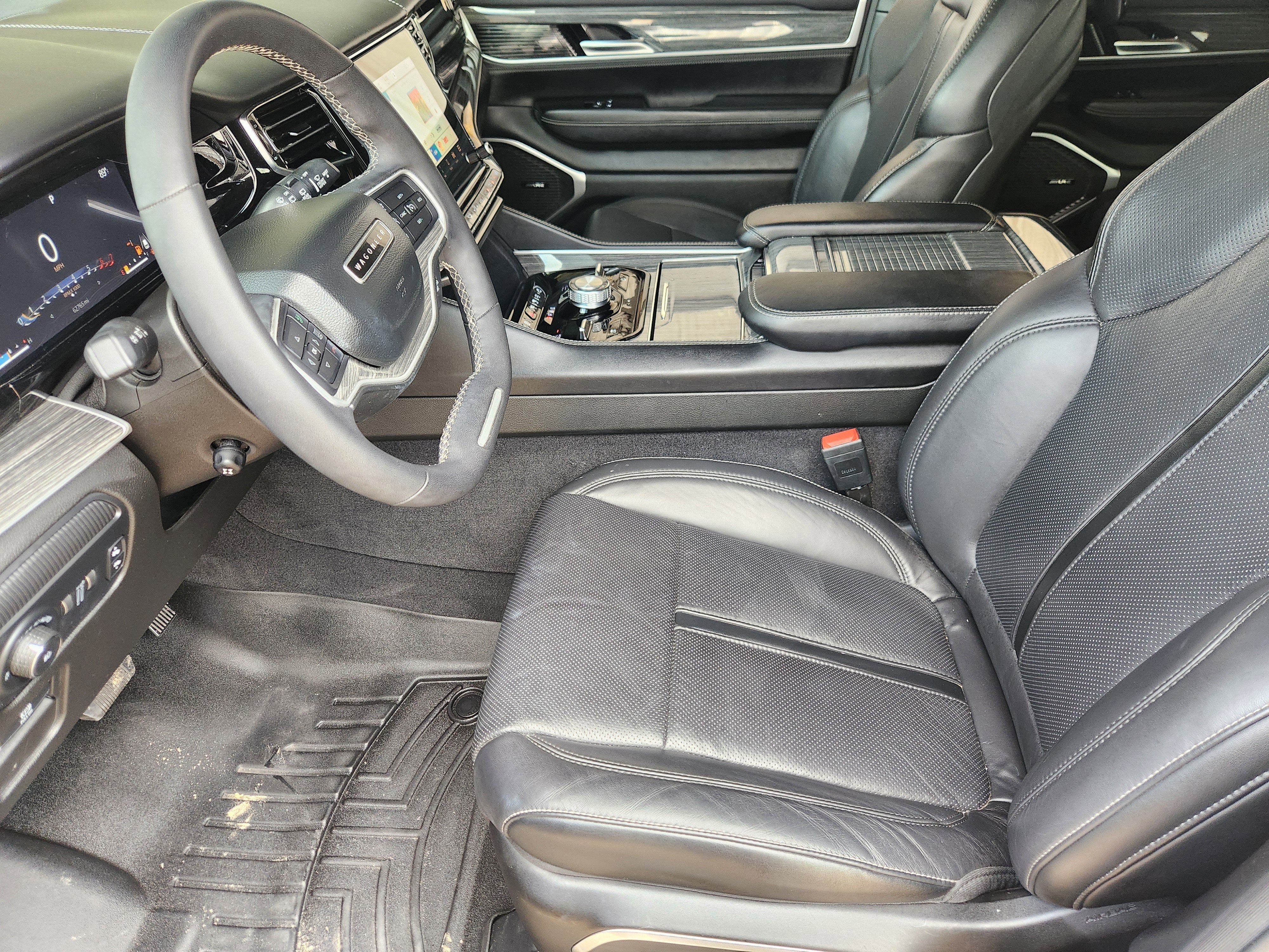 Luxury White Pearlcoat 2022 Jeep Wagoneer Series III 4WD 8-Speed Automatic 5.7L V8 10 Speakers, 2nd Row Manual Window Shades, 3rd row seats: bench, 7-Passenger Seating, ABS brakes, Adjustable pedals, Air Conditioning, Amazon Fire TV Built-In, Automatic temperature control, Brake assist, Convenience Group I, Driver door bin, Driver vanity mirror, Driver's Seat Mounted Armrest, Drowsy Driver Detection, Dual front impact airbags, Dual front side impact airbags, Electronic Stability Control, Front Bucket Seats, Front Center Armrest w/Storage, Front dual zone A/C, Front fog lights, Front reading lights, Fully automatic headlights, Garage door transmitter, Genuine wood console insert, Genuine wood dashboard insert, Genuine wood door panel insert, Heated door mirrors, Heated front seats, Heated rear seats, Heated steering wheel, Illuminated entry, Intersection Collision Assist System, Knee airbag, Leather Trimmed Bucket Seats, Low tire pressure warning, Navigation System, Occupant sensing airbag, Outside temperature display, P&P Park & Unpark Assist w/Stop System, Panic alarm, Passenger seat mounted armrest, Passenger vanity mirror, Power door mirrors, Power driver seat, Power Liftgate, Power passenger seat, Power steering, Power windows, Quick Order Package 22N, Radio: Uconnect 5 Nav w/10.1 Display, Rain sensing wipers, Rear air conditioning, Rear dual zone A/C, Rear reading lights, Rear seat center armrest, Rear Seat Video Group 1, Rear window defroster, Rear window wiper, Reclining 3rd row seat, Remote keyless entry, Seatback Video Screens, Speed control, Speed-Sensitive Wipers, Split folding rear seat, Steering wheel memory, Steering wheel mounted audio controls, Surround View Camera System, Telescoping steering wheel, Tilt steering wheel, Traction control, Traffic Sign Recognition, Trip computer, Turn signal indicator mirrors, Variably intermittent wipers, Ventilated front seats, Video USB Port, Wheels: 20 x 9.0 Premium 2 Aluminum.