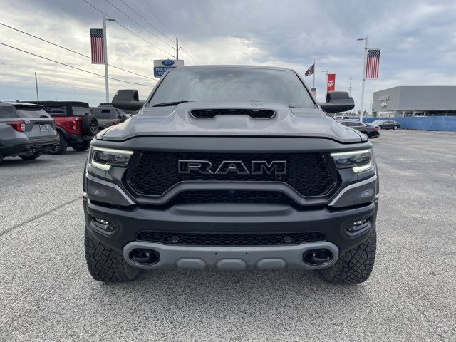 Granite Crystal Metallic Clearcoat 2023 Ram 1500 TRX 4WD 8-Speed Automatic 6.2L Supercharged HEMI V8 SRT #2 Seat Foam Cushion, 2-Door Passive Entry, Front Door Locks, 4 Way Front Headrests, Accent Color Door Handles, Blind Spot & Cross Path Detection, Bucket Seats, Center Console Parts Module, Digital Rearview Mirror, Driver Seat Memory, Driver/Passenger Wrapped Assist Handles, Exterior Mirrors w/Memory, Front Door Accent Lighting, Front Seat Back Map Pockets, Full Length Premium Upgraded Floor Console, harman/kardon 19 Speaker Premium Sound, Heads-Up Display, Heated Front Seats, Heated Second Row Seats, Heated Steering Wheel, IP LED Ambient Light Pipe, Leather Trimmed Bucket Seats, Leather/Suede Flat-Bottom Steering Wheel, LED CHMSL Lamp, Luxury Front Door Trim Panel, MOPAR Bright Pedal Kit, ParkSense Front/Rear Park Assist w/Stop, Pick-Up Box Lighting, Power 4-Way Driver Lumbar Adjust, Power 4-Way Passenger Lumbar Adjust, Power 8-Way Driver & Passenger Seats, Power Adjustable Pedals w/Memory, Premium Wrapped IP Bezel, Radio/Driver Seat/Mirrors/Pedals Memory, Rain Sensitive Windshield Wipers, Rear 60/40 Folding Seat, Rear 60/40 Folding Split Recline Seat, Rear Door Accent Lighting, Rear Underseat Compartment Storage, Rear Window Defroster, Remote Tailgate Release, Sun Visors w/Illuminated Vanity Mirrors, Surround View Camera System, Trailer Brake Control, TRX Level 2 Equipment Group, Universal Garage Door Opener, Ventilated Front Seats, Ventilated Rear Seats, Wireless Charging Pad.Recent Arrival! Odometer is 10340 miles below market average!