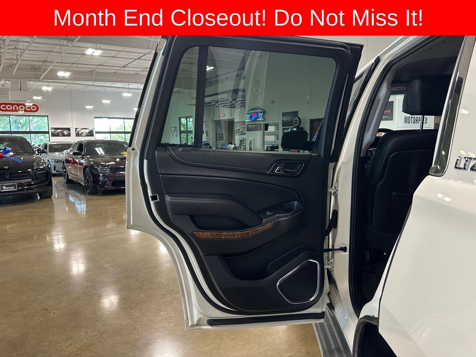 White Diamond Tricoat 2015 Chevrolet Tahoe LTZ, all the right packages at an incredible value!***We are eager to show this awesome ride, and any other models that wow you! Call to schedule your personal presentation today! (214) 544-0102 , or drop this address into your gps and pop on in! 2101 Gateway Drive, Irving, Texas 75038 *** read on, we are glad you are here...Recent Arrival! Odometer is 29578 miles below market average! Service airride light will be on as we replaces rear suspension components with standard suspension, 4D Sport Utility RWD EcoTec3 5.3L V8 Priced below KBB Fair Purchase Price! Tahoe LTZ, EcoTec3 5.3L V8, RWD, White Diamond Tricoat, Jet Black Leather, 3.42 Rear Axle Ratio, 3rd Row 60/40 Power Fold Split-Bench, 5 12-Volt Auxiliary Power Outlets, Auto-Dimming Inside Rear-View Mirror, Bose Centerpoint Premium 10-Speaker Surround Sound, Driver Inboard & Front Passenger Airbags, Floor Console, Fog Lamps, Forward Collision Alert, Front & Rear Parking Assist, Hands Free Power Liftgate, Heated 2nd Row Seats, Heated Leather Wrapped Steering Wheel, Heavy-Duty Rear Locking Differential, Integrated Trailer Brake Controller, Keyless Start Switch, Lane Departure Warning & Safety Alert Seat, License Plate Front Mounting Package, Magnetic Ride Control Suspension Package, Max Trailering Package, Memory Settings, Passive Entry System, Power Adjustable Pedals, Power Release 2nd Row Bucket Seats, Power Tilt & Telescoping Steering Column, Power-Folding Heated Outside Mirrors, Preferred Equipment Group 1LZ, Rear Cross-Traffic Alert, Remote Keyless Entry, Side Blind Zone Alert w/Lane Change Alert, Universal Home Remote, Wireless Charging.***More questions? Call the Hopper Motorplex team anytime at (214) 544-0102 or visit our site https://hoppermotorplex.com ***Awards: * JD Power Automotive Performance, Execution and Layout (APEAL) Study, JD Power Initial Quality Study * 2015 KBB.com Best Buy Awards * 2015 KBB.com 15 Best Family Cars 16/23 City/Highway MPG