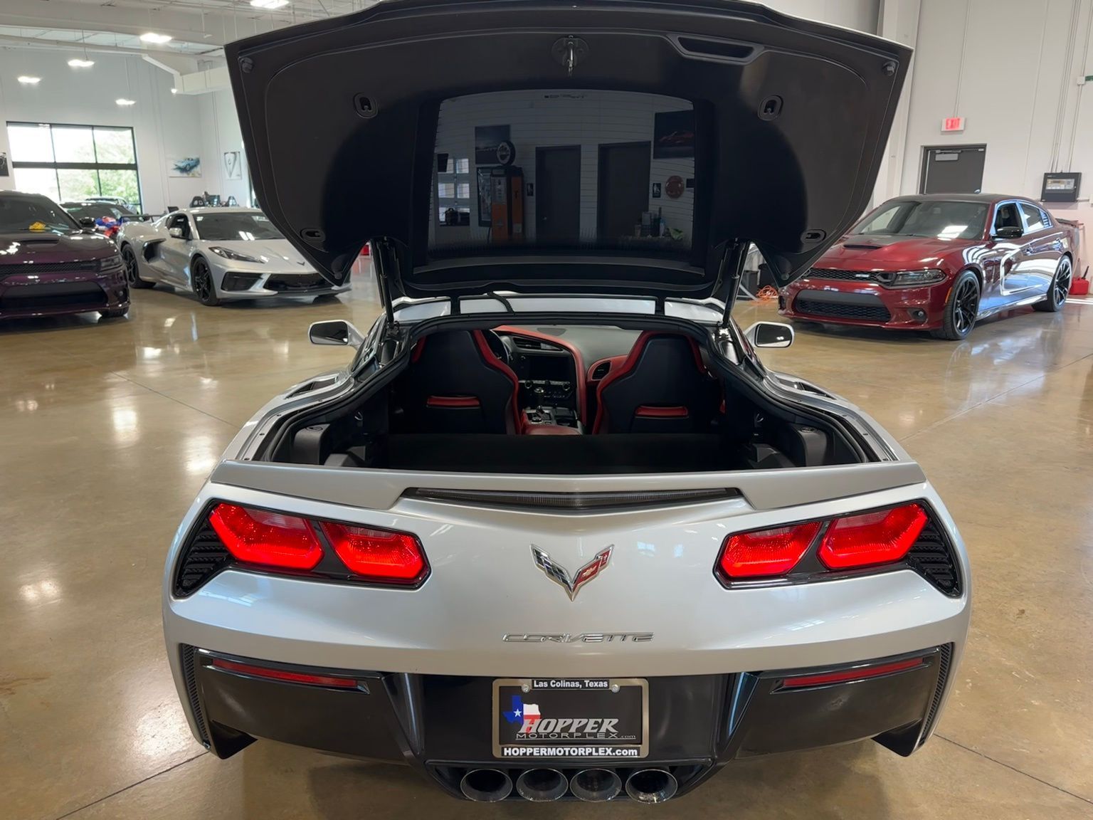 Blade Silver Metallic 2016 Chevrolet Corvette Stingray Z51 3LT***We are eager to show this awesome ride, and any other models that wow you! Call to schedule your personal presentation today! (214) 544-0102 , or drop this address into your gps and pop on in! 2101 Gateway Drive, Irving, Texas 75038 *** read on, we are glad you are here...3LT Recent Arrival! 2D Coupe RWD 6.2L V8 16/29 City/Highway MPG Corvette Stingray Z51 3LT, 6.2L V8, 8 Speed Paddle Shift with Automatic Modes, Adrenaline Red Leather, 3LT Interior Trim, Auto-Dimming Inside Frameless Rearview Mirror, Body-Color Outside Heated Power-Adjustable Mirrors, Bose Advanced 10-Speaker Audio System Feature, Cargo Net, Custom Leather Wrapped Interior Package, Front Curb View Cameras, Head-Up Display, Heated & Vented Driver & Passenger Seats, Luggage Shade, Memory Package, Performance Data & Video Recorder, Power Lumbar/Bolster Seat Adjusters, Preferred Equipment Group 3LT, Radio: Chevrolet MyLink w/Navigation, Sueded Microfiber-Wrapped Interior Trim Package, Theft Deterrent System, Universal Home Remote.***More questions? Call the Hopper Motorplex team anytime at (214) 544-0102 or visit our site https://hoppermotorplex.com ***Awards: * 2016 KBB.com Best Buy Awards Finalist * 2016 KBB.com Best Buy Awards 16/29 City/Highway MPG