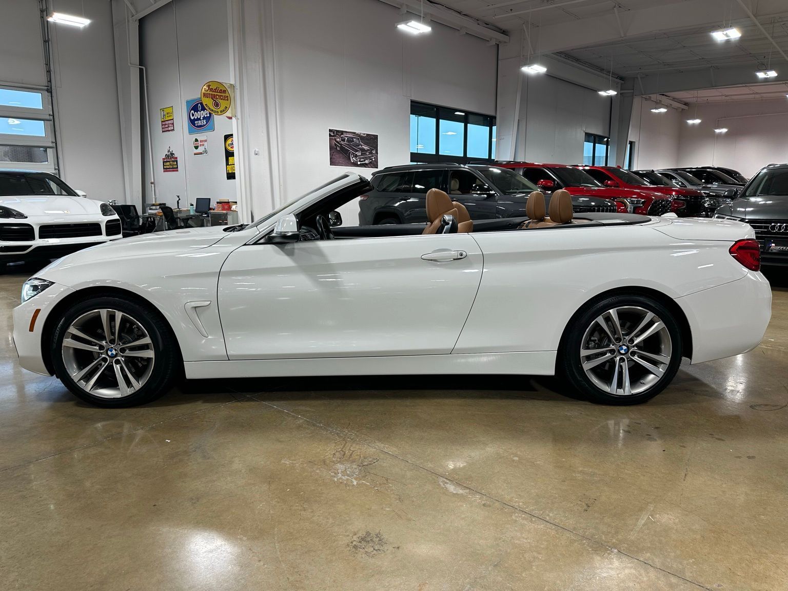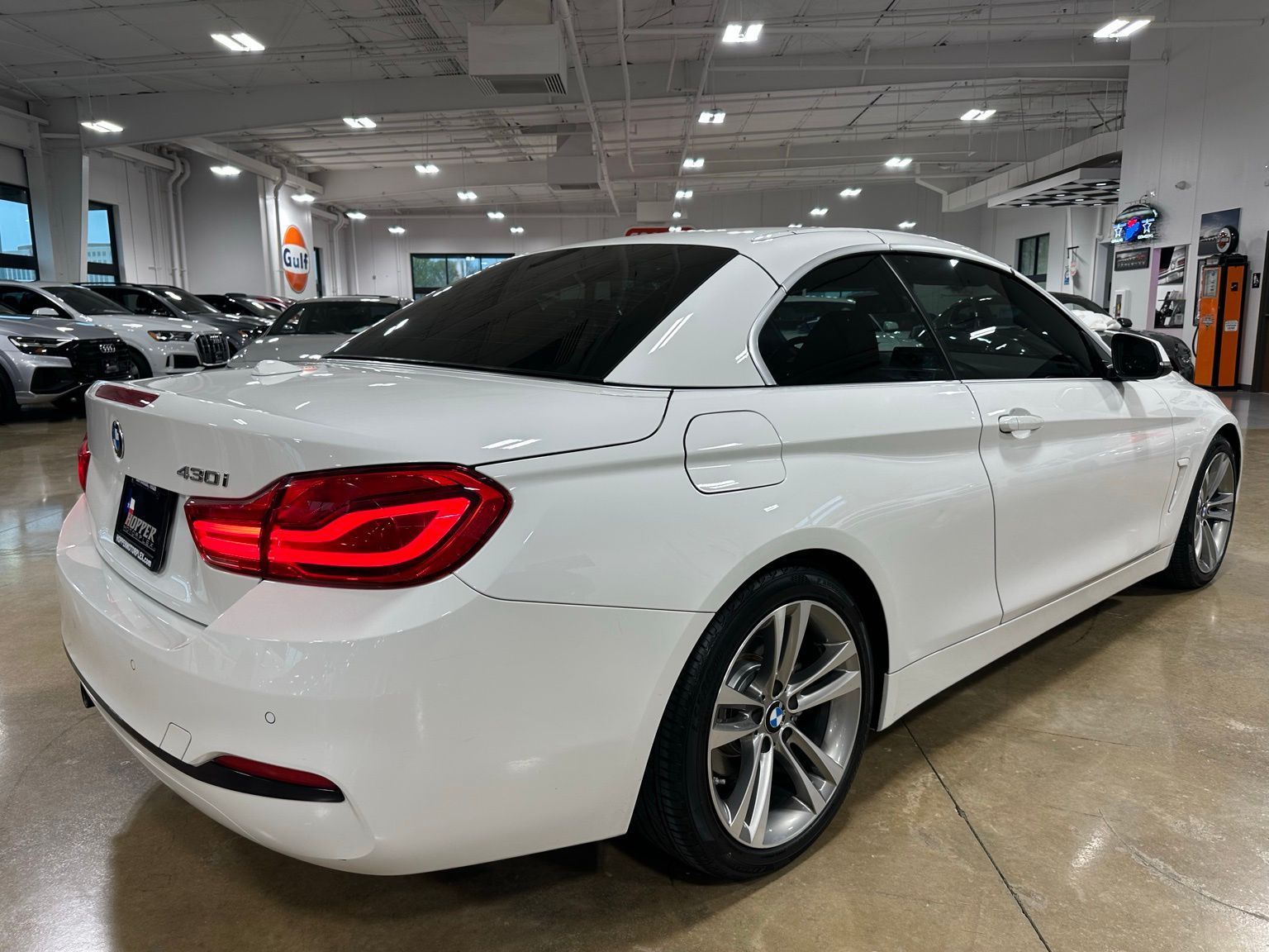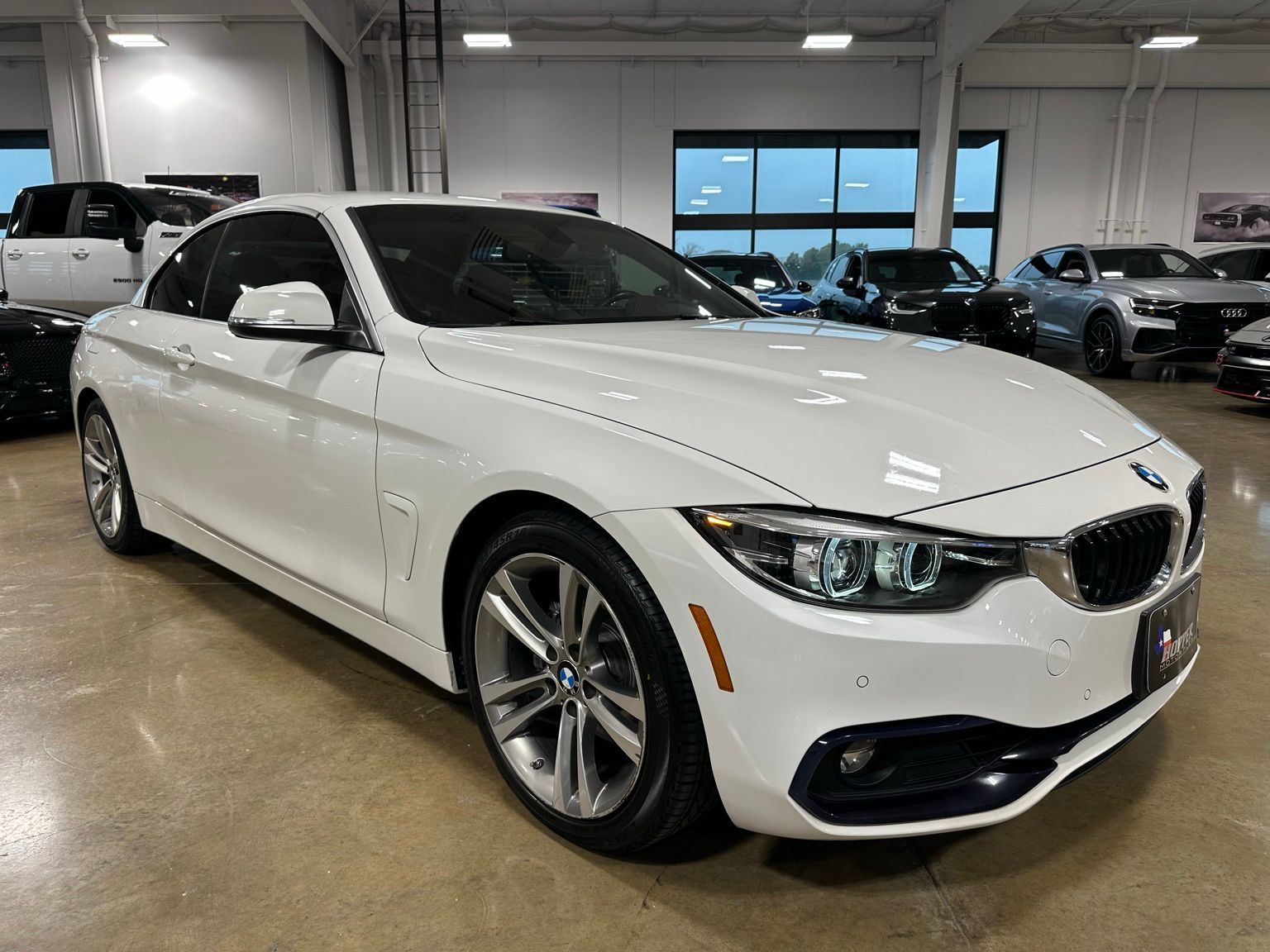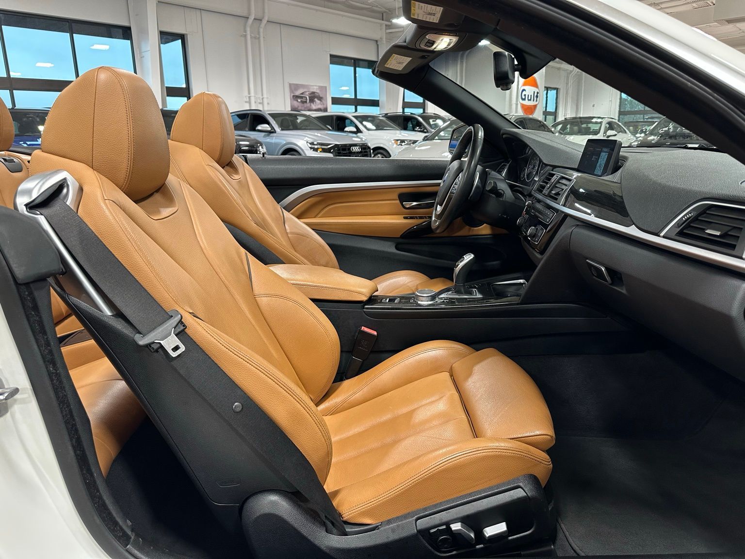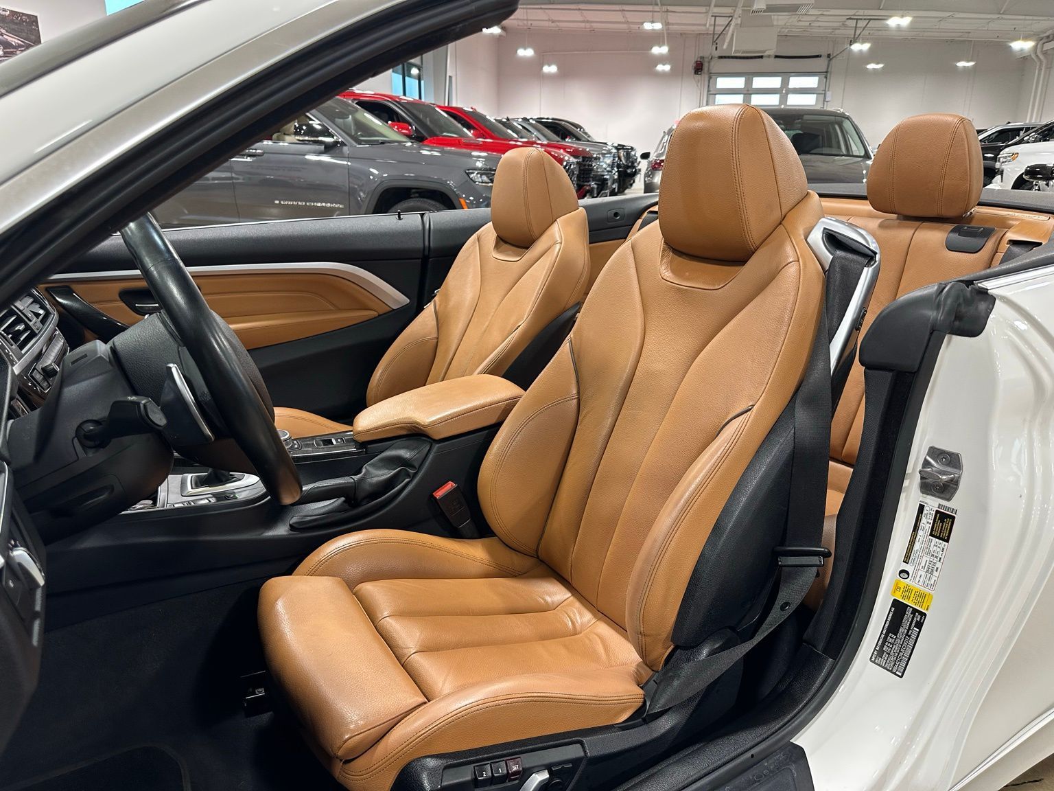 2018 BMW 4 Series 430i Luxury Convertible Hardtop, Alpine White exterior / Cognac Brown Interior, 2D Convertible RWD 8-Speed Automatic Sport 2.0L 4-Cylinder TwinPower Turbo 4-Wheel Disc Brakes, 9 Speakers, ABS brakes, Air Conditioning, Alloy wheels, AM/FM radio, Anti-whiplash front head restraints, Auto-dimming door mirrors, Auto-dimming Rear-View mirror, Automatic temperature control, Brake assist, Bumpers: body-color, CD player, Comfort Access Keyless Entry, Convertible HardTop, Convertible roof lining, Convertible roof wind blocker, Delay-off headlights, Driver door bin, Driver vanity mirror, Dual front impact airbags, Dual front side impact airbags, Electronic Stability Control, Emergency communication system: BMW Assist eCall, Essentials Package, Exterior Parking Camera Rear, Four wheel independent suspension, Front anti-roll bar, Front Bucket Seats, Front Center Armrest, Front dual zone A/C, Front fog lights, Front reading lights, Fully automatic headlights, Garage door transmitter, Genuine wood console insert, Genuine wood dashboard insert, Genuine wood door panel insert, Glass rear window, Hands-Free Bluetooth & USB Audio Connection, Heated door mirrors, Hi-Fi Sound System, Illuminated entry, Integrated roll-over protection, Knee airbag, Leather Shift Knob, Leather steering wheel, Low tire pressure warning, Memory seat, Occupant sensing airbag, Outside temperature display, Panic alarm, Park Distance Control, Passenger door bin, Passenger vanity mirror, Power convertible roof, Power door mirrors, Power driver seat, Power Front Seats, Power passenger seat, Power steering, Power windows, Radio data system, Radio: Anti-Theft AM/FM/HD Stereo CD/MP3 Player, Rain sensing wipers, Rear air conditioning, Rear anti-roll bar, Rear reading lights, Rear seat center armrest, Rear window defroster, Remote keyless entry, Security system, SensaTec Leatherette Upholstery, SiriusXM Satellite Radio, Speed control, Speed-sensing steering, Speed-Sensitive Wipers, Sport Seats, Sport steering wheel, Steering wheel mounted audio controls, Tachometer, Telescoping steering wheel, Tilt steering wheel, Traction control, Trip computer, Turn signal indicator mirrors, Variably intermittent wipers, Wheels: 18" x 8" Double-Spoke (Style 397).Recent Arrival! Odometer is 16530 miles below market average! 24/34 City/Highway MPG