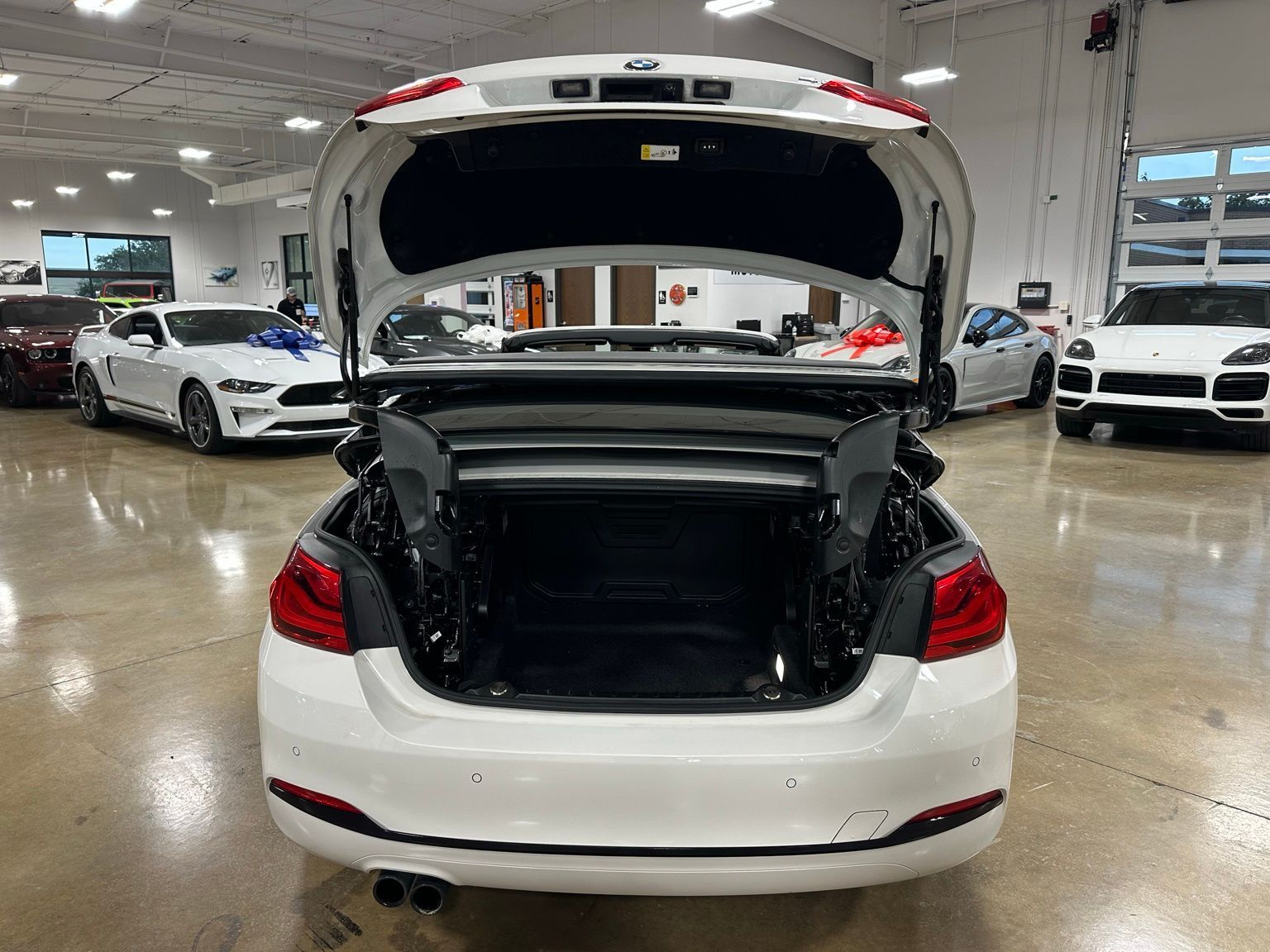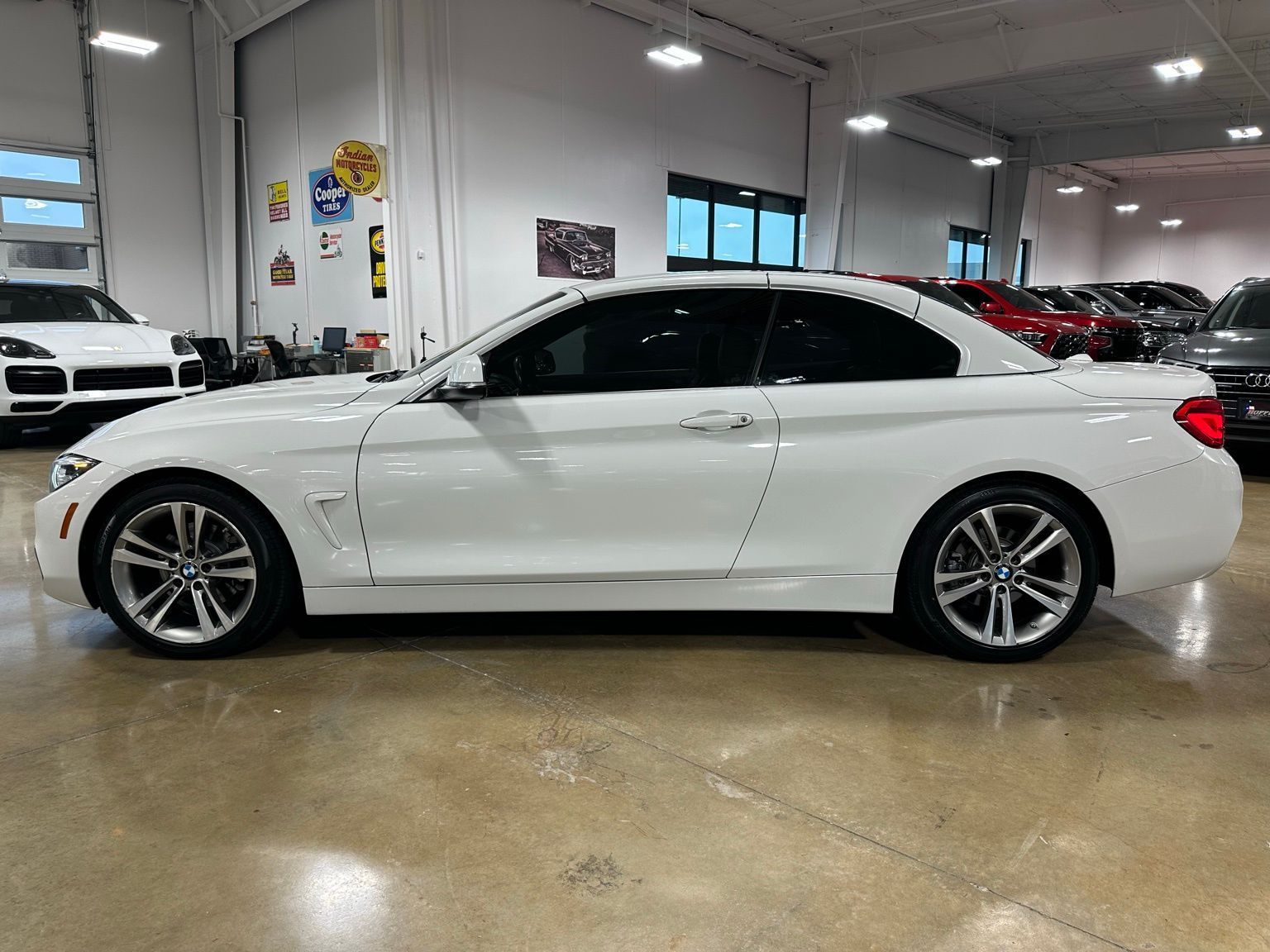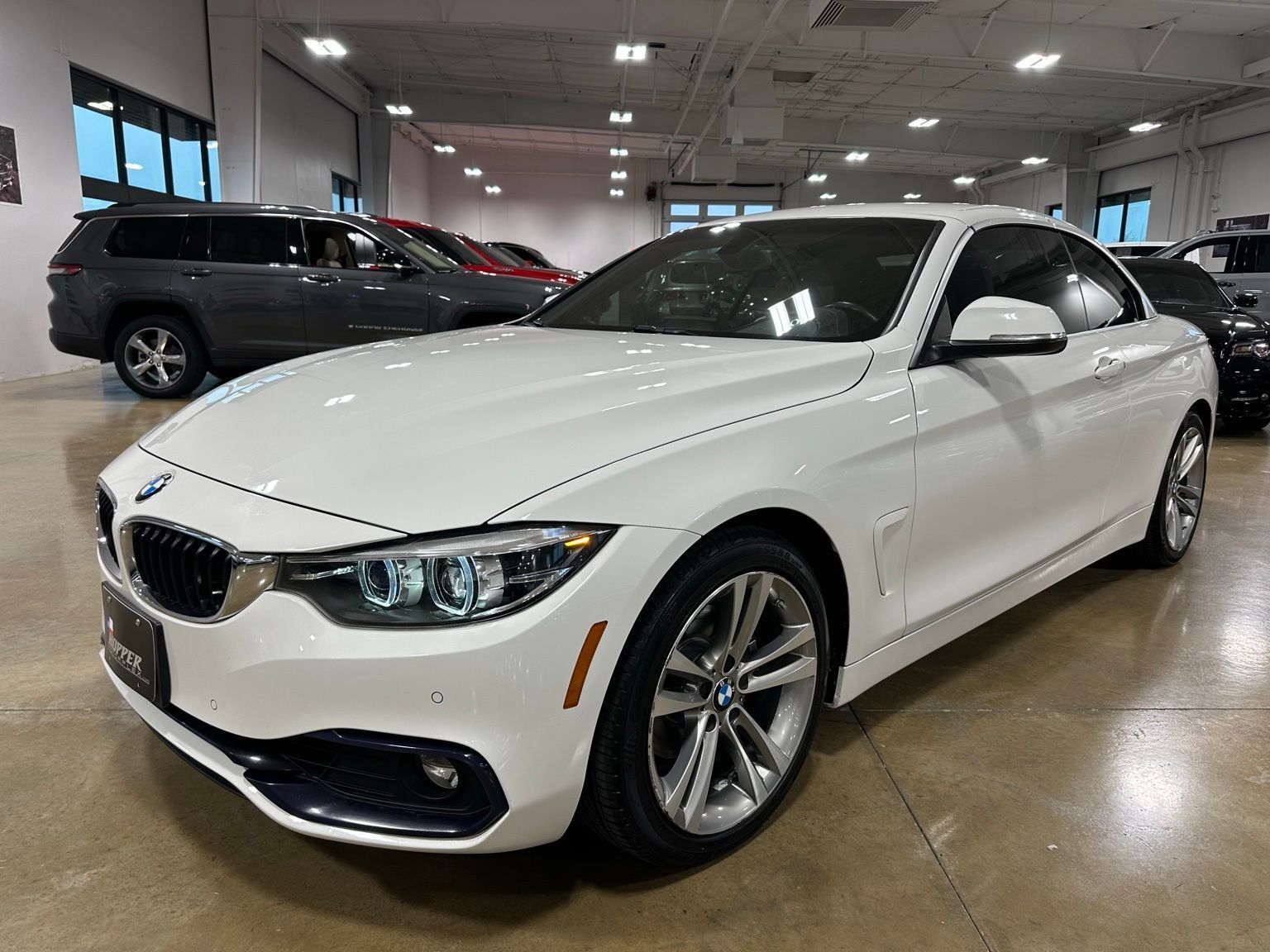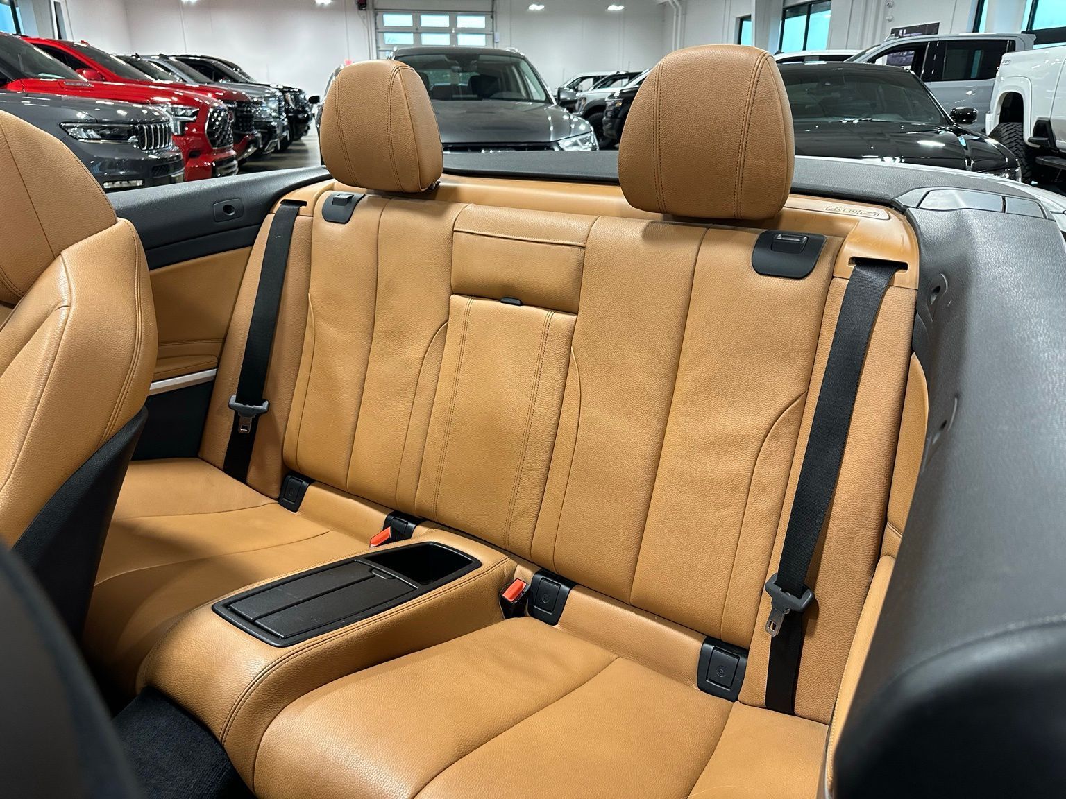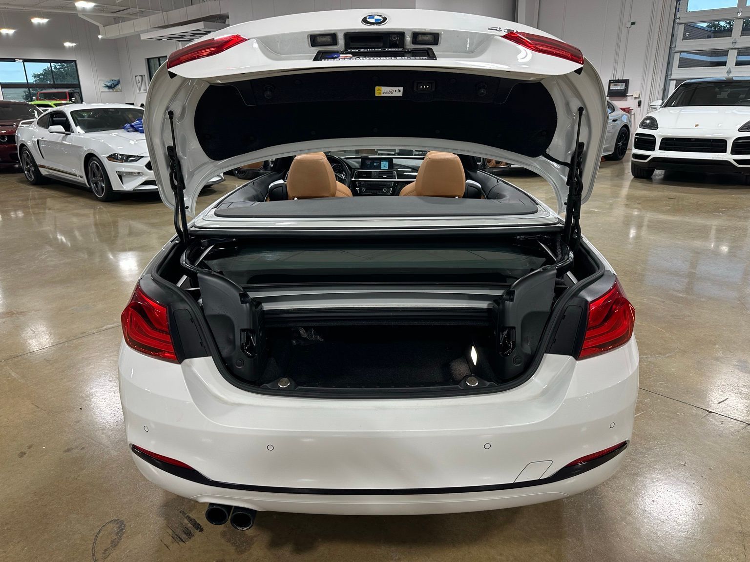 2018 BMW 4 Series 430i Luxury Convertible Hardtop, Alpine White exterior / Cognac Brown Interior, 2D Convertible RWD 8-Speed Automatic Sport 2.0L 4-Cylinder TwinPower Turbo 4-Wheel Disc Brakes, 9 Speakers, ABS brakes, Air Conditioning, Alloy wheels, AM/FM radio, Anti-whiplash front head restraints, Auto-dimming door mirrors, Auto-dimming Rear-View mirror, Automatic temperature control, Brake assist, Bumpers: body-color, CD player, Comfort Access Keyless Entry, Convertible HardTop, Convertible roof lining, Convertible roof wind blocker, Delay-off headlights, Driver door bin, Driver vanity mirror, Dual front impact airbags, Dual front side impact airbags, Electronic Stability Control, Emergency communication system: BMW Assist eCall, Essentials Package, Exterior Parking Camera Rear, Four wheel independent suspension, Front anti-roll bar, Front Bucket Seats, Front Center Armrest, Front dual zone A/C, Front fog lights, Front reading lights, Fully automatic headlights, Garage door transmitter, Genuine wood console insert, Genuine wood dashboard insert, Genuine wood door panel insert, Glass rear window, Hands-Free Bluetooth & USB Audio Connection, Heated door mirrors, Hi-Fi Sound System, Illuminated entry, Integrated roll-over protection, Knee airbag, Leather Shift Knob, Leather steering wheel, Low tire pressure warning, Memory seat, Occupant sensing airbag, Outside temperature display, Panic alarm, Park Distance Control, Passenger door bin, Passenger vanity mirror, Power convertible roof, Power door mirrors, Power driver seat, Power Front Seats, Power passenger seat, Power steering, Power windows, Radio data system, Radio: Anti-Theft AM/FM/HD Stereo CD/MP3 Player, Rain sensing wipers, Rear air conditioning, Rear anti-roll bar, Rear reading lights, Rear seat center armrest, Rear window defroster, Remote keyless entry, Security system, SensaTec Leatherette Upholstery, SiriusXM Satellite Radio, Speed control, Speed-sensing steering, Speed-Sensitive Wipers, Sport Seats, Sport steering wheel, Steering wheel mounted audio controls, Tachometer, Telescoping steering wheel, Tilt steering wheel, Traction control, Trip computer, Turn signal indicator mirrors, Variably intermittent wipers, Wheels: 18" x 8" Double-Spoke (Style 397).Recent Arrival! Odometer is 16530 miles below market average! 24/34 City/Highway MPG