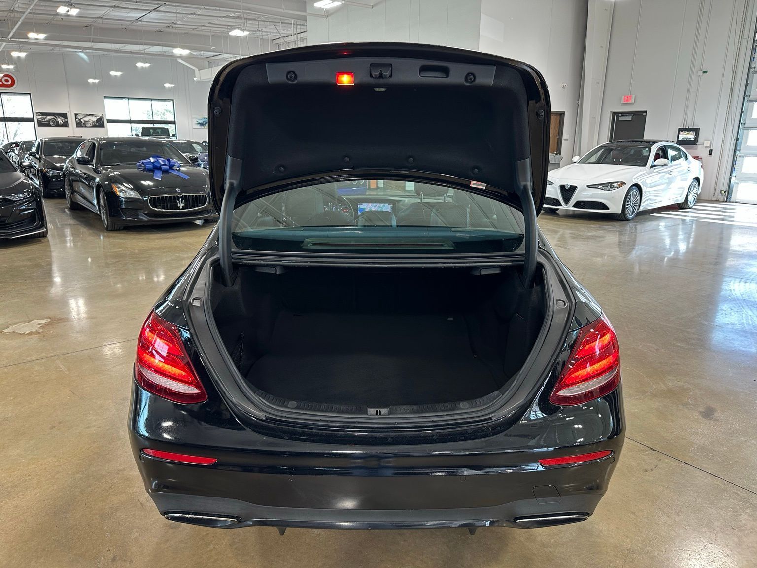 2018 Mercedes-Benz E-Class E 300 AMG Sport Line,Do NOT miss this gem during our Spring Early Bird Savings Event on now! Parking Package, Panoramic Sunroof, Black/Black w/Leather Upholstery 4D Sedan RWD 9-Speed Automatic I4 19" AMG® Twin 5-Spoke Wheels, 4-Wheel Disc Brakes, 8 Speakers, ABS brakes, Air Conditioning, AM/FM radio, AMG® Body Styling, Anti-whiplash front head restraints, Apple CarPlay®/Android Auto®, Auto tilt-away steering wheel, Auto-dimming door mirrors, Auto-dimming Rear-View mirror, Automatic temperature control, Brake assist, Burl Walnut Wood Trim, Delay-off headlights, Driver door bin, Driver vanity mirror, Dual front impact airbags, Dual front side impact airbags, eCall Emergency System, Electronic Stability Control, Emergency communication system: mbrace2, Exterior Parking Camera Rear, Four wheel independent suspension, Front anti-roll bar, Front Bucket Seats, Front Center Armrest, Front dual zone A/C, Front reading lights, Fully automatic headlights, Garage door transmitter: Homelink, Genuine wood dashboard insert, Genuine wood door panel insert, HD Radio, Head restraints memory, Heated door mirrors, Illuminated entry, Knee airbag, Leather Shift Knob, Live Traffic, Low tire pressure warning, Lowered Suspension w/Selective Damping System, MB-Tex Upholstery, Memory seat, Navigation system: COMAND®, Occupant sensing airbag, Outside temperature display, Overhead airbag, Overhead console, Panic alarm, Panorama Roof, Parking Package Code, Passenger door bin, Passenger vanity mirror, Power adjustable front head restraints, Power adjustable rear head restraints, Power door mirrors, Power driver seat, Power Front Seats, Power moonroof, Power passenger seat, Power steering, Power windows, Premium audio system: COMAND®, Radio data system, Radio: COMAND® Navigation (NTG 5.5), Rain sensing wipers, Rear anti-roll bar, Rear fog lights, Rear reading lights, Rear seat center armrest, Rear window defroster, Remote keyless entry, Security system, Speed control, Speed-sensing steering, Split folding rear seat, Sport Interior, Sport Interior (P15), Sport Package, Steering wheel memory, Steering wheel mounted audio controls, Tachometer, Telescoping steering wheel, Tilt steering wheel, Traction control, Trip computer, Turn signal indicator mirrors, Variably intermittent wipers, Weather band radio.Recent Arrival! 22/30 City/Highway MPG