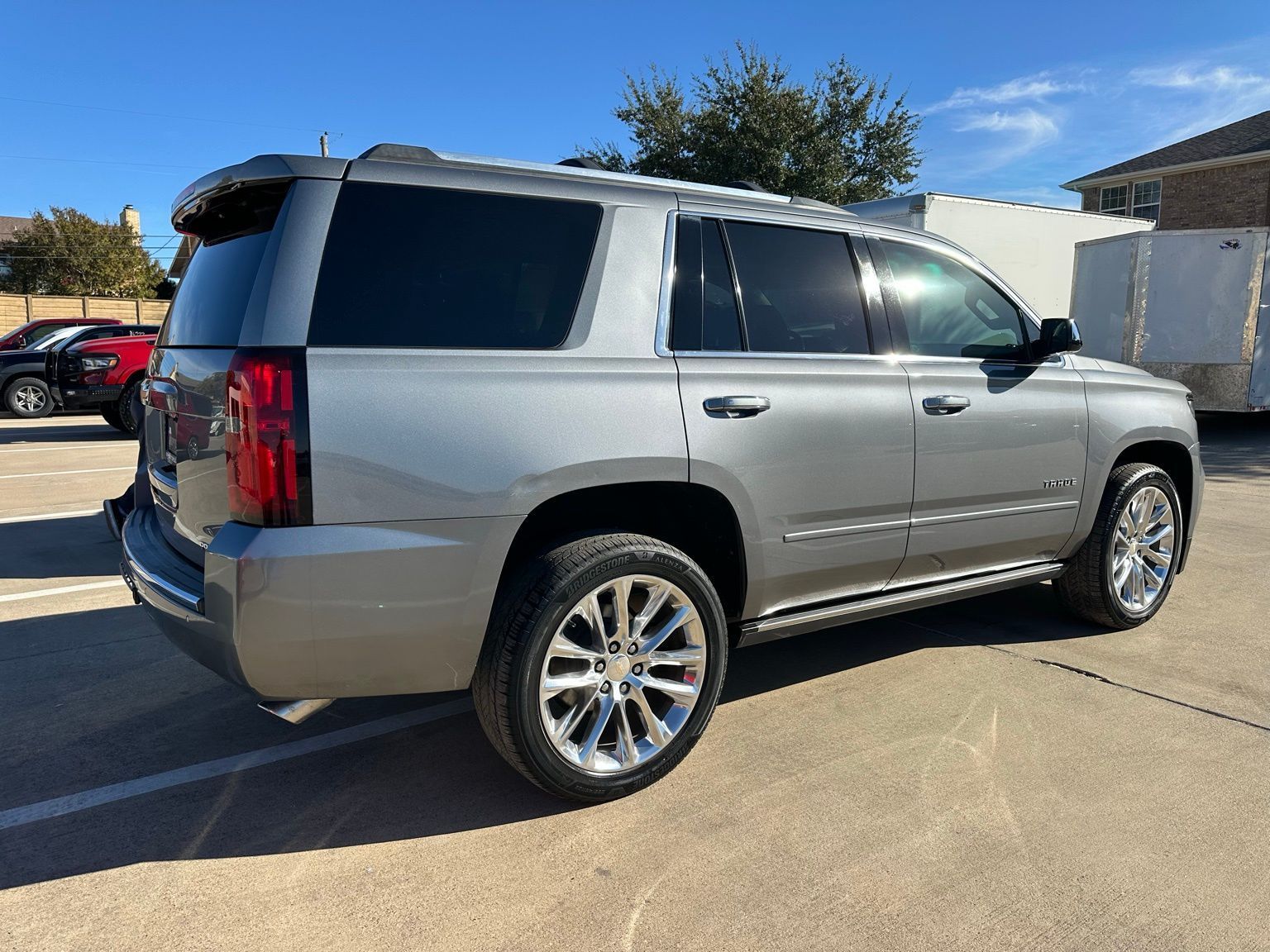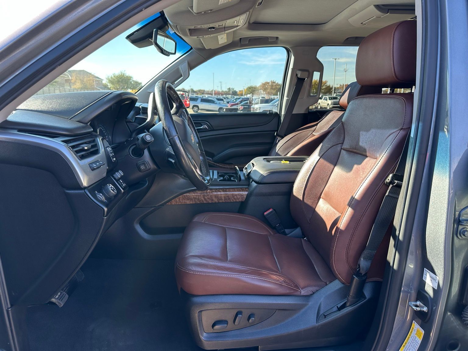 2019 Chevrolet Tahoe Premier 1LZ Sun, Entertainment & Destinations Package Power Sunroof, Rear Entertainment Rear Heated Bucket Seats, Magnetic Ride Control, 22" Wheels, Steel Metallic 4D Sport Utility RWD 10-Speed Automatic with Overdrive EcoTec3 6.2L V8 Jet Black / Mahogany Leather, 10 Speakers, 170 Amp Alternator, 1st & 2nd Row Color-Keyed Carpeted Floor Mats, 22" 6-Spoke Split Chrome (LPO) Wheels, 3.23 Rear Axle Ratio, 3rd Row 60/40 Power Fold Split-Bench, 3rd row seats: split-bench, 4-Wheel Antilock Disc Brakes w/Brake Assist, 4-Wheel Disc Brakes, 5 12-Volt Auxiliary Power Outlets, ABS brakes, Adaptive suspension, Adjustable pedals, Air Conditioning, Alloy wheels, AM/FM radio: SiriusXM, Apple CarPlay/Android Auto, Auto High-beam Headlights, Auto-dimming door mirrors, Auto-Dimming Inside Rear-View Mirror, Auto-dimming Rear-View mirror, Automatic temperature control, Black Assist Steps w/Chrome Accent Strip, Black Roof Rack Cross Rails, Bluetooth® For Phone, Bodyside moldings, Bose Centerpoint Premium 10-Speaker Surround Sound, Brake assist, Bumpers: body-color, Cargo Net, CD player, Collapsible Cargo Area Organizer (LPO), Color-Keyed Carpeting Floor Covering, Compass, Delay-off headlights, Driver door bin, Driver Inboard & Front Passenger Airbags, Driver vanity mirror, Dual front impact airbags, Dual front side impact airbags, Electronic Cruise Control w/Set & Resume Speed, Electronic Stability Control, Emergency communication system: OnStar and Chevrolet connected services capable, Enhanced Driver Alert Package (Y86), Enhanced Driver Information Center, Exterior Parking Camera Rear, Floor Console, Fog Lamps, Forward Collision Alert, Front & Rear Park Assist, Front anti-roll bar, Front Bucket Seats, Front Center Armrest, Front dual zone A/C, Front fog lights, Front Heated Reclining Bucket Seats, Front Passenger 6-Way Power Seat Adjuster, Front reading lights, Front wheel independent suspension, Fully automatic headlights, Garage door transmitter, Hands Free Power Liftgate, HD Radio, Head-Up Display, Heated & Ventilated Driver & Front Passenger Seats, Heated 2nd Row Seats, Heated door mirrors, Heated front seats, Heated Leather Wrapped Steering Wheel, Heated rear seats, Heated steering wheel, High-Intensity Discharge Headlights, Illuminated entry, Integrated Trailer Brake Controller, IntelliBeam Headlamps, Lane Change Alert w/Side Blind Zone Alert, Lane Keep Assist w/Lane Departure Warning, License Plate Front Mounting Package, Low Speed Forward Automatic Braking, Low tire pressure warning, Magnetic Ride Control Suspension Package, Memory seat, Memory Settings, Navigation System, Occupant sensing airbag, Outside temperature display, Overhead airbag, Overhead console, Panic alarm, Passenger door bin, Passenger vanity mirror, Passive Entry System, Pedal memory, Perforated Leather-Appointed Seat Trim, Polished Exhaust Tip, Power door mirrors, Power driver seat, Power Liftgate, Power passenger seat, Power Release 2nd Row Bucket Seats, Power steering, Power Sunroof, Power Tilt & Telescopic Steering Column, Power windows, Power-Adjustable Accelerator & Brake Pedals, Power-Folding Heated Outside Mirrors, Power-Retractable Assist Steps, Preferred Equipment Group 1LZ, Premier Plus Edition, Premium audio system: Chevrolet MyLink, Push Button Keyless Start, Radio: Chevrolet Infotainment AM/FM Stereo w/Nav, Rain sensing wipers, Rear air conditioning, Rear anti-roll bar, Rear Cross Traffic Alert, Rear reading lights, Rear Seat Blu-Ray/DVD Entertainment System, Rear window defroster, Rear window wiper, Remote Keyless Entry, Remote keyless entry, Remote Vehicle Start, Roof rack: rails only, Roof-Mounted Luggage Rack Side Rails, Security system, Set of 4 Wheel Locks (LPO), Single-Slot CD/MP3 Player, SiriusXM NavTraffic, SiriusXM Radio, Speed control, Speed-sensing steering, Split folding rear seat, Spoiler, Steering wheel memory, Steering wheel mounted audio controls, Telescoping steering wheel,