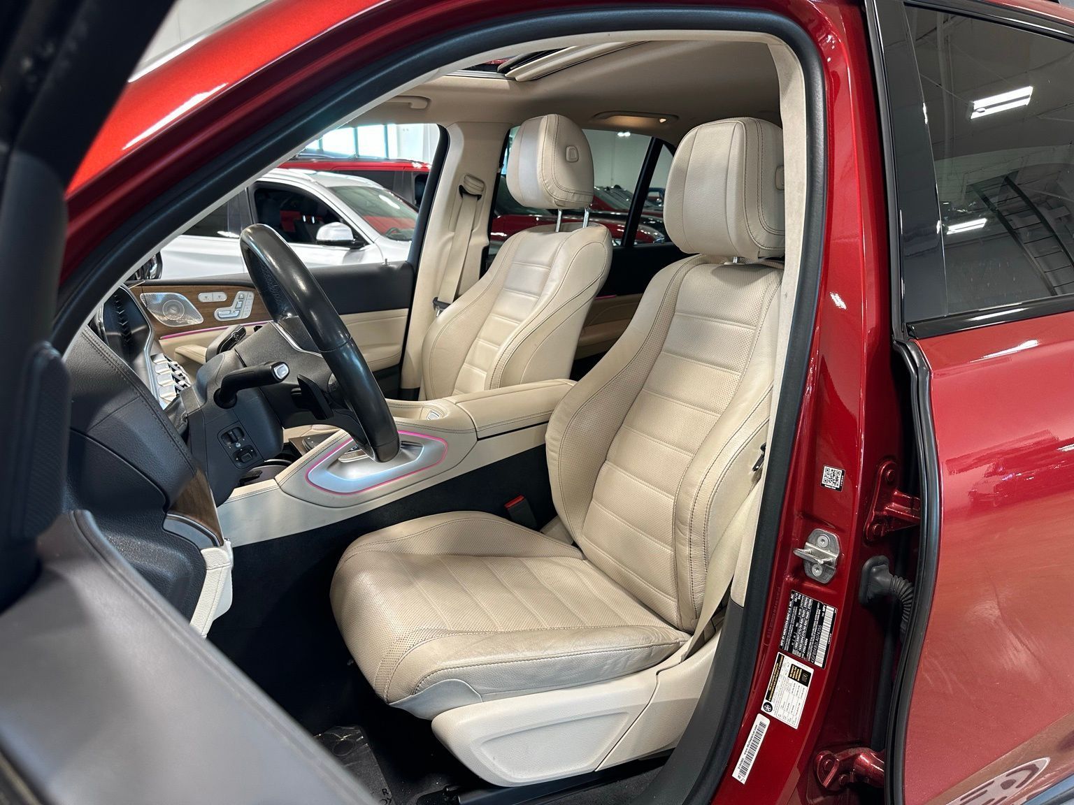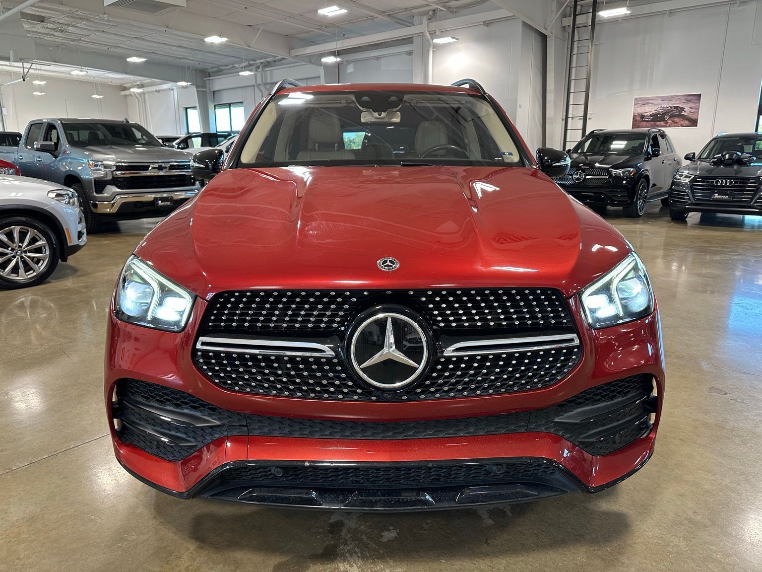 2020 Mercedes-Benz GLE 450 4MATIC® designo Cardinal Red Metallic/Macchiato/Magma Grey Leather, AMG Line Exterior Package, Night Package, Driver Assistance Package Plus, Disctronic, Parking Assistance Package, Exterior Lighting Package, Acoustic Comfort Package, Premium Package, 64-color Ambient Lighting Package, designo Cardinal Red Metallic 4D Sport Utility 4MATIC® 9-Speed Automatic 3.0L I6 Turbo 115V Power Outlet, 4-Way Lumbar Support, 4-Wheel Disc Brakes, 4-Zone Automatic Climate Control, 8 Speakers, ABS brakes, Acoustic Comfort Package, Active Blind Spot Assist, Active Brake Assist w/Cross-Traffic Function, Active Distance Assist DISTRONIC®, Active Emergency Stop Assist, Active Lane Change Assist, Active Lane Keeping Assist, Active Speed Limit Assist, Active Steering Assist, Active Stop & Go Assist, Aerial for GPS, Air Conditioning, AM/FM radio, AMG® Floor Mats, AMG® Line Exterior (P31), AMG® Line Interior, AMG® Line Interior (P29), Android Auto®, Anti-whiplash front head restraints, Apple CarPlay®, Apple CarPlay®/Android Auto®, Auto tilt-away steering wheel, Auto-dimming Rear-View mirror, Automatic temperature control, Axle Ratio: 3.27, Brake assist, Compass, Delay-off headlights, Driver Assistance Package Plus, Driver door bin, Driver vanity mirror, Driving Assistance Plus, Dual front impact airbags, Dual front side impact airbags, DVD-Audio, eCall Emergency System, Electronic Stability Control, Emergency communication system: eCall Emergency System, Evasive Steering Assist, Exterior Parking Camera Rear, Four wheel independent suspension, Front anti-roll bar, Front Bucket Seats, Front Center Armrest, Front dual zone A/C, Front reading lights, Fully automatic headlights, Garage door transmitter: Homelink, Genuine wood console insert, Genuine wood dashboard insert, Genuine wood door panel insert, HD Radio, Heated & Cooled Front Cupholders, Heated Front Bucket Seats, Heated front seats, Heated Power Front Seats w/Driver Memory, Heated Steering Wheel, Illuminated entry, Infrared-Reflecting Glass, Interior Ambient Lighting w/Illuminated Door Sills, Knee airbag, Leather Seat Trim, Leather steering wheel, Live Traffic, Load Sill Protection, Low tire pressure warning, MB Navigation, MB-Tex Leatherette Seat Trim, MBUX Voice Control, Memory seat, Multifunction Sport Steering Wheel, Navigation Services, Navigation system: MBUX, Navigation Updates for 3 Years, Occupant sensing airbag, Outside temperature display, Overhead airbag, Panic alarm, Parking Assist Package, Parking Package, Passenger door bin, Passenger vanity mirror, Power adjustable front head restraints, Power driver seat, Power Liftgate, Power moonroof, Power passenger seat, Power steering, Power windows, PRE-SAFE® Impulse Side, PRE-SAFE® PLUS Rear Collision Protection, Pre-Wiring for Rear Seat Entertainment & Comfort, Premium audio system: MBUX, Premium Package, Radio data system, Radio: MBUX Multimedia System, Rain sensing wipers, Rear anti-roll bar, Rear fog lights, Rear reading lights, Rear seat center armrest, Rear window defroster, Rear window wiper, Remote keyless entry, Route-Based Speed Adaptation, Security system, SiriusXM radio, Smartphone Integration, Speed-sensing steering, Speed-Sensitive Wipers, Split folding rear seat, Steering wheel memory, Steering wheel mounted audio controls, Surround View System, Tachometer, Telescoping steering wheel, Tilt steering wheel, Touchpad, Traction control, Traffic Sign Assist, Trip computer, Ventilated Front Seats, Weather band radio, Wheels: 20" AMG® 5-Spoke w/Black Accents, Wide Screen Media Display, Wireless Charging.Recent Arrival!