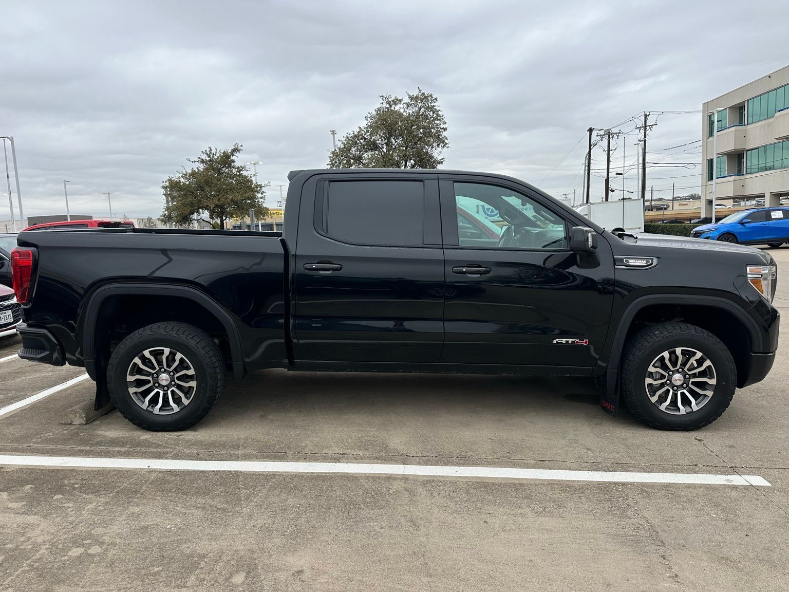 2021 GMC Sierra 1500 AT4 Onyx Black 4D Crew Cab 4WD 10-Speed Automatic 3.0L I6 10-Speed Automatic, 4WD, Jet Black With Kalahari Accents Leather, 10-Way Power Driver Seat Adjuster w/Lumbar, 10-Way Power Passenger Seat Adjuster w/Lumbar, 12-Volt Rear Auxiliary Power Outlet, 120-Volt Bed Mounted Power Outlet, 120-Volt Instrument Panel Power Outlet, 170 Amp Alternator, 18" x 8.5" Machined Aluminum Wheels, 2 USB Ports, 2 USB Ports (1st Row), 220 Amp Alternator, 3.23 Rear Axle Ratio, 4-Wheel Disc Brakes, 4.2" Diagonal Color Display Driver Info Center, 4G LTE Wi-Fi Hotspot Capable, 6 Speakers, 6-Speaker Audio System Feature, ABS brakes, Air Conditioning, Alloy wheels, AM/FM radio: SiriusXM with 360L, Apple CarPlay/Android Auto, AT4 Preferred Package, AT4 Value Package, Auto-dimming door mirrors, Auto-dimming Rear-View mirror, Auto-Locking Rear Differential, Automatic temperature control, Auxiliary External Transmission Oil Cooler, Body-Color Surround Grille, Brake assist, Bumpers: body-color, Color-Keyed Carpeting Floor Covering, Compass, Deep-Tinted Glass, Delay-off headlights, Driver Alert Package I, Driver door bin, Driver Memory, Driver vanity mirror, Dual front impact airbags, Dual front side impact airbags, Electric Rear-Window Defogger, Electrical Lock Control Steering Column, Electronic Stability Control, Engine Block Heater, Floor-Mounted Center Console, Front anti-roll bar, Front Bucket Seats, Front Center Armrest, Front dual zone A/C, Front fog lights, Front License Plate Kit, Front Prem Floor Liners w/Removable Carpet Insert, Front reading lights, Front wheel independent suspension, Fully automatic headlights, GMC Connected Access Capable, HD Rear Vision Camera, Heated 2nd Row Outboard Seats, Heated door mirrors, Heated Driver & Front Outboard Passenger Seating, Heated front seats, Heated steering wheel, Heavy-Duty Air Filter, Hill Descent Control, Hitch Guidance, Hitch Guidance w/Hitch View, Illuminated entry, In-Vehicle Trailering App, Integrated Trailer Brake Controller, Keyless Open & Start, Lane Change Alert w/Side Blind Zone Alert, LED Cargo Area Lighting, Low tire pressure warning, Manual Tilt-Wheel & Telescoping Steering Column, Memory seat, Occupant sensing airbag, Off-Road Suspension, OnStar & GMC Connected Services Capable, Outside temperature display, Overhead airbag, Overhead console, Panic alarm, Passenger door bin, Passenger vanity mirror, Perforated Leather-Appointed Front Seat Trim, Perimeter Lighting, Power Door Locks, Power door mirrors, Power driver seat, Power Front Passenger Windows w/Express Up/Down, Power Front Windows w/Driver Express Up/Down, Power passenger seat, Power Rear Windows w/Express Down, Power Sliding Rear Window w/Rear Defogger, Power steering, Power windows, Preferred Equipment Group 4SB, Premium audio system: GMC Infotainment System, Premium Bose 7-Speaker Sound System, ProGrade Trailering System, Radio data system, Radio: Premium GMC Infotainment Sys w/Multi-Touch, Radio: Premium GMC Infotainment Sys w/Navigation, Rear Cross Traffic Alert, Rear Dual USB Charging-Only Ports, Rear Prem Floor Liners w/Removable Carpet Insert, Rear reading lights, Rear seat center armrest, Rear step bumper, Rear Wheelhouse Liners, Rear window defroster, Red Recovery Hooks, Remote keyless entry, Remote Vehicle Starter System, Security system, SiriusXM w/360L, Speed control, Speed-sensing steering, Split folding rear seat, Spray-On Pickup Bed Liner w/AT4 Logo, Steering Wheel Audio Controls, Steering wheel mounted audio controls, Tachometer, Telescoping steering wheel, Theft Deterrent System (Unauthorized Entry), Tilt steering wheel, Traction control, Trailering Package, Trip computer, Ultrasonic Front & Rear Park Assist, Universal Home Remote, Variably intermittent wipers, Ventilated Driver & Front Passenger Seats, Ventilated front seats, Voltmeter, Wireless Charging.Odometer is 4614 miles below market average! 22/26 City/Highway MPG