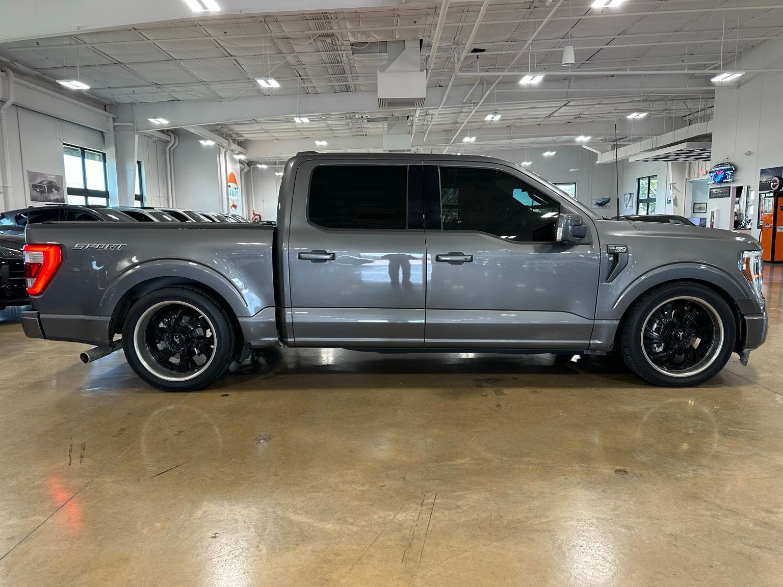 2022 Ford F-150 Lariat Supercrew, Lariat Sport Appearance Package, Twin Panel Sunroof, Tow Technology Package, Lowering Package w/ Custom Wheels, Carbonized Gray Metallic 4D SuperCrew RWD 10-Speed Automatic 2.7L V6 EcoBoost 18" Machined-Aluminum Wheels, 2nd Row Heated Seats, 3.55 Axle Ratio, 360 Degree Camera, 4-Wheel Disc Brakes, 6" Bright Polished Running Board, 7 Speakers, ABS brakes, Accent-Color Angular Step Bars, Adjustable pedals, Air Conditioning, Alloy wheels, AM/FM radio: SiriusXM with 360L, Auto High-beam Headlights, Auto-dimming door mirrors, Auto-dimming Rear-View mirror, Automatic temperature control, Body-Color Front & Rear Bumpers, Box Side Decals, Brake assist, Bumpers: chrome, Chrome 2-Bar Grille w/4 Minor Bars, Chrome Door & Tailgate Handles w/Body-Color Bezel, Chrome Single-Tip Exhaust, Chrome Skull Caps on Exterior Mirrors, Class IV Trailer Hitch Receiver, Compass, Connected Built-In Navigation, Dark 2-Bar & 1 Minor Bar Style Grille, Delay-off headlights, Driver door bin, Driver vanity mirror, Dual front impact airbags, Dual front side impact airbags, Electronic Stability Control, Emergency communication system: SYNC 4 911 Assist, Equipment Group 502A High, Evasive Steering Assist, Extended Range 36 Gallon Fuel Tank, Exterior Parking Camera Rear, Ford Co-Pilot360 Assist 2.0 (DISC), Front anti-roll bar, Front Center Armrest w/Storage, Front dual zone A/C, Front fog lights, Front reading lights, Front wheel independent suspension, Fully automatic headlights, Heated door mirrors, Heated front seats, Heated Steering Wheel, Illuminated entry, Integrated Trailer Brake Controller, Intelligent Adaptive Cruise Control w/Stop & Go, Interior Work Surface, Intersection Assist, Lariat Chrome Appearance Package, Lariat Sport Appearance Package, Leather-Trimmed 40/20/40 Front Seat, Leather-Trimmed Bucket Seats, LED Projector w/Dynamic Bending Headlamps, LED Sideview Mirror Spotlights, Low tire pressure warning, Memory seat, Navigation System, Occupant sensing airbag, Onboard 400W Outlet, Outside temperature display, Overhead airbag, Overhead console, Panic alarm, Passenger door bin, Passenger vanity mirror, Pedal memory, Power door mirrors, Power driver seat, Power Glass Sideview Mirr w/Chrome Skull Caps, Power passenger seat, Power steering, Power Tilt/Telescoping Steering Column w/Memory, Power windows, Pro Trailer Backup Assist, Radio data system, Radio: AM/FM SiriusXM w/360L, Radio: B&O Sound System by Bang & Olufsen, Radio: B&O Unleashed Sound System by Bang & Olufsen, Rain-Sensing Wipers, Rear reading lights, Rear seat center armrest, Rear step bumper, Rear window defroster, Remote keyless entry, Security system, Speed control, Speed Sign Recognition, Speed-sensing steering, Split folding rear seat, Steering wheel mounted audio controls, SYNC 4 w/Enhanced Voice Recognition, Tachometer, Telescoping steering wheel, Tilt steering wheel, Tow Technology Package, Traction control, Trip computer, Turn signal indicator mirrors, Twin Panel Moonroof, Universal Garage Door Opener, Variably intermittent wipers, Ventilated front seats, Voltmeter, Wheels: 20" 6-Spoke Dark Alloy Painted Aluminum, Wireless Charging Pad.Recent Arrival! 20/26 City/Highway MPG