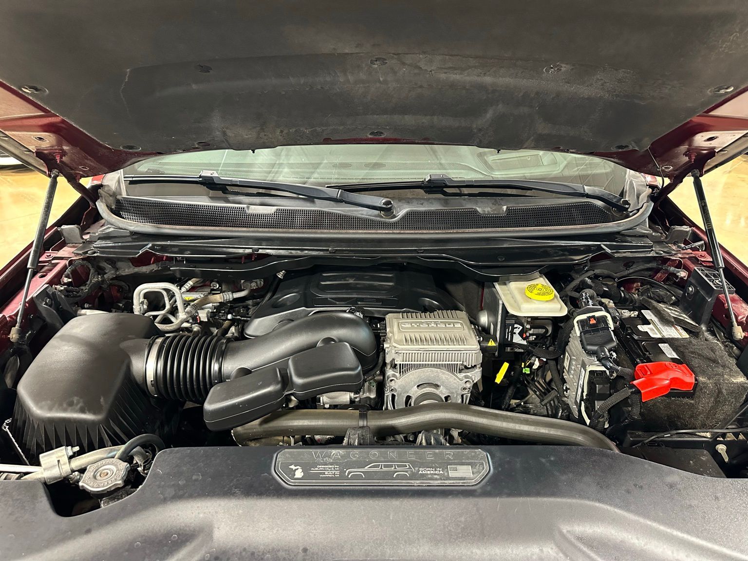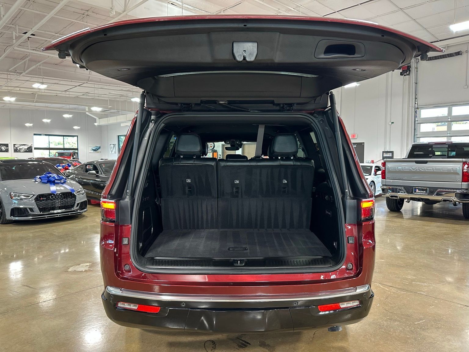 2022 Jeep Wagoneer Series III 5.7 HEMI V8, 20" Black Noise Wheels, Tow Package, Velvet Red Pearlcoat 4D Sport Utility RWD 8-Speed Automatic 5.7L V8 10 Speakers, 3.21 Rear Axle Ratio, 3rd row seats: bench, 4-Wheel Disc Brakes, ABS brakes, Adjustable pedals, Air Conditioning, Alloy wheels, AM/FM radio: SiriusXM with 360L, Anti-whiplash front head restraints, Audio memory, Auto High-beam Headlights, Auto-dimming door mirrors, Auto-dimming Rear-View mirror, Auto-leveling suspension, Automatic temperature control, Brake assist, Bumpers: body-color, Compass, Delay-off headlights, Driver door bin, Driver vanity mirror, Driver's Seat Mounted Armrest, Dual front impact airbags, Dual front side impact airbags, Electronic Stability Control, Exterior Parking Camera Rear, Four wheel independent suspension, Front anti-roll bar, Front Bucket Seats, Front Center Armrest w/Storage, Front dual zone A/C, Front fog lights, Front reading lights, Fully automatic headlights, Garage door transmitter, Genuine wood console insert, Genuine wood dashboard insert, Genuine wood door panel insert, Heads-Up Display, Heated door mirrors, Heated front seats, Heated rear seats, Heated steering wheel, Illuminated entry, Knee airbag, Leather Trimmed Bucket Seats, Low tire pressure warning, Memory seat, Navigation System, Normal Duty Suspension, Occupant sensing airbag, Outside temperature display, Overhead airbag, Overhead console, Panic alarm, Passenger door bin, Passenger seat mounted armrest, Passenger vanity mirror, Pedal memory, Power adjustable front head restraints, Power driver seat, Power Liftgate, Power passenger seat, Power steering, Power windows, Quick Order Package 22N, Radio data system, Radio: Uconnect 5 Nav w/10.1" Display, Rain sensing wipers, Rear air conditioning, Rear anti-roll bar, Rear dual zone A/C, Rear reading lights, Rear seat center armrest, Rear window defroster, Rear window wiper, Reclining 3rd row seat, Remote keyless entry, Security system, Speed control, Speed-sensing steering, Speed-Sensitive Wipers, Split folding rear seat, Steering wheel memory, Steering wheel mounted audio controls, Tachometer, Telescoping steering wheel, Tilt steering wheel, Traction control, Trip computer, Variably intermittent wipers, Ventilated front seats, Voltmeter, Wheels: 20" x 9.0" Premium 2 Aluminum.Recent Arrival! Odometer is 3024 miles below market average!