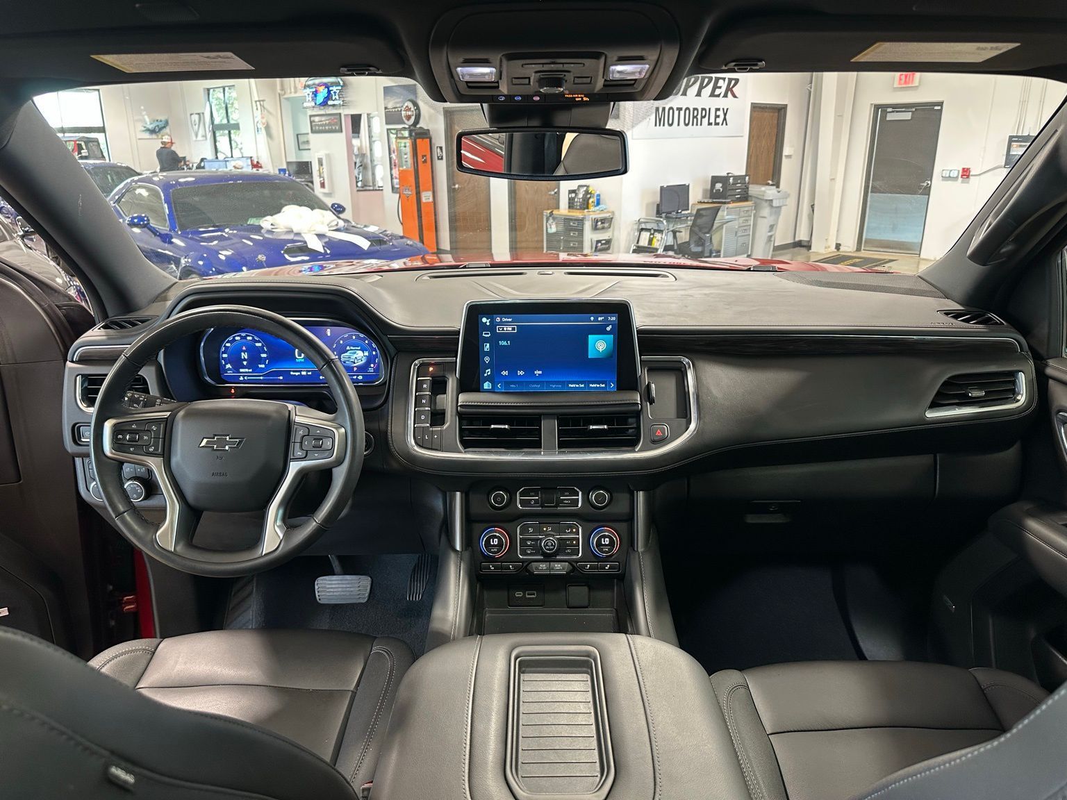 2023 Chevrolet Tahoe Z71 Luxury Package, Panoramic Power Sunroof, Rear Entertainment Dual 12.6" LCDs, Radiant Red Tintcoat 4D Sport Utility 4WD 10-Speed Automatic with Overdrive EcoTec3 5.3L V8 4WD, Black Leather, 10-Way Power Driver & Passenger Seat Adjusters, 1st & 2nd Row Color-Keyed Carpeted Floor Mats, 1st, 2nd & 3rd Rows All-Weather Floor Liners (LPO), 2-Speed Active Electronic AutoTrac Transfer Case, 2nd Row Pwr Release 60/40 Split-Folding Bench Seat, 3.23 Rear Axle Ratio, 3rd Row 60/40 Power-Folding Split-Bench Seat, 3rd row seats: split-bench, 4-Wheel Disc Brakes, 9 Speakers, ABS brakes, Air Conditioning, Alloy wheels, AM/FM radio: SiriusXM with 360L, Apple CarPlay/Android Auto, Auto High-beam Headlights, Auto-Dimming Inside Rear-View Mirror, Auto-dimming Rear-View mirror, Automatic temperature control, Black Exhaust Tip (LPO), Black Tubular Assist Steps, Bose 9-Speaker Stereo Audio System Feature, Brake assist, Bright Front & Rear Door Sill Plates, Bumpers: body-color, Color-Keyed Carpeting Floor Covering, Compass, Delay-off headlights, Driver & Front Outboard Passenger Airbags, Driver Alert Package, Driver door bin, Driver vanity mirror, Dual front impact airbags, Dual front side impact airbags, Dual-Pane Power Panoramic Sunroof, Electronic Stability Control, Emergency communication system: OnStar and Chevrolet connected services capable, Enhanced Driver Information Center, Floor Console, Floor Console w/Storage Area, Four wheel independent suspension, Front anti-roll bar, Front Bucket Seats, Front Center Armrest, Front dual zone A/C, Front High-Approach Angle Fascia, Front High-Back Reclining Bucket Seats, Front reading lights, Fully automatic headlights, Garage door transmitter, Hands-Free Rear Power Programmable Liftgate, HD Surround Vision, Heated 2nd Row Outboard Seats, Heated door mirrors, Heated Driver & Front Passenger Seats, Heated front seats, Heated Steering Wheel, Highway Safety Kit, Hill Descent Control, Illuminated entry, Infotainment Display, Lane Change Alert w/Side Blind Zone Alert, Leather-Appointed Seat Trim, LED Daytime Running Lamps, License Plate Front Mounting Package, Luxury Package, Memory seat, Memory Settings, Memory Settings for Driver, Navigation System, Occupant sensing airbag, Outside Heated Power-Adjustable Mirrors, Outside temperature display, Overhead airbag, Overhead console, Panic alarm, Passenger door bin, Passenger vanity mirror, Power door mirrors, Power driver seat, Power Liftgate, Power passenger seat, Power Release 2nd Row Bucket Seats, Power steering, Power Tilt & Telescopic Steering Column, Power windows, Preferred Equipment Group 2Z7, Premium audio system: Chevrolet Infotainment 3 Premium, Premium Smooth Ride Suspension, Radio: Chevrolet Infotainment 3 Premium System, Rain sensing wipers, Rear air conditioning, Rear anti-roll bar, Rear Cross Traffic Alert, Rear Pedestrian Alert, Rear reading lights, Rear seat center armrest, Rear Seat Media System, Rear window defroster, Rear window wiper, Red Horizontal-Mounted Recovery Hooks, Remote keyless entry, Remote Start, Roof rack: rails only, Security system, SiriusXM Radio w/360L, Speed control, Speed-sensing steering, Split folding rear seat, Spoiler, Steering wheel mounted audio controls, Tachometer, Telescoping steering wheel, Tilt steering wheel, Traction control, Trip computer, Universal Home Remote, Variably intermittent wipers, Vertical Cargo Net (LPO), Voltmeter, Wheels: 20" x 9" Machined Aluminum, Wireless Charging, Wrapped Steering Wheel.Recent Arrival! Odometer is 8255 miles below market average!
