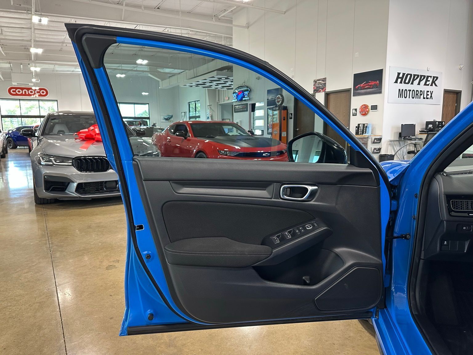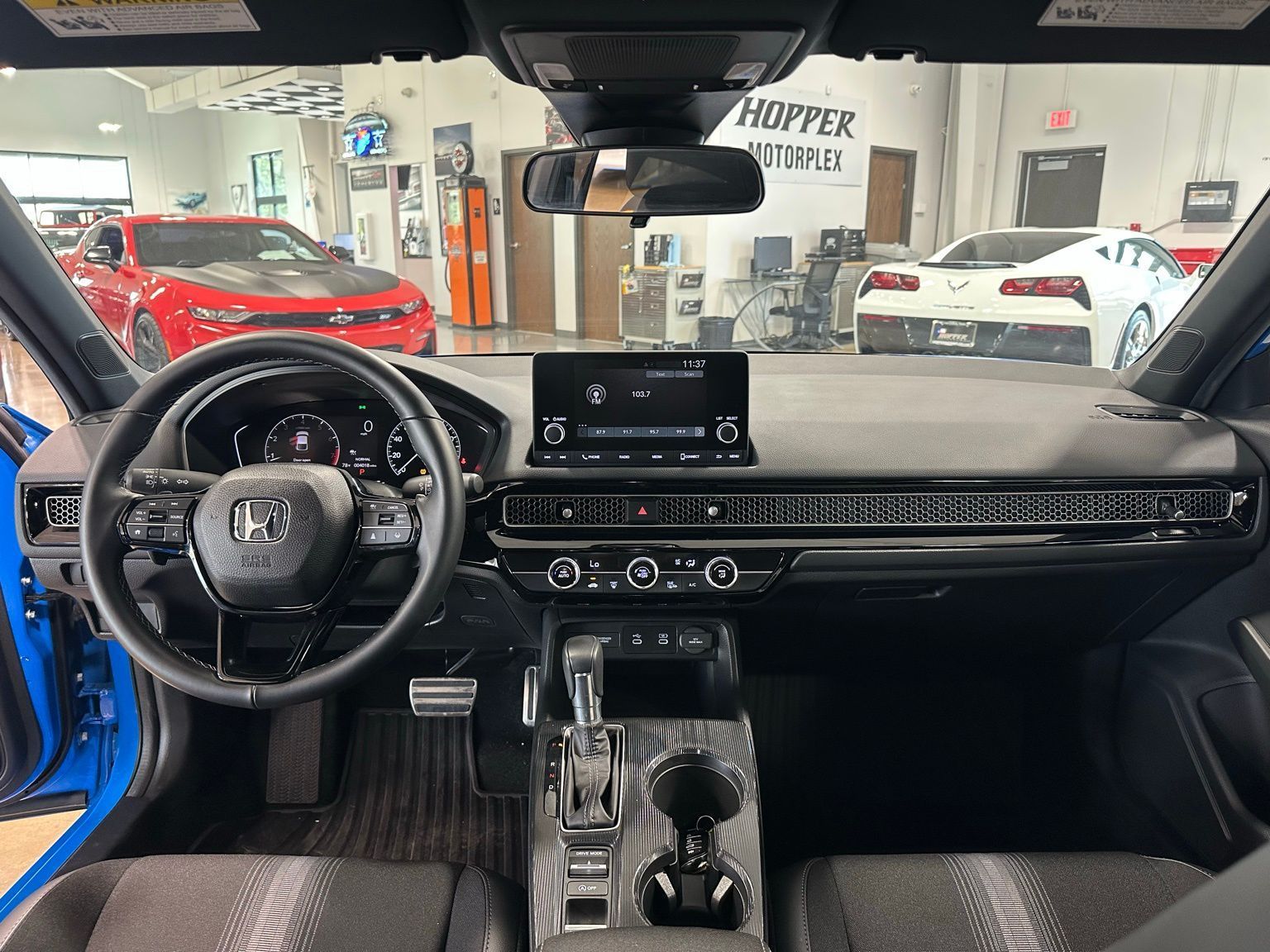 2025 Honda Civic Sport, Lane Departure Package, Boost Blue Pearl 4D Hatchback FWD CVT 2.0L I4 DOHC 16V Black w/Cloth Seating Surfaces, 4-Wheel Disc Brakes, 8 Speakers, ABS brakes, Adaptive Cruise Control: Adaptive Cruise Control (ACC) with Low-Speed Follow, Air Conditioning, Alloy wheels, AM/FM radio, Apple CarPlay/Android Auto, Auto High-beam Headlights, Automatic temperature control, Blind Spot Information (BSI) System warning, Brake assist, Bumpers: body-color, Cloth/Leatherette Seating Surfaces, Delay-off headlights, Driver door bin, Driver vanity mirror, Dual front impact airbags, Dual front side impact airbags, Electronic Stability Control, Emergency communication system: HondaLink, Exterior Parking Camera Rear, Four wheel independent suspension, Front anti-roll bar, Front Bucket Seats, Front Center Armrest, Front reading lights, Fully automatic headlights, Heated door mirrors, Illuminated entry, Knee airbag, Lane departure: Lane Keeping Assist System (LKAS) active, Leather Shift Knob, Low tire pressure warning, Occupant sensing airbag, Outside temperature display, Overhead airbag, Panic alarm, Passenger door bin, Passenger vanity mirror, Power door mirrors, Power steering, Power windows, Radio data system, Radio: 180-Watt Audio System, Rear anti-roll bar, Rear side impact airbag, Rear window defroster, Rear window wiper, Remote keyless entry, Security system, Speed control, Speed-sensing steering, Split folding rear seat, Steering wheel mounted audio controls, Tachometer, Telescoping steering wheel, Tilt steering wheel, Traction control, Trip computer, Wheels: 18" Gloss Black Alloy.Recent Arrival! Odometer is 5176 miles below market average! 30/38 City/Highway MPG