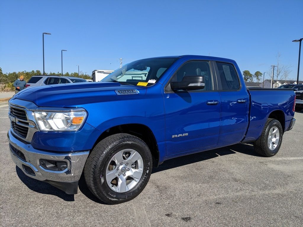 *The Jimmy Britt Premium Delivery Program lets you buy this vehicle right from the comfort of your couch. We frequently deliver vehicles nationwide, and even arrange test drives at home, if you are nearby. We will send you a personal video on any preowned vehicle you are interested in. Call, email, or text us for details.* (Plus, you get our low-price guarantee and 2 free oil changes!) Recent Arrival! Priced below KBB Fair Purchase Price!Extended Warranty Available, Bluetooth / Hands-free, Apple Car Play / Android Auto Compatible, Back-Up Camera w/ Guidelines, Cruise Control, Heated Seats, Portable Audio Connection, Power Locks, Power Windows, Premium Wheels, Security System, Multi-function Steering Wheel, 4x4/4WD, Remote Start, Level 2 Equipment Group, Apple Carplay, Android Auto, iphone / Droid Navigation Compatible, DROP IN BEDLINER, BED COVER, 1500 Big Horn/Lone Star, 4D Quad Cab, HEMI 5.7L V8 Multi Displacement VVT, 4WD, Blue Streak Pearlcoat, Black w/Deluxe Cloth Bucket Seats or Deluxe Cloth Bucket Seats, 115V Auxiliary Power Outlet, 115V Auxiliary Rear Power Outlet, 2 USB Full Function/Charge Only Media Hub, 26 Gallon Fuel Tank, 3.21 Rear Axle Ratio, 400W Inverter, 8.4" Touchscreen Display, Air Conditioning ATC w/Dual Zone Control, Auto-Dimming Rear-View Mirror, Big Horn IP Badge, Big Horn Level 2 Equipment Group, Class IV Receiver Hitch, Cluster 7.0" TFT Color Display, Dampened Tailgate, Foam Bottle Insert (Door Trim Panel), Glove Box Lamp, Heated Front Seats, Heated Steering Wheel, Integrated Center Stack Radio, Low tire pressure warning, ParkSense Front/Rear Park Assist w/Stop, ParkView Rear Back-Up Camera, Power 4-Way Driver Lumbar Adjust, Power 8-Way Driver Seat, Power Adjustable Pedals, Power Heated Fold Away Mirrors, Quick Order Package 25Z Big Horn/Lone Star, Radio: Uconnect 3 w/5" Display, Radio: Uconnect 4 w/8.4" Display, Rear anti-roll bar, Rear Dome w/On/Off Switch Lamp, Rear Power Sliding Window, Rear Window Defroster, Remote keyless entry, Remote Start System, Security Alarm, Single Disc Remote CD Player, SiriusXM Satellite Radio, Steering Wheel Mounted Audio Controls, Sun Visors w/Illuminated Vanity Mirrors, Universal Garage Door Opener, Wheels: 18" x 8".Blue Streak Pearlcoat 2019 Ram 1500 Big Horn/Lone Star HEMI 5.7L V8 Multi Displacement VVT 4WDAwards: * Motor Trend Automobiles of the year * NACTOY 2019 North American Truck of the Year * 2019 KBB.com Best Auto Tech Awards * 2019 KBB.com 10 Best Road Trip Cars * 2019 KBB.com 10 Favorite New-for-2019 Cars The Jimmy Britt Automotive Family has received multiple Dealer of the Year awards in the state of Georgia. We've also been awarded the Customer Satisfaction Award through DealerRater! Price does not include State/County/Local Tax, Tag, GA Lemon Law or Registration fees. Dealer administrative fee is included in the price. We offer electronic tag and title as an option for an additional fee (this fee is based on what your state/county charge to participate as well as a fee to the company we select to process). A fee may be charged to customers wishing to have the vehicle delivered. New Vehicles - Must finance with Chrysler Digital to receive all rebates and incentives. Not all will qualify for Chrysler financing. See Dealer for details. Preowned Vehicles - All preowned inventory is “As Is” unless Chrysler Certified or otherwise stated in writing. While we make every effort to ensure the data listed here is correct, there may be instances where some of the factory rebates, incentives, options, or vehicle features may be listed incorrectly as we get data from multiple data sources.