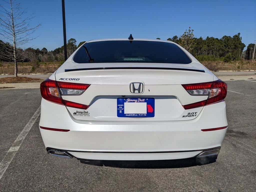 *The Jimmy Britt Premium Delivery Program lets you buy this vehicle right from the comfort of your couch. We frequently deliver vehicles nationwide, and even arrange test drives at home, if you are nearby. We will send you a personal video on any preowned vehicle you are interested in. Call, email, or text us for details.* (Plus, you get our low-price guarantee and 2 free oil changes!) Recent Arrival!One Owner, Extended Warranty Available, Bluetooth / Hands-free, Apple Car Play / Android Auto Compatible, Back-Up Camera w/ Guidelines, Cruise Control, Heated Seats, Leather Seats, Multi-Zone Climate Control, Portable Audio Connection, Power Locks, Power Windows, Premium Wheels, Security System, Multi-function Steering Wheel, Sunroof / Moonroof, Remote Start, Apple Carplay, Android Auto, *Premium Delivery Service Available*, iphone / Droid Navigation Compatible, Accord Sport 2.0T, 4D Sedan, Platinum White Pearl, Black w/Fabric w/Synthetic Leather Seat Trim, Adaptive Cruise Control: Adaptive Cruise Control (ACC) with Low-Speed Follow, AM/FM radio: SiriusXM, Apple CarPlay/Android Auto, Automatic temperature control, Blind Spot Information (BSI) System warning, Emergency communication system: HondaLink, Exterior Parking Camera Rear, Fabric w/Synthetic Leather Seat Trim, Forward collision: Collision Mitigation Braking System (CMBS) + FCW mitigation, Front Bucket Seats, Front dual zone A/C, Heated Front Bucket Seats, Heated front seats, Lane Departure Warning System, Low tire pressure warning, Power driver seat, Power moonroof, Rear anti-roll bar, Remote keyless entry, Speed-Sensitive Wipers, Wheels: 19" Machine-Finished Alloy w/Black Inserts.Platinum White Pearl 2022 Honda Accord Sport 2.0T I4 DOHC 16V Turbocharged FWD 22/32 City/Highway MPGThe Jimmy Britt Automotive Family has received multiple Dealer of the Year awards in the state of Georgia. We've also been awarded the Customer Satisfaction Award through DealerRater! Price does not include State/County/Local Tax, Tag, GA Lemon Law or Registration fees. Dealer administrative fee is included in the price. We offer electronic tag and title as an option for an additional fee (this fee is based on what your state/county charge to participate as well as a fee to the company we select to process). A fee may be charged to customers wishing to have the vehicle delivered. New Vehicles - Must finance with Chrysler Digital to receive all rebates and incentives. Not all will qualify for Chrysler financing. See Dealer for details. Preowned Vehicles - All preowned inventory is “As Is” unless Chrysler Certified or otherwise stated in writing. While we make every effort to ensure the data listed here is correct, there may be instances where some of the factory rebates, incentives, options, or vehicle features may be listed incorrectly as we get data from multiple data sources.