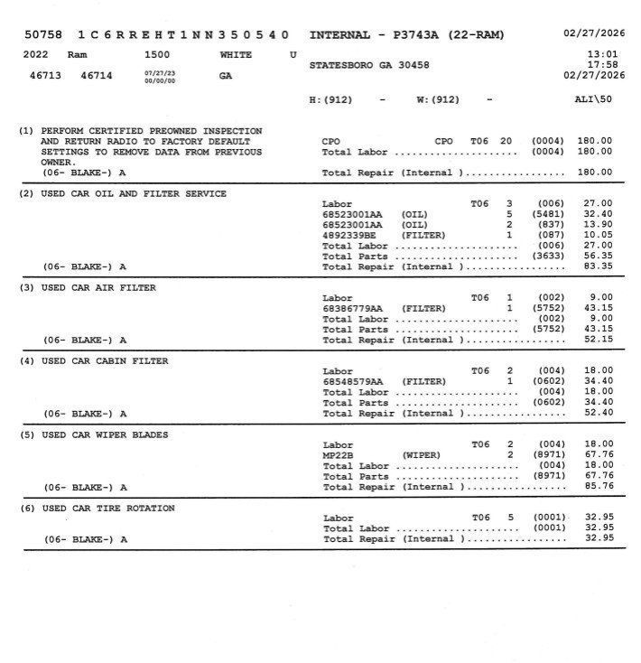*Certified inspections have been completed and this vehicle meets all requirements for certification and is available upon request. Chrysler Certified brings with it the peace of mind protection of a 3 month/3,000 mile comprehensive warranty, and a 7year/100000mile powertrain warranty. (Plus, you get our low-price guarantee and 2 free oil changes!) *The Jimmy Britt Premium Delivery Program lets you buy this vehicle right from the comfort of your couch. We frequently ship vehicles, and even arrange test drives at home, if you are nearby. We will send you a personal video on any vehicle you are interested in. Call, email, or text us for details. Certified. Priced below KBB Fair Purchase Price! Odometer is 12553 miles below market average!Clean Autocheck / No Accidents, Factory Certified Preowned, Extended Warranty Available, Bluetooth / Hands-free, Apple Car Play / Android Auto Compatible, Back-Up Camera w/ Guidelines, Cruise Control, Heated Seats, Leather Seats, Multi-Zone Climate Control, Navigation, Portable Audio Connection, Power Locks, Power Windows, Premium Audio, Premium Wheels, Security System, Multi-function Steering Wheel, Sunroof / Moonroof, Trailer Hitch, Remote Start, Apple Carplay, Android Auto, Cooled Seats, *Premium Delivery Service Available*, iphone / Droid Navigation Compatible, 1500 Limited, 4D Crew Cab, HEMI 5.7L V8 Multi Displacement VVT, 8-Speed Automatic, RWD, Ivory White Tri-Coat Pearlcoat, Black w/Leather/Vinyl Bucket Seats or Lux Leather Trimmed Bucket Seats, 10 Speakers, 3.21 Rear Axle Ratio, Apple CarPlay/Android Auto, Automatic temperature control, Body Color Bumper Group, Body Color Front Bumper, Body Color Rear Bumper w/Step Pads, Dome Dual LED Reading Lamp, Dual Rear Exhaust w/Bright Tips, Dual-Pane Panoramic Sunroof, Exterior Parking Camera Rear, Front dual zone A/C, Full Length Premium Floor Console, Heated front seats, Heated rear seats, Heated Second Row Seats, Heated Steering Wheel, LED Dome/Reading Lamp, Low tire pressure warning, Navigation System, Power driver seat, Power passenger seat, Premium Leather Trimmed Bucket Seats, Quick Order Package 27M Limited, Radio: Uconnect 5 Nav w/12.0" Display, Rain sensing wipers, Rear 60/40 Folding Split Recline Seat, Rear anti-roll bar, Remote keyless entry, Trailer Brake Control, Ventilated front seats, Wheels: 22" x 9" Polish/Painted w/Inserts.Ivory White Tri-Coat Pearlcoat 2022 Ram 1500 Limited HEMI 5.7L V8 Multi Displacement VVT RWDThe Jimmy Britt Automotive Family has received multiple Dealer of the Year awards in the state of Georgia. We've also been awarded the Customer Satisfaction Award through DealerRater! Price does not include State/County/Local Tax, Tag, GA Lemon Law or Registration fees. Dealer administrative fee is included in the price. We offer electronic tag and title as an option for an additional fee (this fee is based on what your state/county charge to participate as well as a fee to the company we select to process). A fee may be charged to customers wishing to have the vehicle delivered. New Vehicles - Must finance with Chrysler Digital to receive all rebates and incentives. Not all will qualify for Chrysler financing. See Dealer for details. Preowned Vehicles - All preowned inventory is “As Is” unless Chrysler Certified or otherwise stated in writing. While we make every effort to ensure the data listed here is correct, there may be instances where some of the factory rebates, incentives, options, or vehicle features may be listed incorrectly as we get data from multiple data sources.