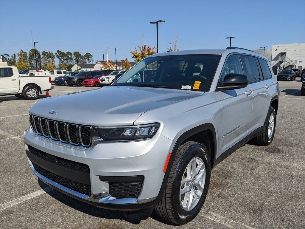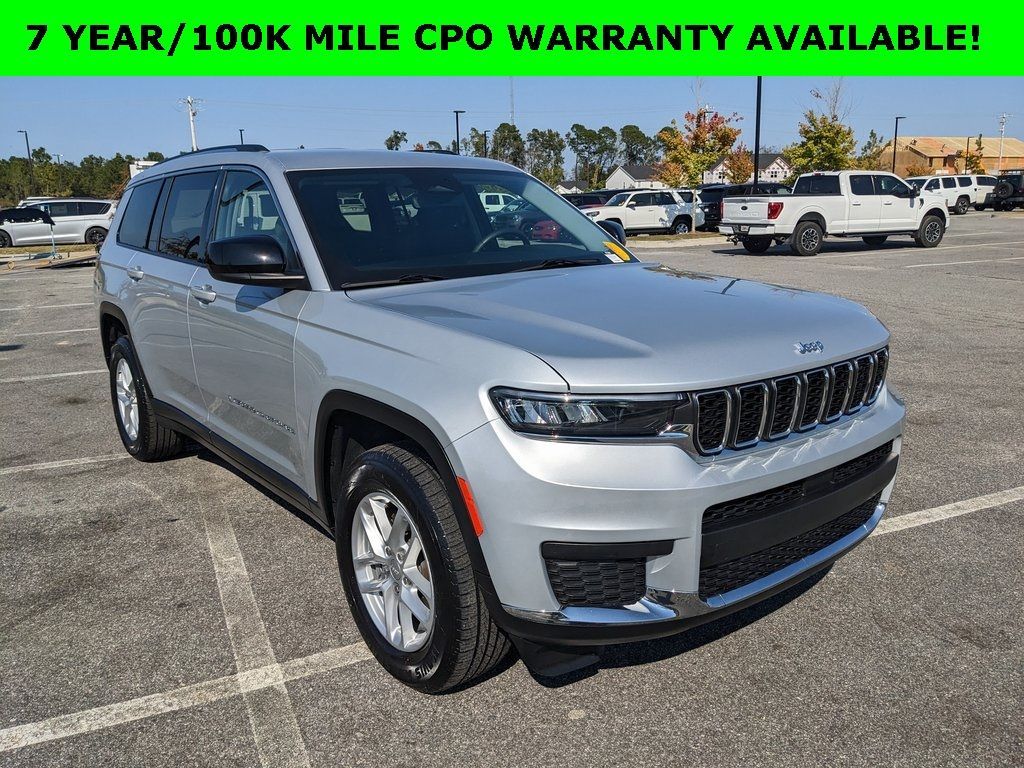 *Certified inspections have been completed and this vehicle meets all requirements for certification and is available upon request. Chrysler Certified brings with it the peace of mind protection of a 3 month/3,000 mile comprehensive warranty, and a 7year/100000mile powertrain warranty. (Plus, you get our low-price guarantee and 2 free oil changes!) *The Jimmy Britt Premium Delivery Program lets you buy this vehicle right from the comfort of your couch. We frequently ship vehicles, and even arrange test drives at home, if you are nearby. We will send you a personal video on any vehicle you are interested in. Call, email, or text us for details. Certified.One Owner, Clean Autocheck / No Accidents, Factory Certified Preowned, Extended Warranty Available, Bluetooth / Hands-free, Apple Car Play / Android Auto Compatible, 3rd Row Seats, Back-Up Camera w/ Guidelines, Cruise Control, Multi-Zone Climate Control, Portable Audio Connection, Premium Wheels, Multi-function Steering Wheel, Apple Carplay, Android Auto, *Premium Delivery Service Available*, iphone / Droid Navigation Compatible, Grand Cherokee L Laredo, 4D Sport Utility, 3.6L V6 24V VVT, Silver Zynith, Global Black w/Cloth Seats or Capri Leatherette/Suede Seats, 3.45 Rear Axle Ratio, Automatic temperature control, Cloth Seats, Emergency communication system, Front dual zone A/C, Low tire pressure warning, ParkView Rear Back-Up Camera, Power driver seat, Quick Order Package 23A Laredo, Radio: Uconnect 5 w/8.4" Display, Rear air conditioning, Rear anti-roll bar, Rear window wiper, Remote keyless entry, Wheels: 18" x 8.0" Fully Painted Aluminum.FCA US LLC Certified Pre-Owned Details: * Limited Warranty: 3 Month/3,000 Mile (whichever comes first) after new car warranty expires or from certified purchase date * Vehicles Up to 75,000 Miles and/or 5 Model Years. 24-Hour Towing & Roadside Assistance, Car Rental Allowance, CARFAX® Vehicle History ReportTM and an Introductory 3-month Subscription to SiriusXM® Satellite Radio & Certified Warranty Upgrades * Transferable Warranty * 125 Point Inspection * Roadside Assistance * Vehicle History * Powertrain Limited Warranty: 84 Month/100,000 Mile (whichever comes first) from original in-service date * Warranty Deductible: $100Silver Zynith 2023 Jeep Grand Cherokee L Laredo 3.6L V6 24V VVT RWD 19/26 City/Highway MPGThe Jimmy Britt Automotive Family has received multiple Dealer of the Year awards in the state of Georgia. We've also been awarded the Customer Satisfaction Award through DealerRater! Price does not include State/County/Local Tax, Tag, GA Lemon Law or Registration fees. Dealer administrative fee is included in the price. We offer electronic tag and title as an option for an additional fee (this fee is based on what your state/county charge to participate as well as a fee to the company we select to process). A fee may be charged to customers wishing to have the vehicle delivered. New Vehicles - Must finance with Chrysler Digital to receive all rebates and incentives. Not all will qualify for Chrysler financing. See Dealer for details. Preowned Vehicles - All preowned inventory is “As Is” unless Chrysler Certified or otherwise stated in writing. While we make every effort to ensure the data listed here is correct, there may be instances where some of the factory rebates, incentives, options, or vehicle features may be listed incorrectly as we get data from multiple data sources.