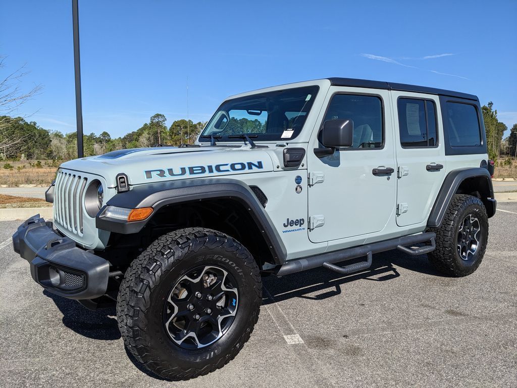 *Certified inspections have been completed and this vehicle meets all requirements for certification and is available upon request. Chrysler Certified brings with it the peace of mind protection of a 3 month/3,000 mile comprehensive warranty, and a 7year/100000mile powertrain warranty. (Plus, you get our low-price guarantee and 2 free oil changes!) *The Jimmy Britt Premium Delivery Program lets you buy this vehicle right from the comfort of your couch. We frequently ship vehicles, and even arrange test drives at home, if you are nearby. We will send you a personal video on any vehicle you are interested in. Call, email, or text us for details. Recent Arrival! Certified. Odometer is 13450 miles below market average!One Owner, Clean Autocheck / No Accidents, Factory Certified Preowned, Remaining Factory Warranty, Extended Warranty Available, Bluetooth / Hands-free, Apple Car Play / Android Auto Compatible, Back-Up Camera w/ Guidelines, Cruise Control, Multi-Zone Climate Control, Navigation, Portable Audio Connection, Power Locks, Power Windows, Premium Audio, Premium Wheels, Security System, Multi-function Steering Wheel, 4x4/4WD, Apple Carplay, Android Auto, *Premium Delivery Service Available*, iphone / Droid Navigation Compatible, BFG TIRES, Wrangler Rubicon 4xe, 4D Sport Utility, 2.0L I4 DOHC, 8-Speed Automatic, 4WD, Earl Clearcoat, Black w/Premium Cloth Low-Back Bucket Seats or Leather Trimmed Bucket Seats, 4.10 Rear Axle Ratio, ABS brakes, AM/FM radio: SiriusXM, Apple CarPlay/Android Auto, Black 3-Piece Hard Top, Compass, Electronic Stability Control, Emergency communication system: SiriusXM Guardian, Freedom Panel Storage Bag, Front anti-roll bar, Front Bucket Seats, Front dual zone A/C, Heated door mirrors, Illuminated entry, Integrated roll-over protection, Low tire pressure warning, Navigation System, No Soft Top, ParkView Rear Back-Up Camera, Passenger door bin, Premium Cloth Low-Back Bucket Seats, Quick Order Package 29V Rubicon, Radio: Uconnect 4C Nav w/8.4" Display, Rear anti-roll bar, Rear Window Defroster, Rear Window Wiper/Washer, Remote keyless entry, Traction control, Wheels: 17" x 7.5" Machined w/Black Pockets.FCA US LLC Certified Pre-Owned Details: * Limited Warranty: 3 Month/3,000 Mile (whichever comes first) after new car warranty expires or from certified purchase date * Warranty Deductible: $100 * Vehicle History * 125 Point Inspection * Roadside Assistance * Powertrain Limited Warranty: 84 Month/100,000 Mile (whichever comes first) from original in-service date * Transferable Warranty * Vehicles Up to 75,000 Miles and/or 5 Model Years. 24-Hour Towing & Roadside Assistance, Car Rental Allowance, CARFAX® Vehicle History ReportTM and an Introductory 3-month Subscription to SiriusXM® Satellite Radio & Certified Warranty UpgradesEarl Clearcoat 2023 Jeep Wrangler Rubicon 4xe 2.0L I4 DOHC 4WDThe Jimmy Britt Automotive Family has received multiple Dealer of the Year awards in the state of Georgia. We've also been awarded the Customer Satisfaction Award through DealerRater! Price does not include State/County/Local Tax, Tag, GA Lemon Law or Registration fees. Dealer administrative fee is included in the price. We offer electronic tag and title as an option for an additional fee (this fee is based on what your state/county charge to participate as well as a fee to the company we select to process). A fee may be charged to customers wishing to have the vehicle delivered. New Vehicles - Must finance with Chrysler Digital to receive all rebates and incentives. Not all will qualify for Chrysler financing. See Dealer for details. Preowned Vehicles - All preowned inventory is “As Is” unless Chrysler Certified or otherwise stated in writing. While we make every effort to ensure the data listed here is correct, there may be instances where some of the factory rebates, incentives, options, or vehicle features may be listed incorrectly as we get data from multiple data sources.