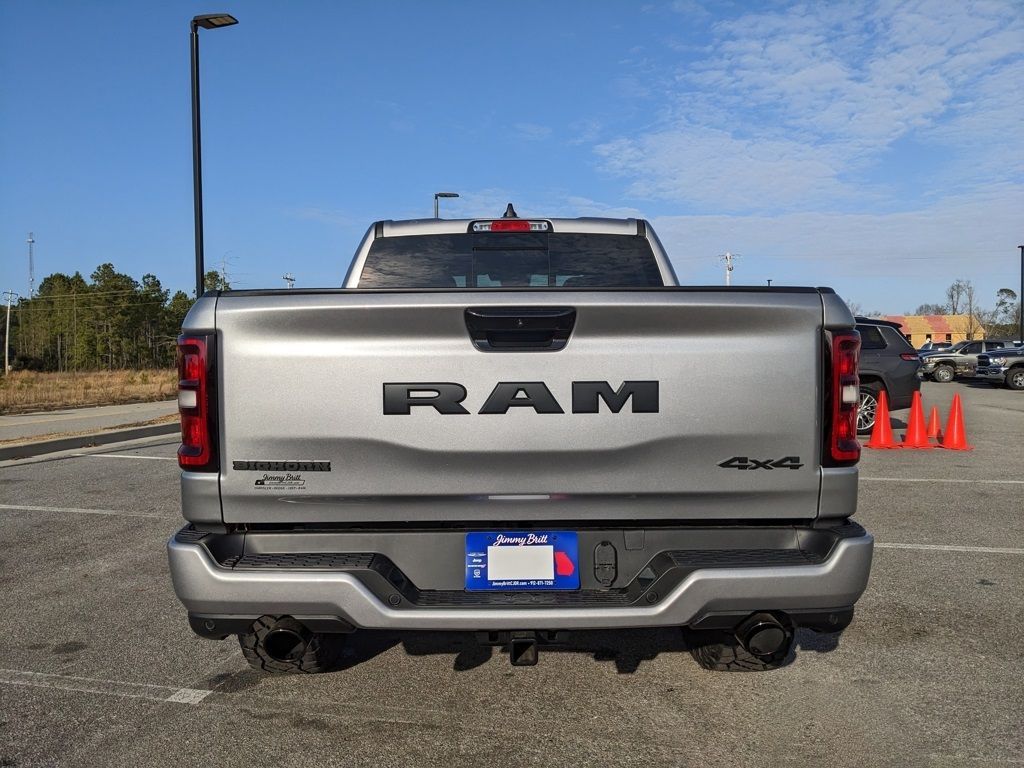 Price includes rebates. Not all customers may qualify for all rebates. $1000 - 2026 Southeast BC Retail Bonus Cash. Exp. 03/02/2026 $3500 - 2026 National Retail Consumer Cash . Exp. 03/02/2026 Savings applied to everyone. Includes $1000 finance assistance. Not available with special financing, lease and select other offers. Must take new retail delivery by 02/04/2026. Savings applied to everyone. $1000.00 Retail Trade Incentive for current owners trading in 2011 or newer motor vehicle with less than 150,000 miles. Trade must run and drive with valid registration. Not available with special financing, lease and some other offers. Must take new retail delivery by 02/04/2026. Ask Dealer representative for details on qualification. *The Jimmy Britt Premium Delivery Program lets you buy this vehicle right from the comfort of your couch. We frequently deliver vehicles nationwide, and even arrange test drives at home, if you are nearby. We will send you a personal video on any vehicle you are interested in. Call, email, or text us for details.* (Plus, you get our low-price guarantee and two free oil changes!) Factory MSRP: $68,584 Bluetooth / Hands-free, Apple Car Play / Android Auto Compatible, Back-Up Camera w/ Guidelines, Cruise Control, Heated Seats, Portable Audio Connection, Power Locks, Power Windows, Premium Wheels, Security System, Multi-function Steering Wheel, 4x4/4WD, Remote Start, Level I Equipment Group, Apple Carplay, Android Auto, Oversized Tires, *Premium Delivery Service Available*, iphone / Droid Navigation Compatible, 35" NITTO RIDGE GRAPPLER TIRES, LEVELED, 1500 Big Horn/Lone Star, 4D Crew Cab, 5.7L V8 HEMI, 4WD, Billet Silver Metallic Clearcoat, Black w/Cloth Bucket Seats or Cloth Bench Seat or Deluxe Cloth Bucket Seats, 115V Auxiliary Power Outlet, 3.92 Rear Axle Ratio, 400W Inverter, 4G LTE Wi-Fi Hot Spot, ABS brakes, Accent Color Door Handles, Accent Color Premium Power Mirrors, Accent Color Tailgate Handle, Active Cruise Control, Anti-Spin Differential Rear Axle, Apple CarPlay, Apple CarPlay/Android Auto, Auto Power-Folding Mirrors, Auto-Dimming Exterior Driver Mirror, Auto-Dimming Rear-View Mirror, Big Horn Level 1 Equipment Group, Black Exterior Mirrors, Black Exterior Truck Badging, Black Headlamp Bezels, Black Interior Accents, Black Painted Exterior Mirrors Caps, Black Premium Power Mirrors, Black Tail Lamp Bezels, Body Color Fender Flares, Body Color Front Bumper, Bucket Seats, Cloth Bucket Seats, Compass, Connectivity - US/Canada, Convex Wide-Angle Exterior Mirror Insert, Deluxe Cloth Bucket Seats, Electronic Stability Control, Exterior Mirrors Courtesy Lamps, Glove Box Lamp, Google Android Auto, Grille Black Surround Black Mesh, Heated door mirrors, Heated Front Seats, Heated Steering Wheel, Illuminated entry, Leather Wrapped Steering Wheel, Low tire pressure warning, Manual Folding Exterior Mirrors, Night Edition, ParkView Rear Back-Up Camera, Power Adjustable Pedals, Quick Order Package 27Z Big Horn, RAM Grille Badge - Black, Rear anti-roll bar, Rear Power Sliding Window, Rear Window Defroster, Remote keyless entry, SiriusXM Radio Service, SiriusXM Satellite Radio, Steering Wheel Mounted Audio Controls, Traction control, Trailer Brake Control, Universal Garage Door Opener, Wheels: 20" x 9.0" Aluminum Painted Clad. Billet Silver Metallic Clearcoat 2026 Ram 1500 Big Horn/Lone Star 5.7L V8 HEMI 4WDThe Jimmy Britt Automotive Family has received multiple Dealer of the Year awards in the state of Georgia. We've also been awarded the Customer Satisfaction Award through DealerRater! Price does not include State/County/Local Tax, Tag, GA Lemon Law or Registration fees. Dealer administrative fee is included in the price. We offer electronic tag and title as an option for an additional fee (this fee is based on what your state/county charge to participate as well as a fee to the company we select to process). A fee may be charged to customers wishing to have the vehicle delivered. New Vehicles - Must fina